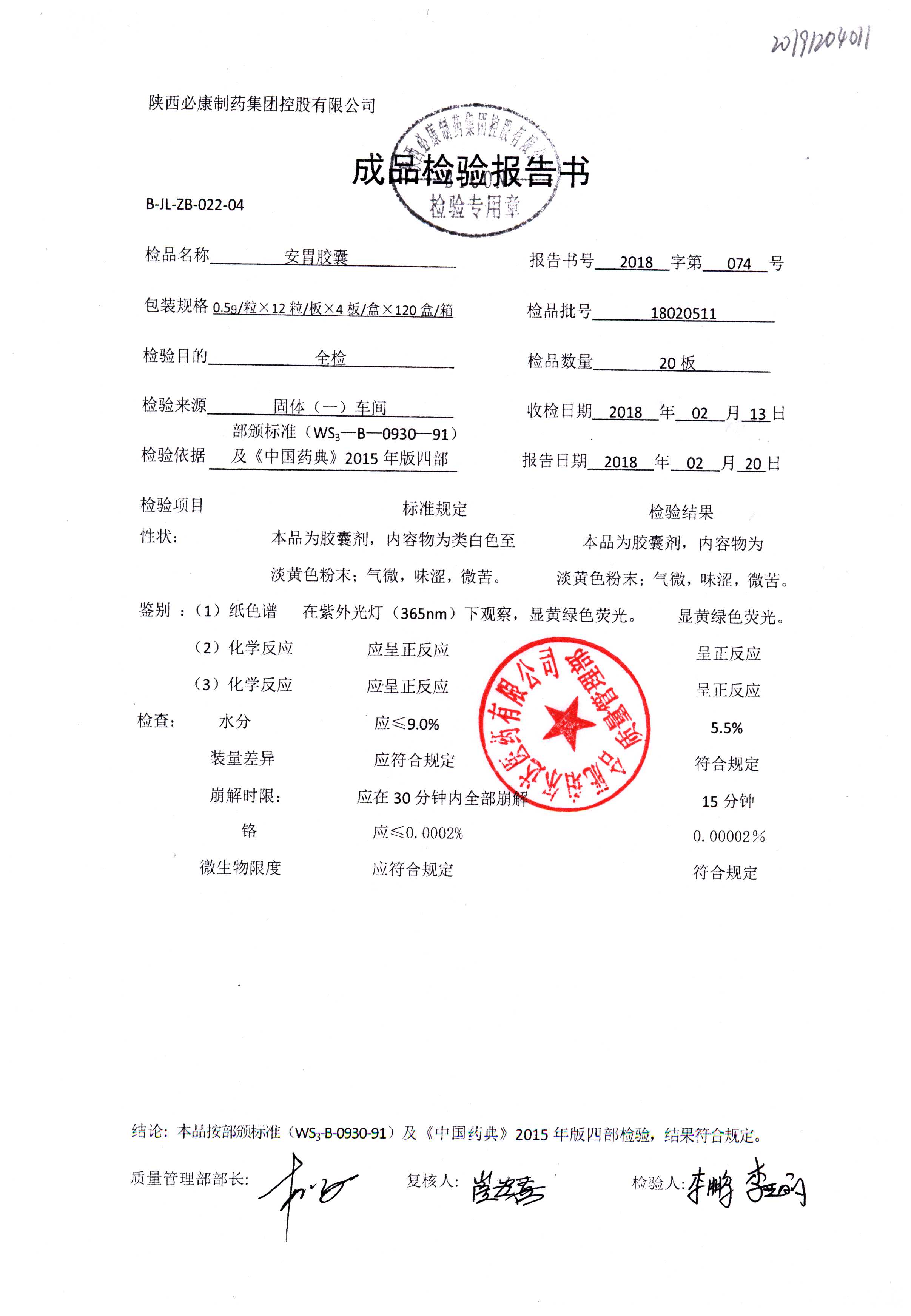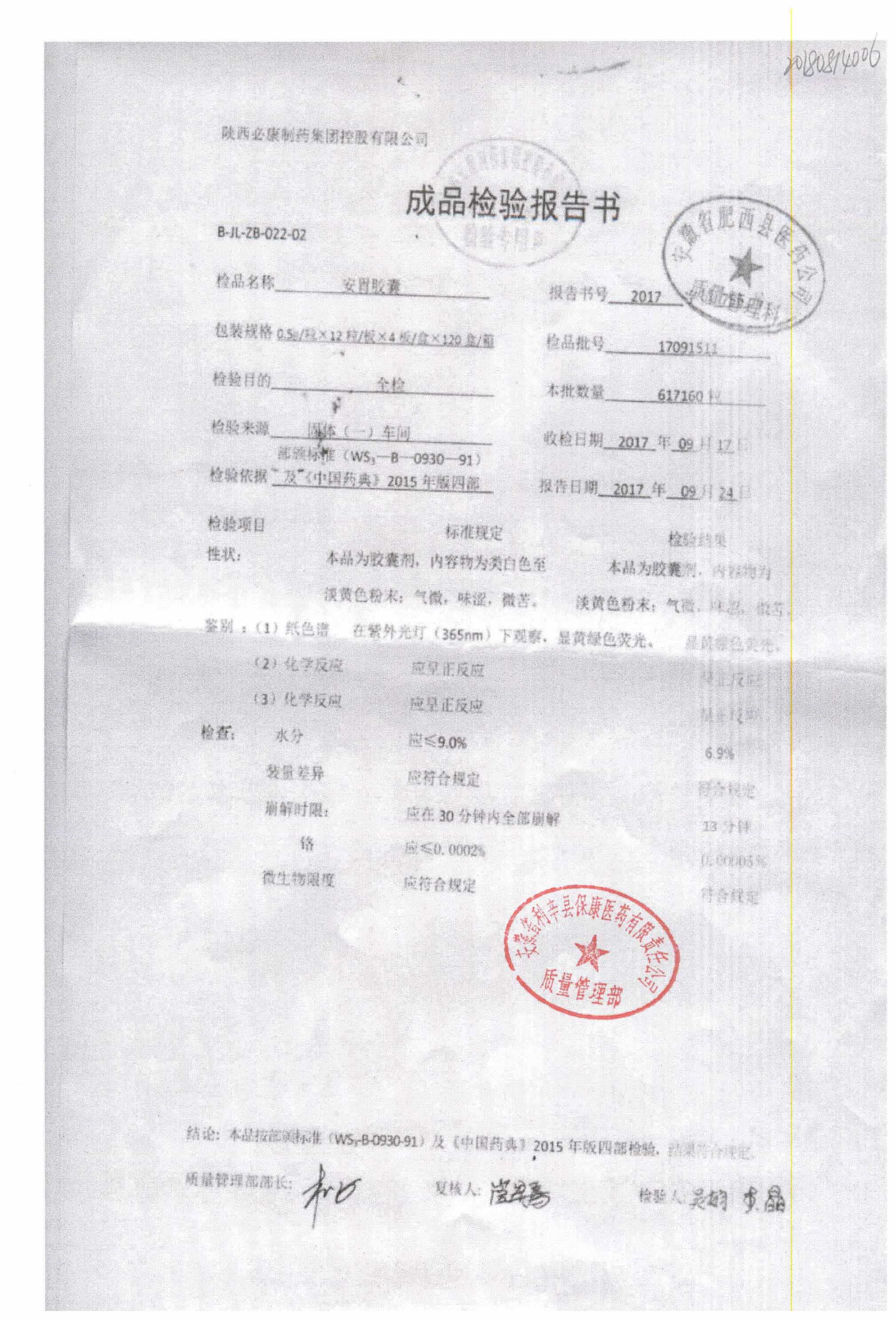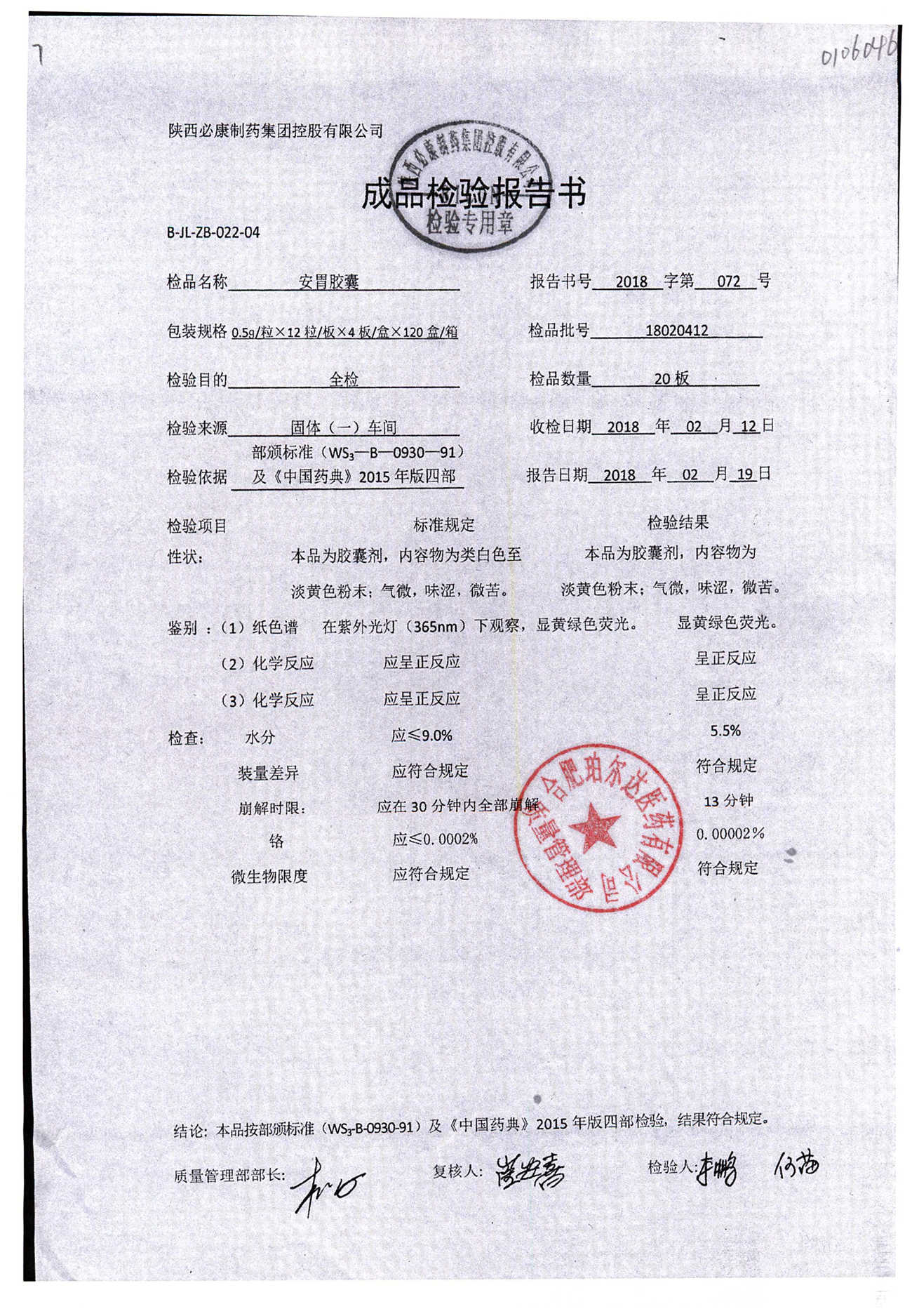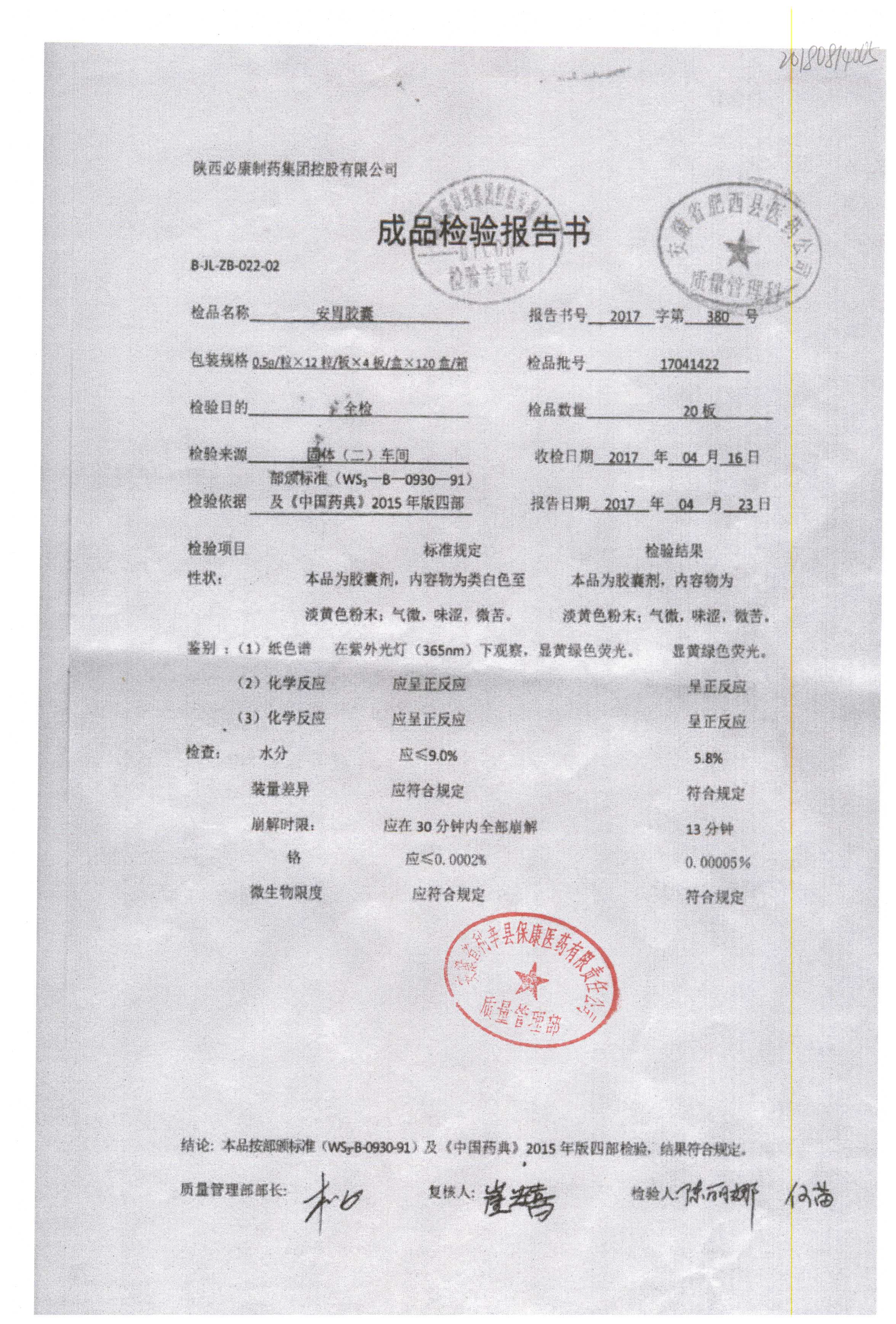 药检报告