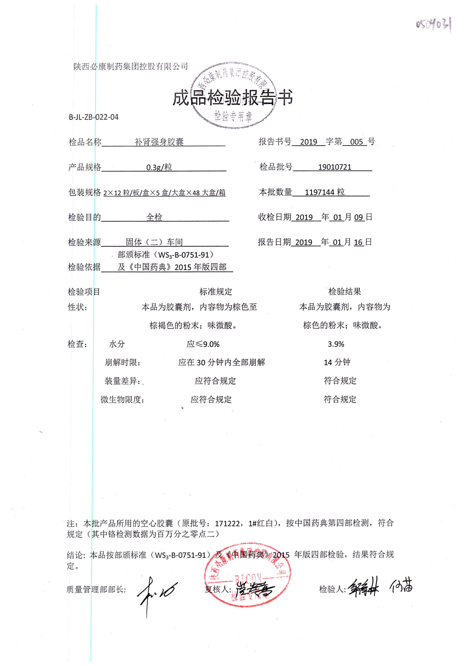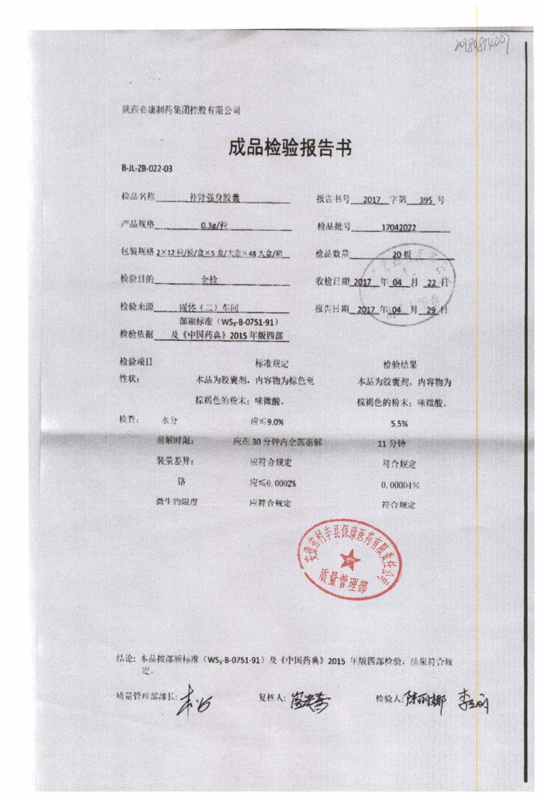 补肾强身胶囊 | 0.3g*24粒 | 17042022 | 查看详情 |