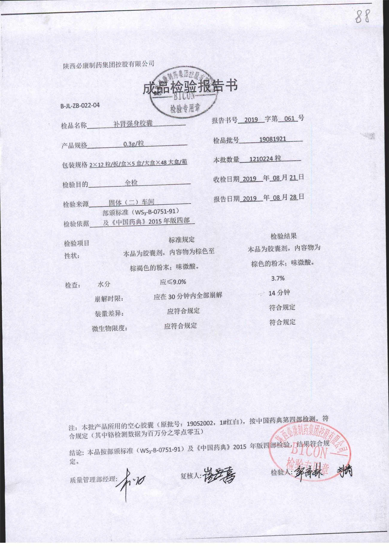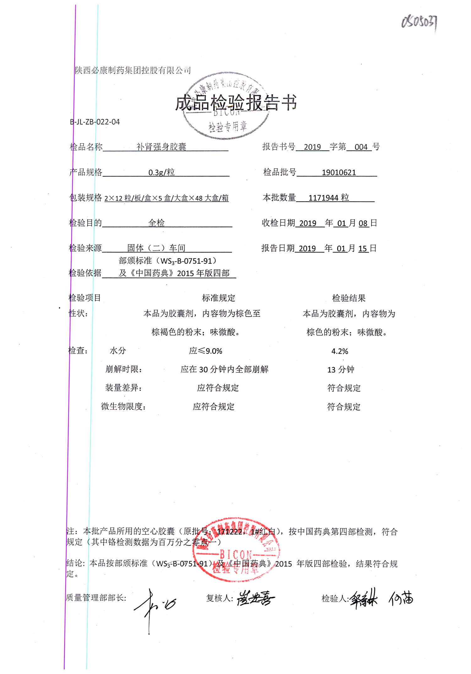补肾强身胶囊 | 0.3g*24粒 | 19010621 | 查看详情 |