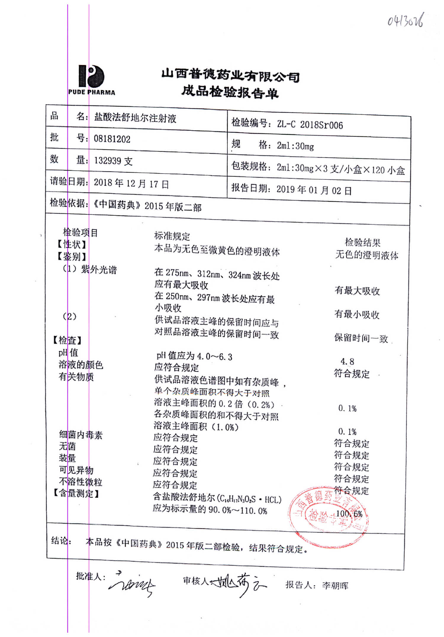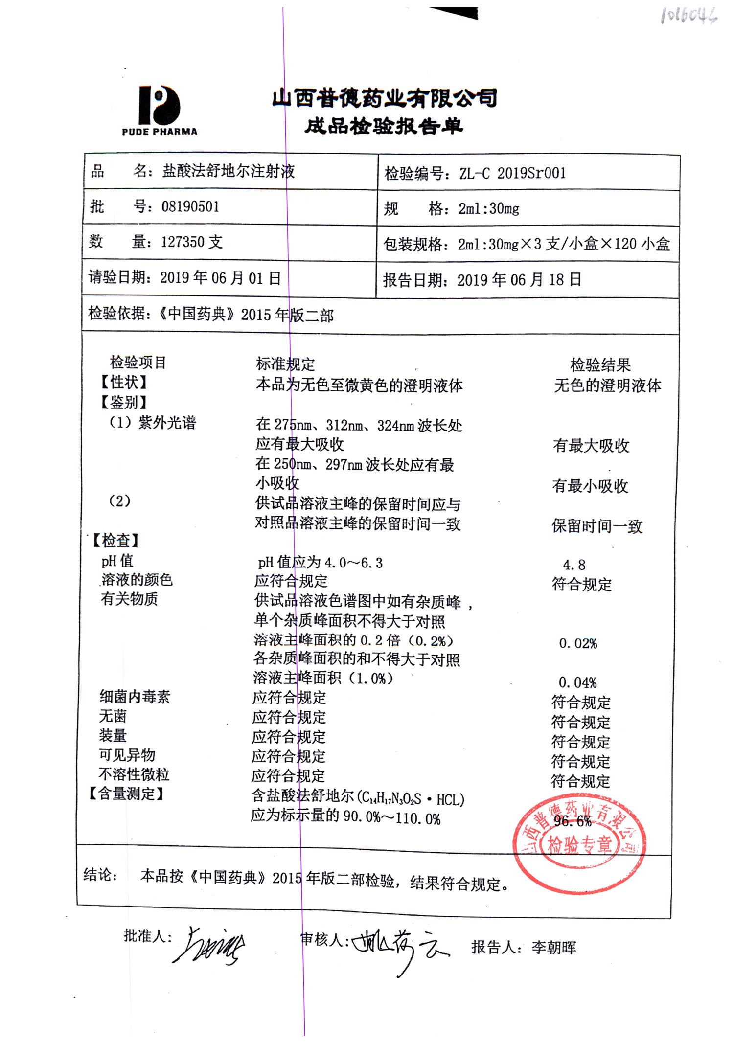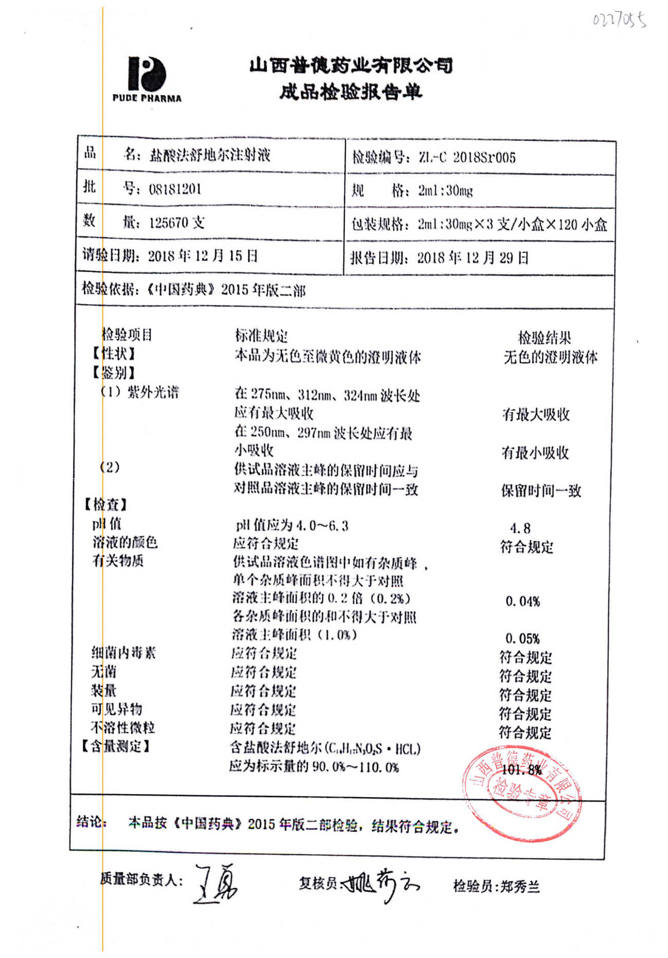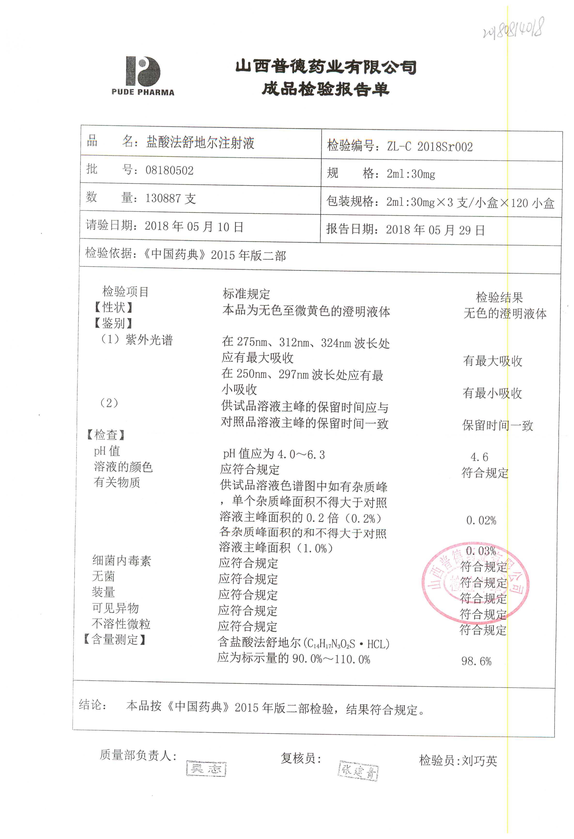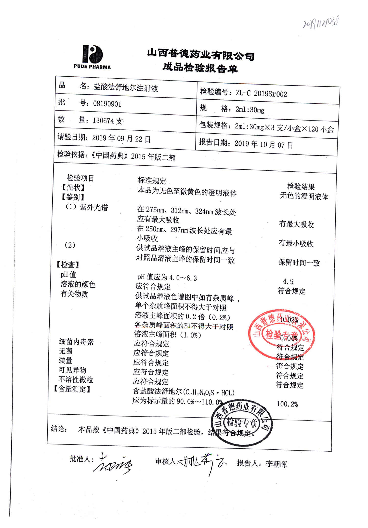 盐酸法舒地尔注射液 | 2ml:30mg | 08190501 | 查看详情 |