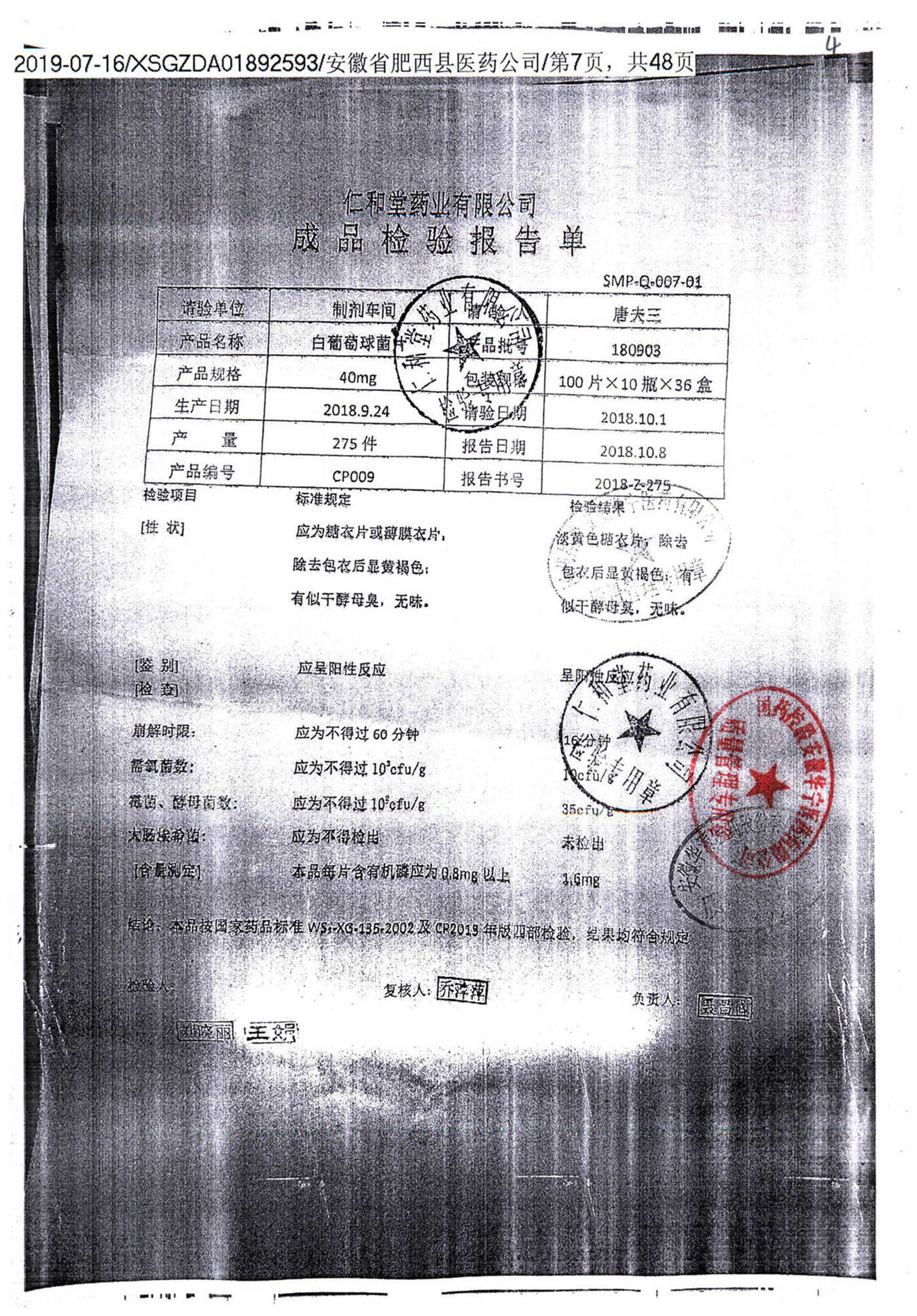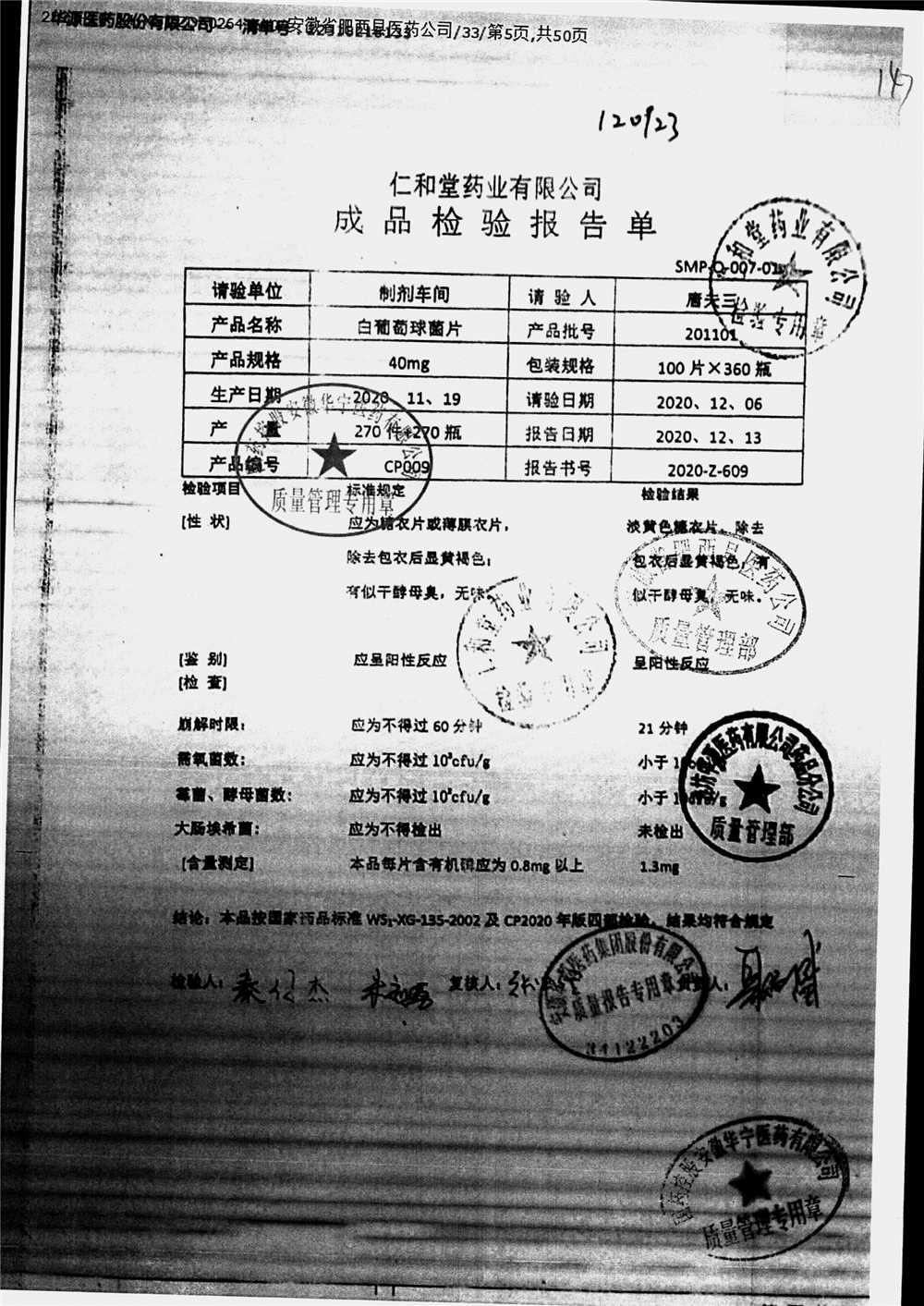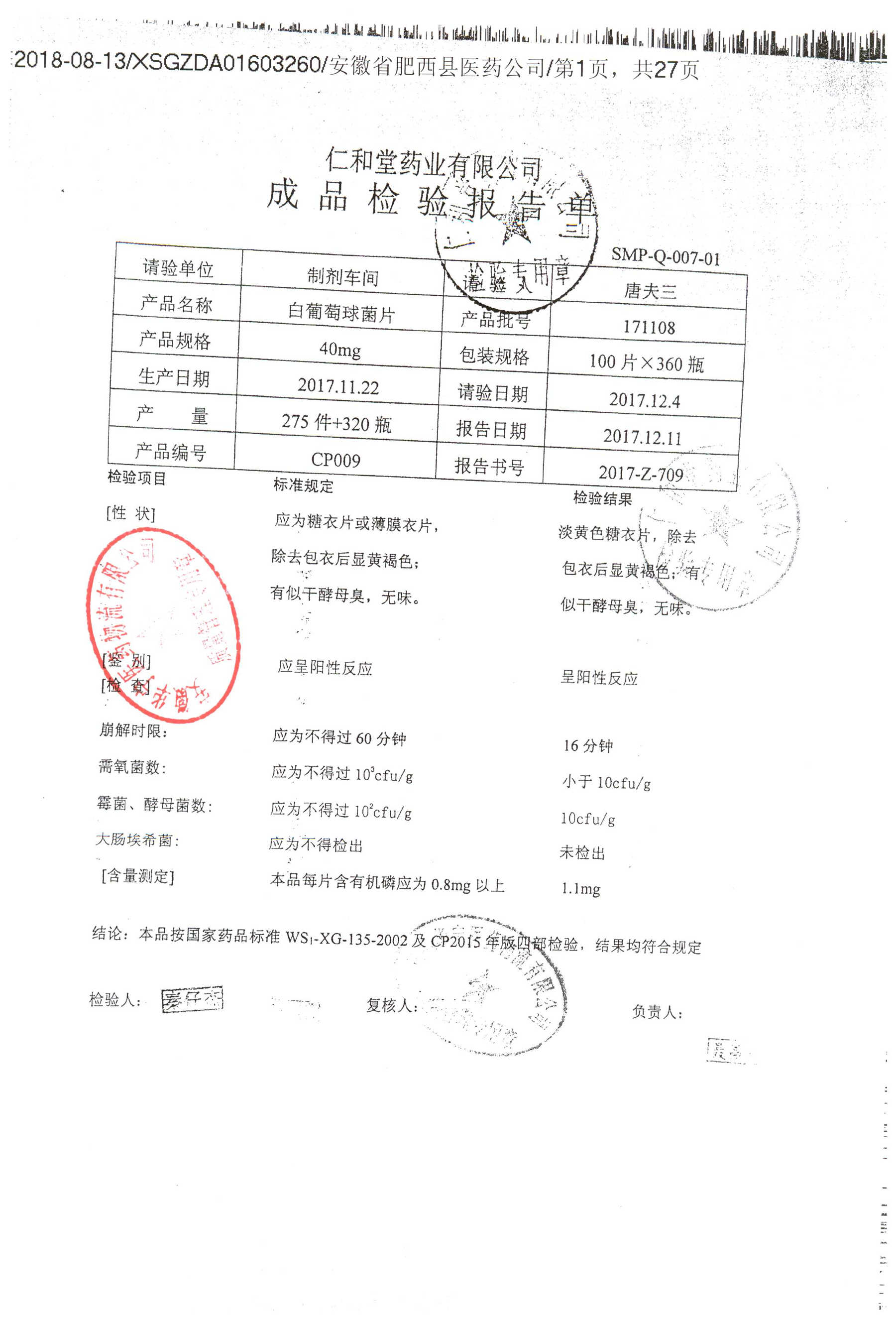 药检报告