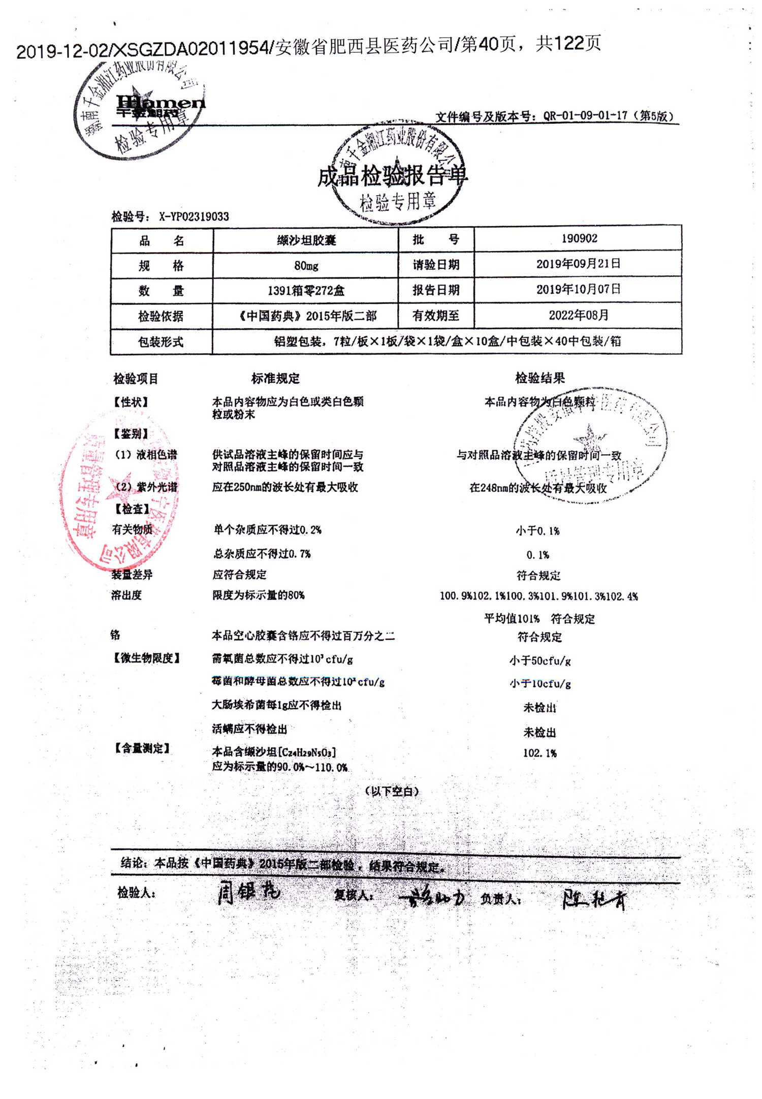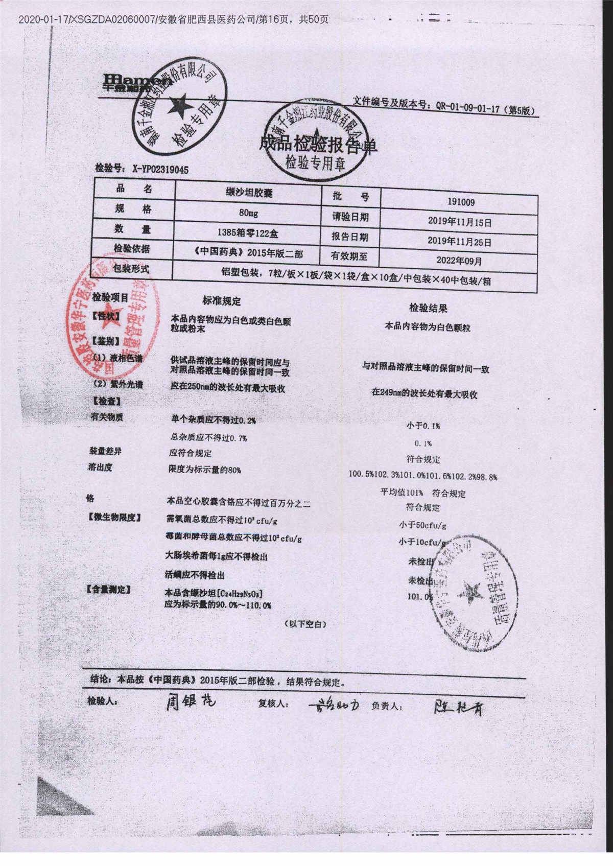 缬沙坦胶囊 | 80mg*7粒 | 191009 | 查看详情 |