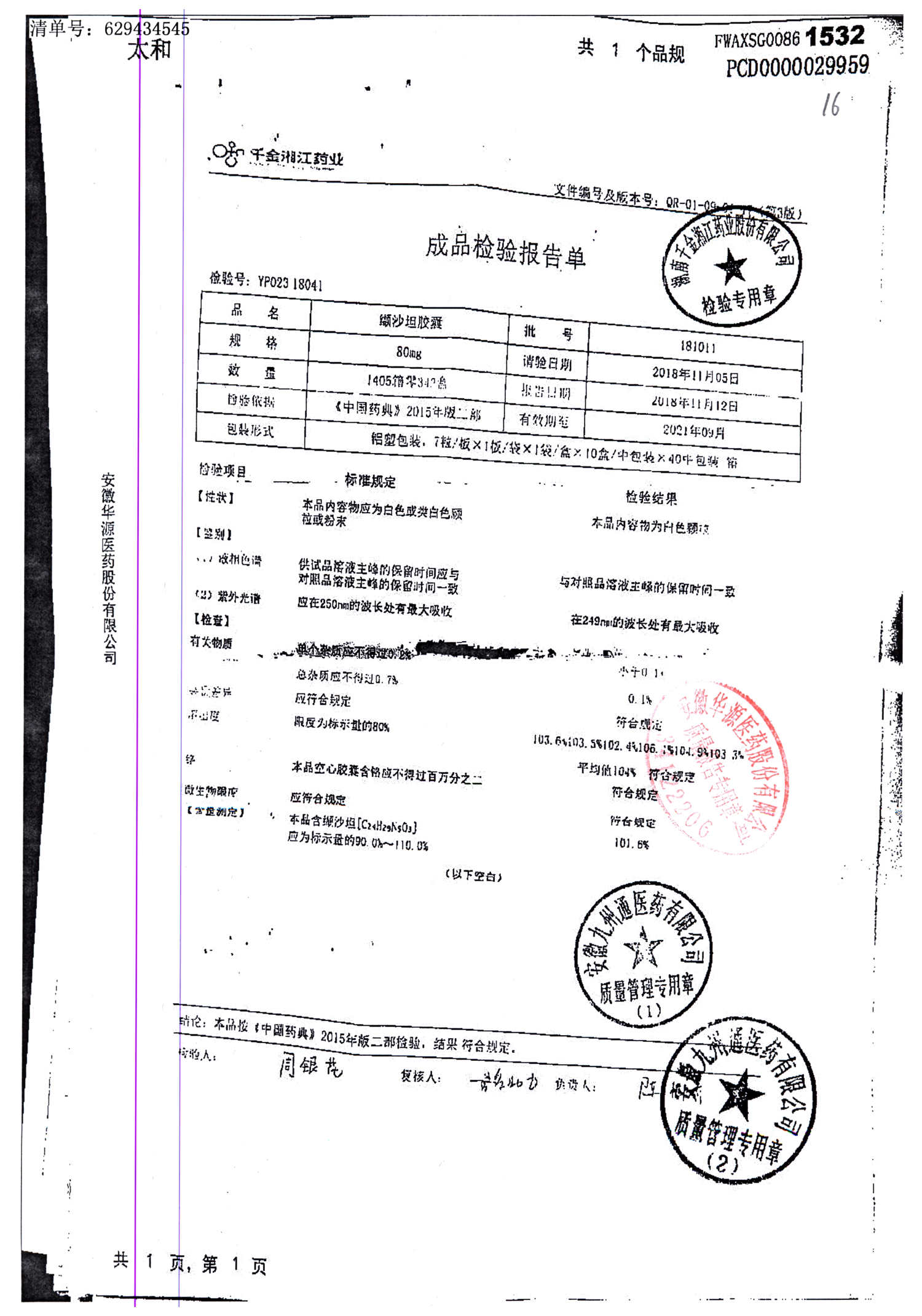 缬沙坦胶囊 | 80mg*7粒 | 180402 | 查看详情 |
