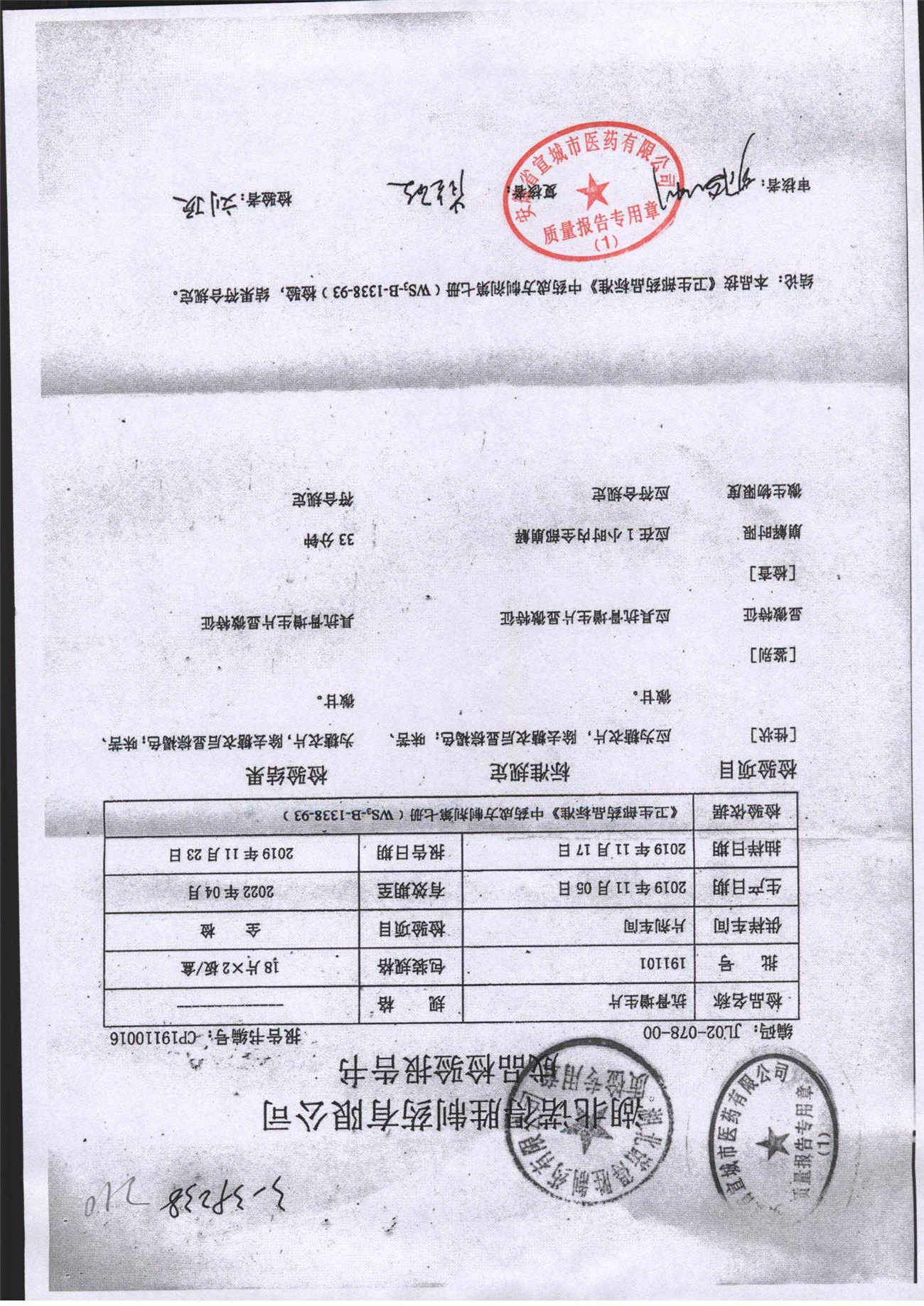名称 | 规格 | 批号 | 药检报告 |