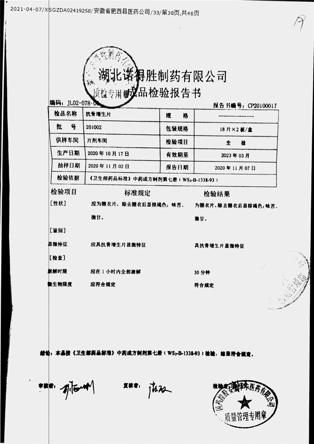 抗骨增生片 | 36片 | 210302 | 查看详情 |