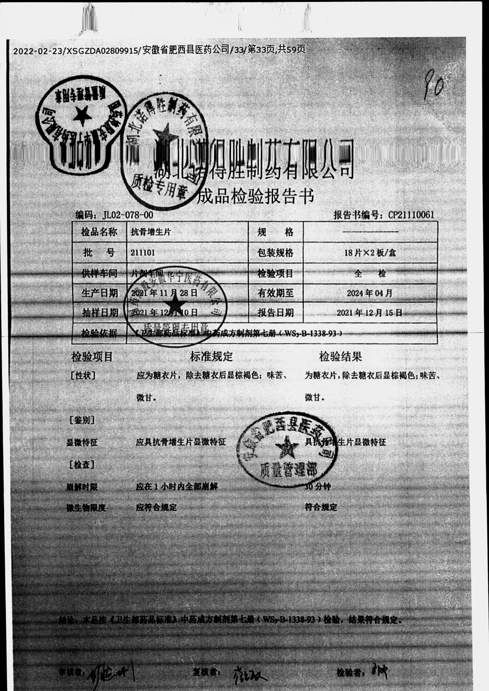 抗骨增生片 | 36片 | 211102 | 查看详情 |