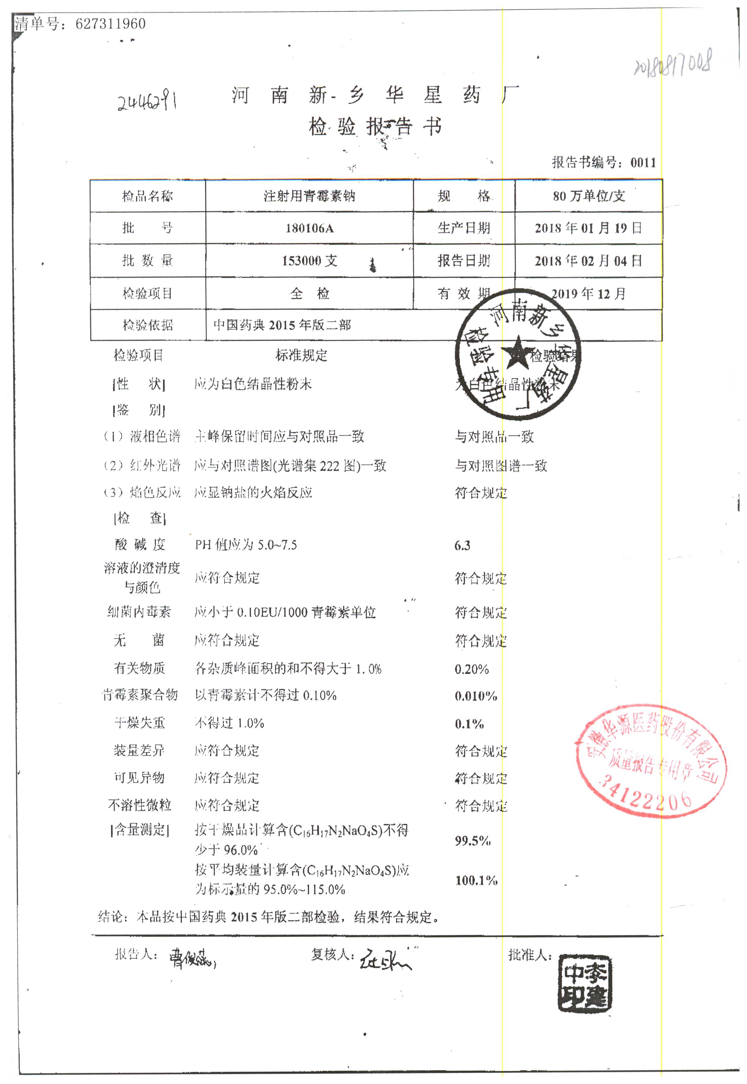 药检报告