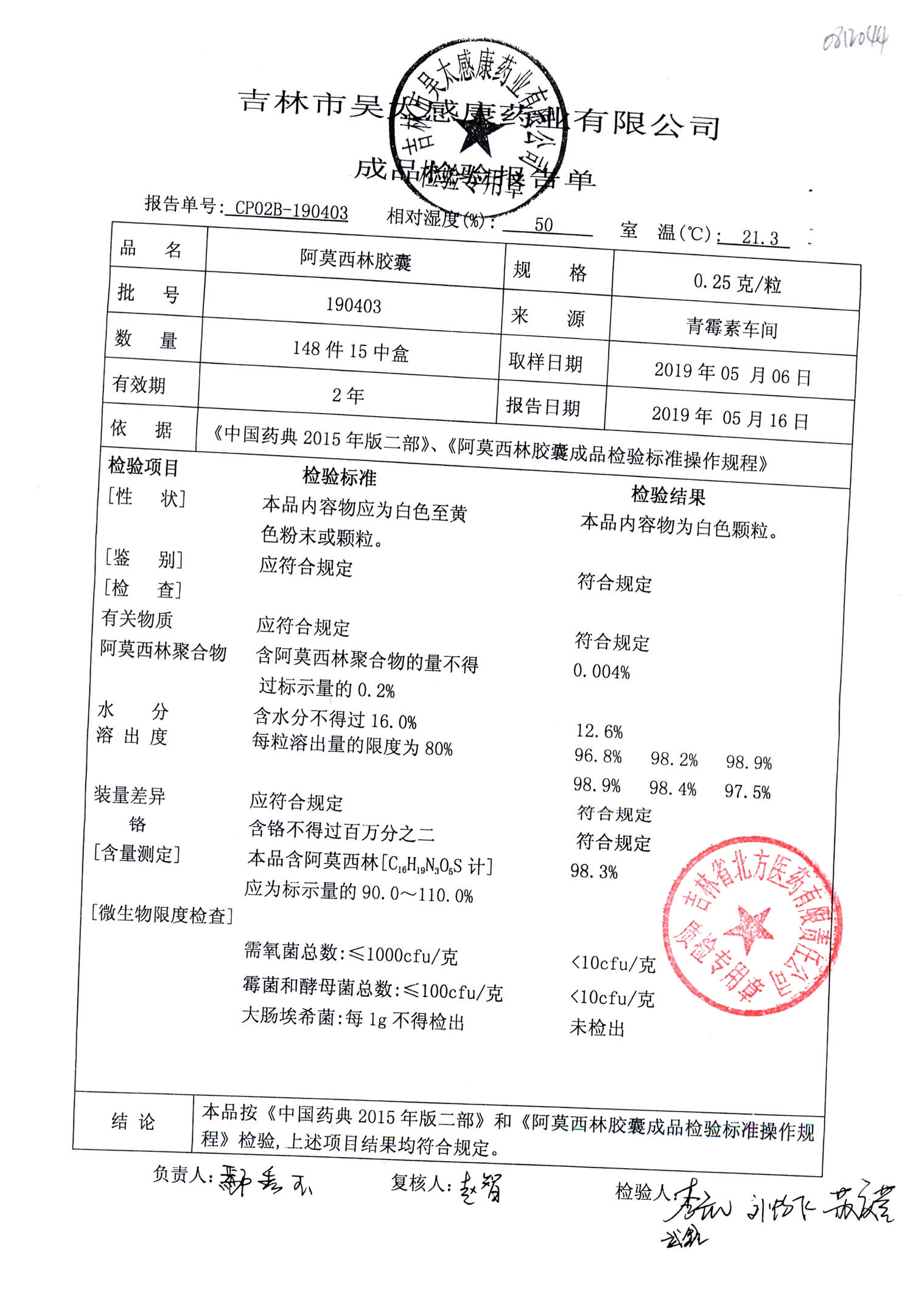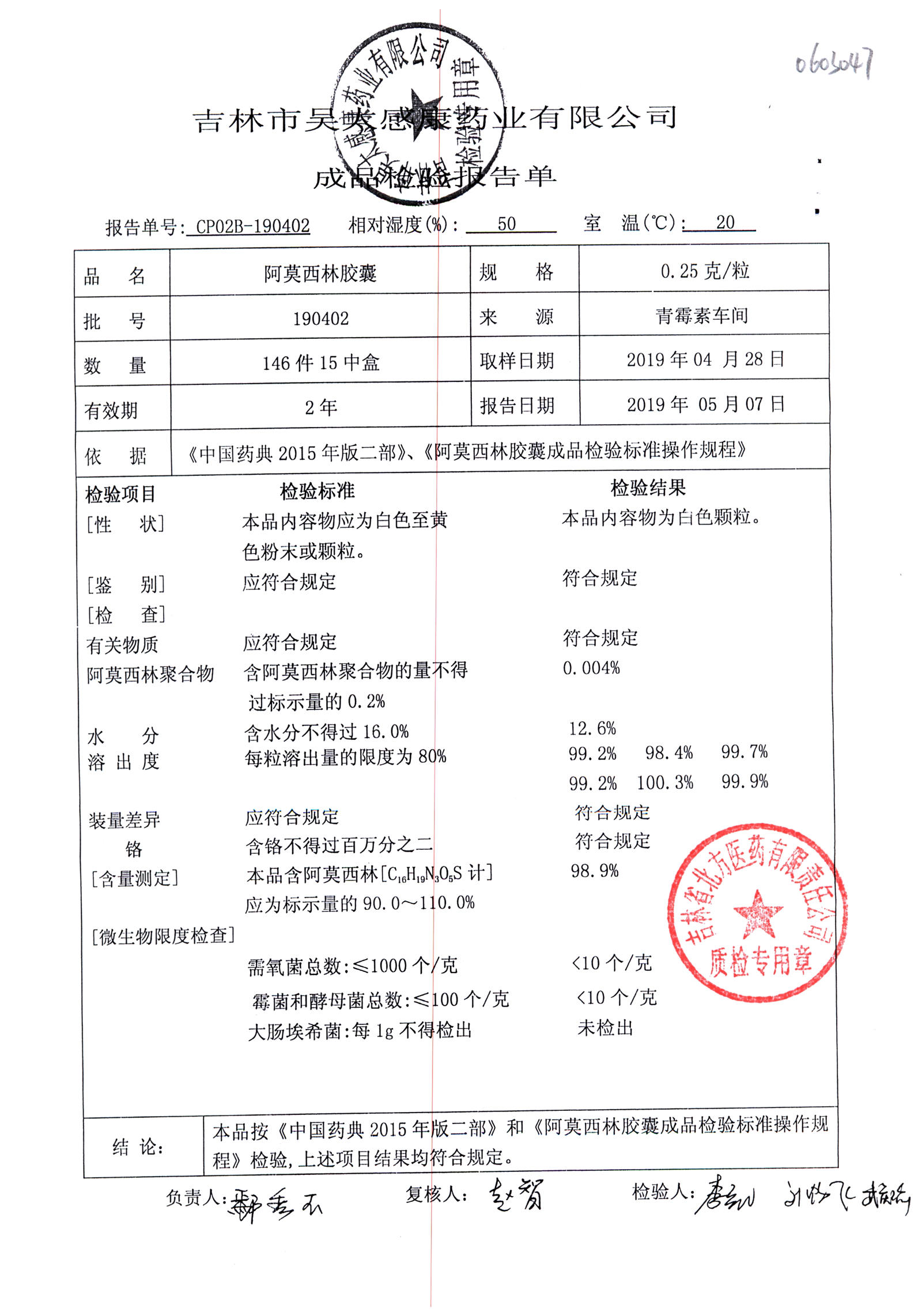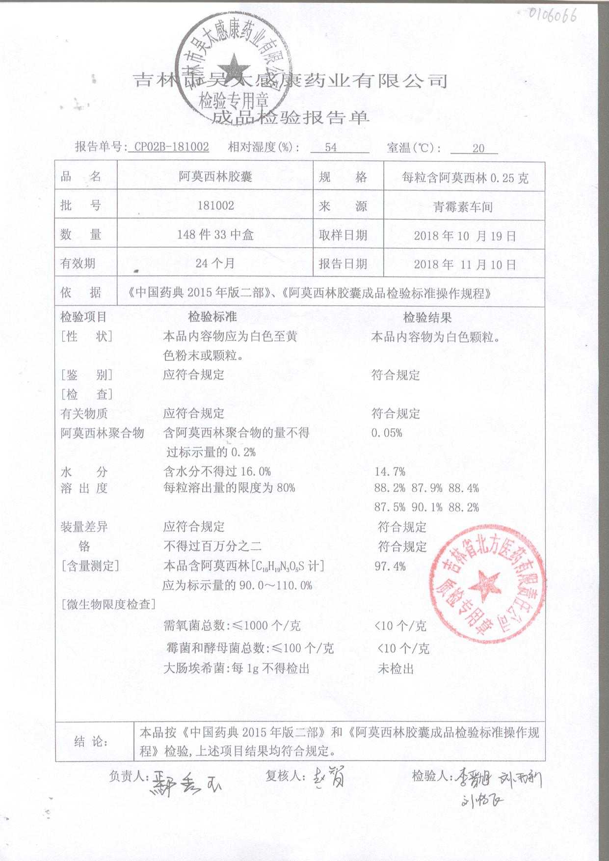 阿莫西林胶囊 | 0.25g | 190404 | 查看详情 |