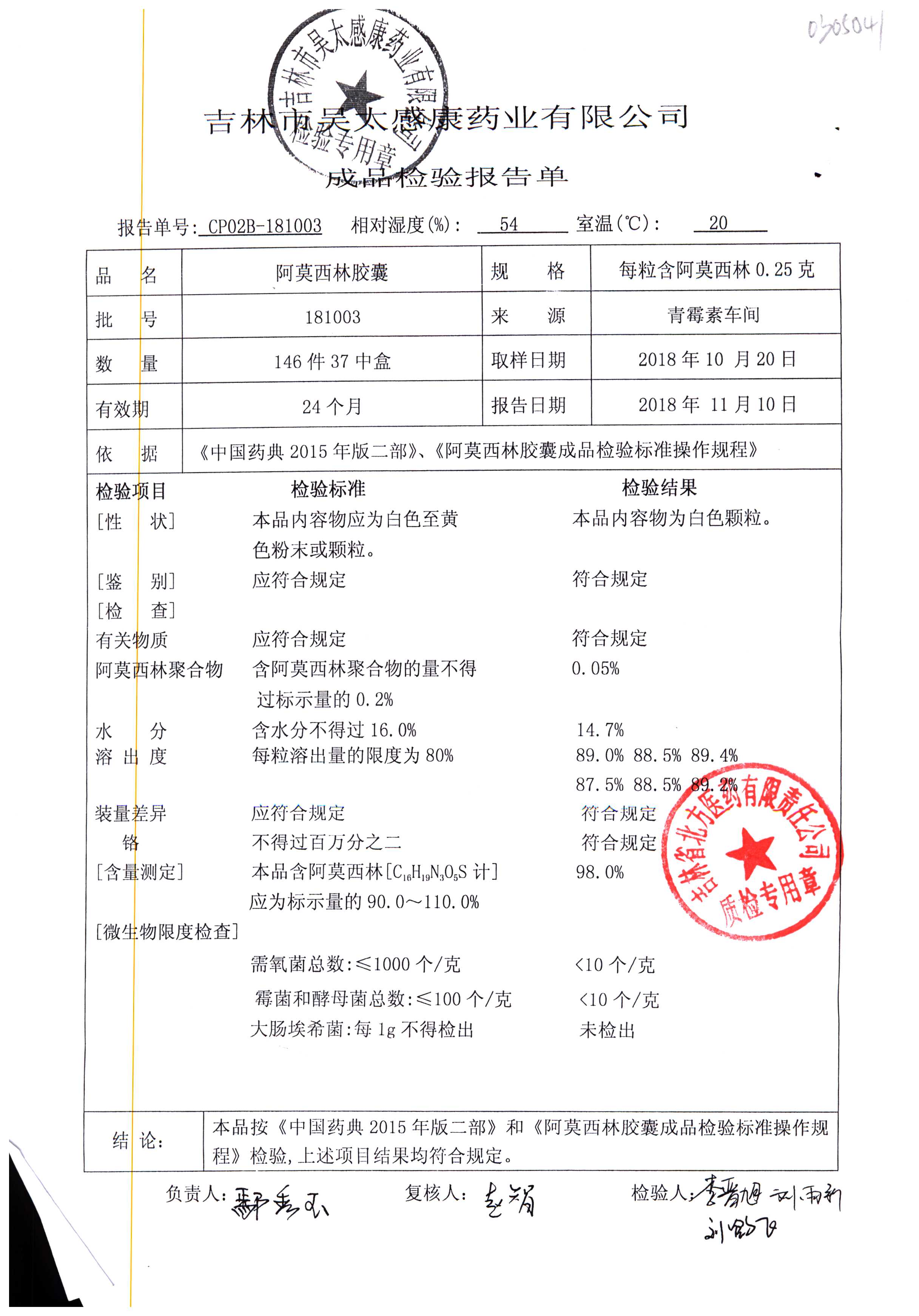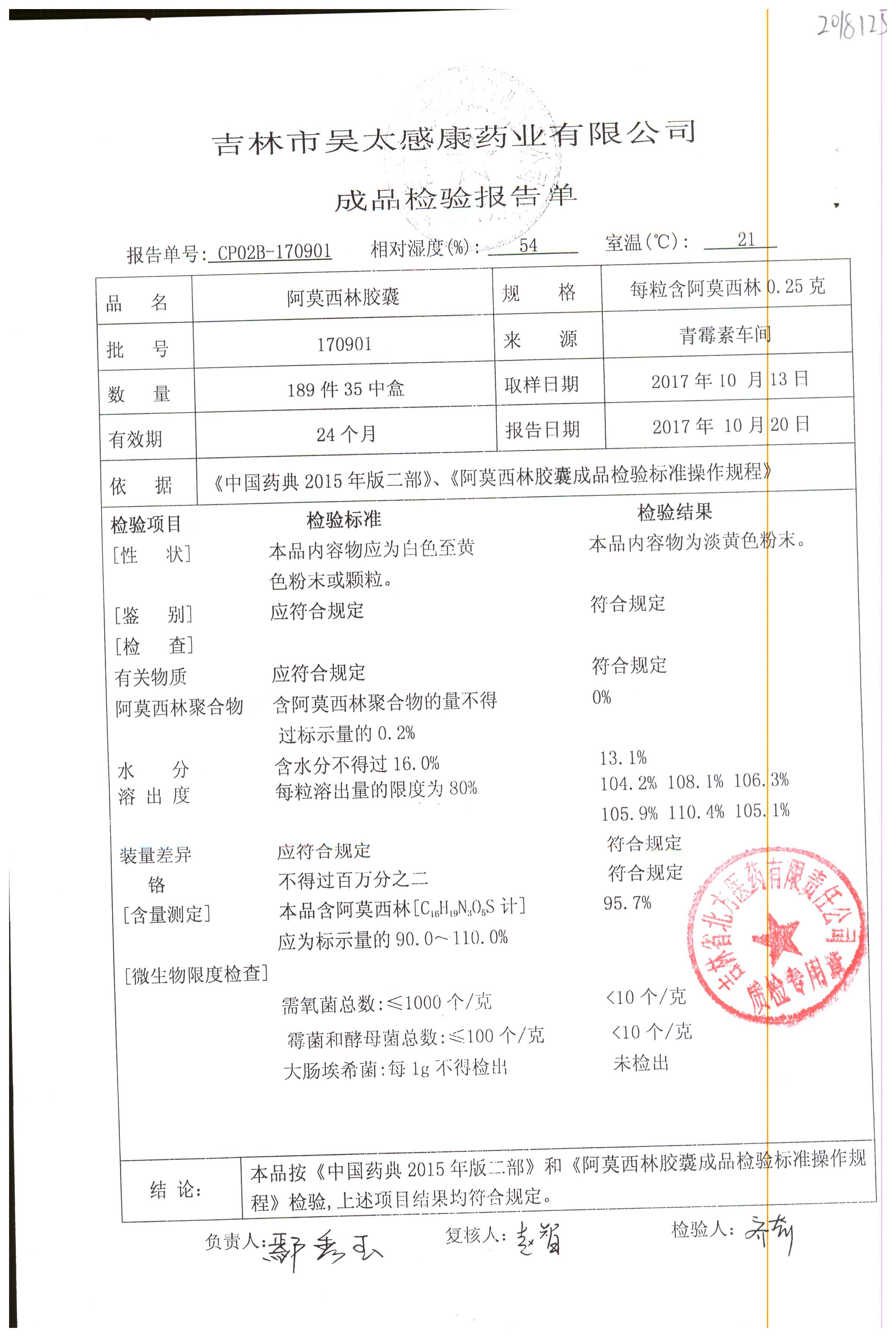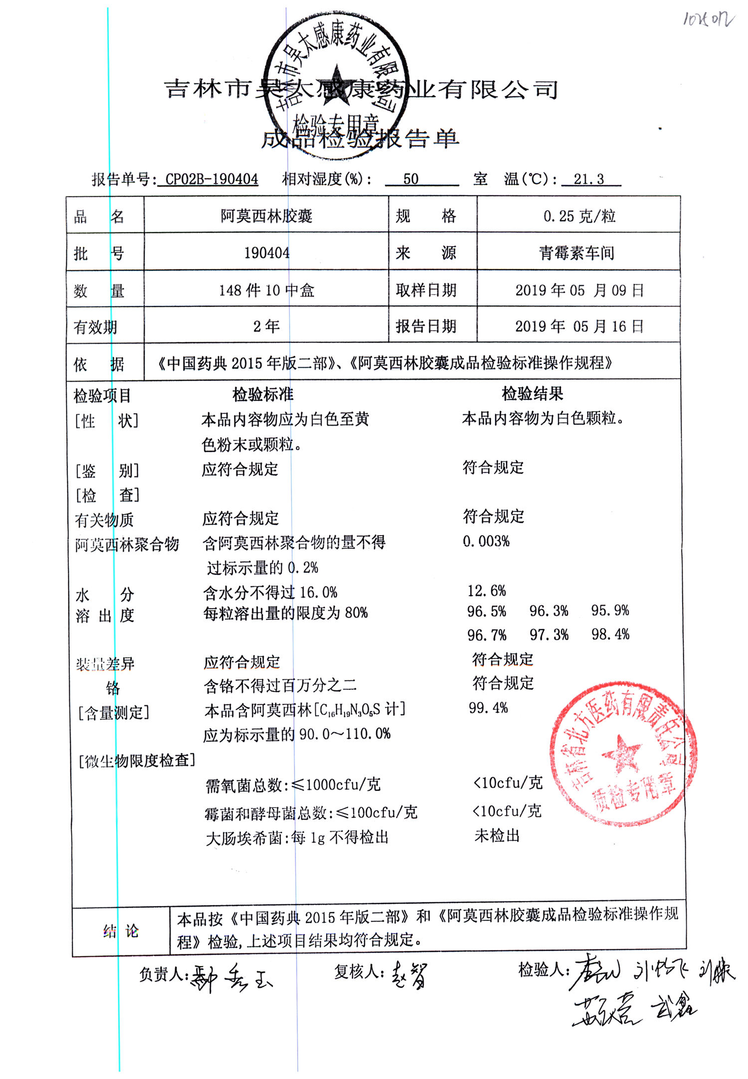 阿莫西林胶囊 | 0.25g | 190404 | 查看详情 |