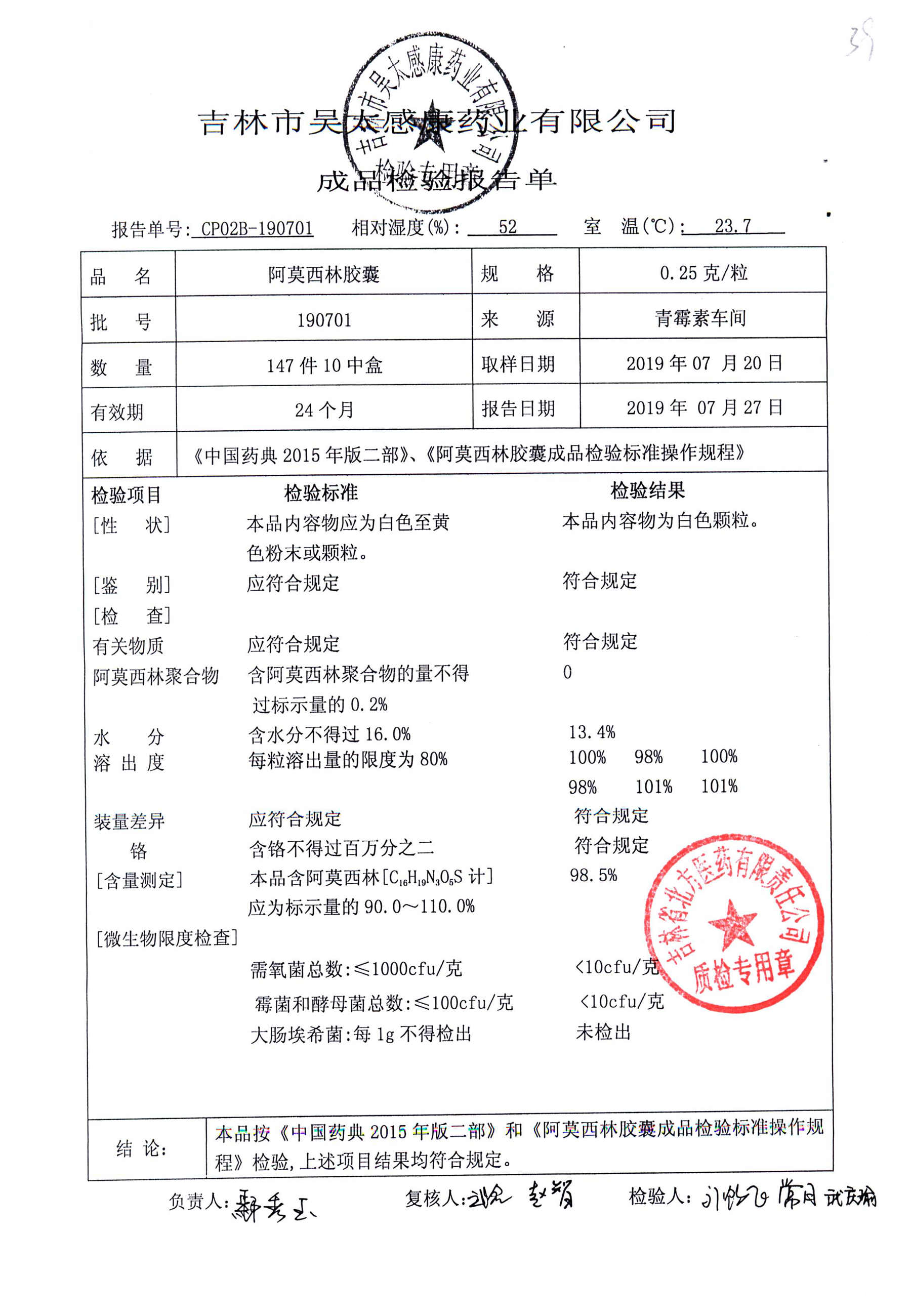 阿莫西林胶囊 | 0.25g | 190701 | 查看详情 |