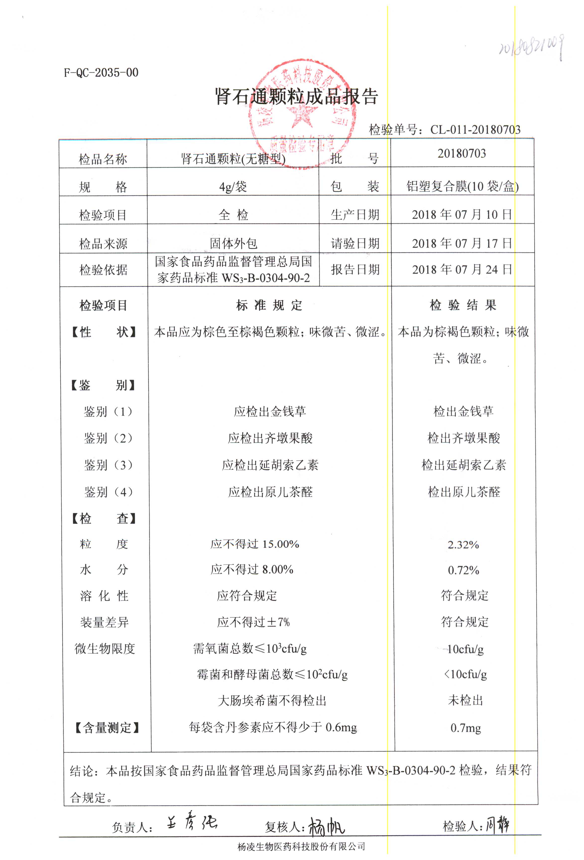 肾石通颗粒 | 4g*10袋 | 20180703 | 查看详情 |