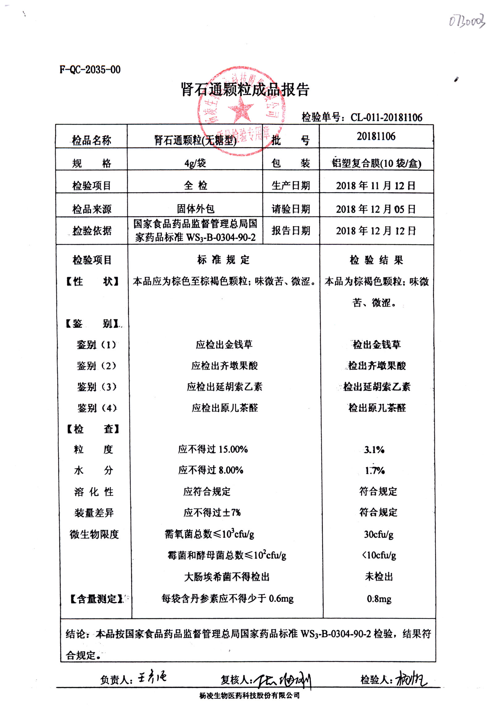 肾石通颗粒 | 4g*10袋 | 20181106 | 查看详情 |