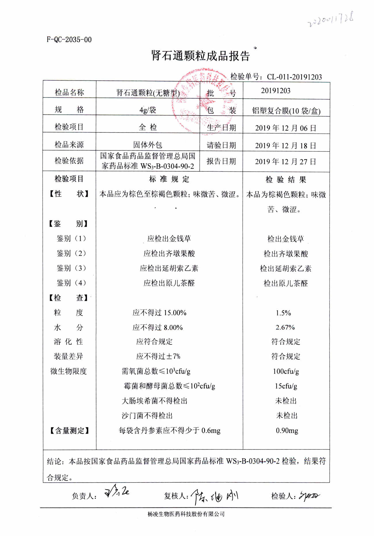 肾石通颗粒 | 4g*10袋 | 20191203 | 查看详情 |