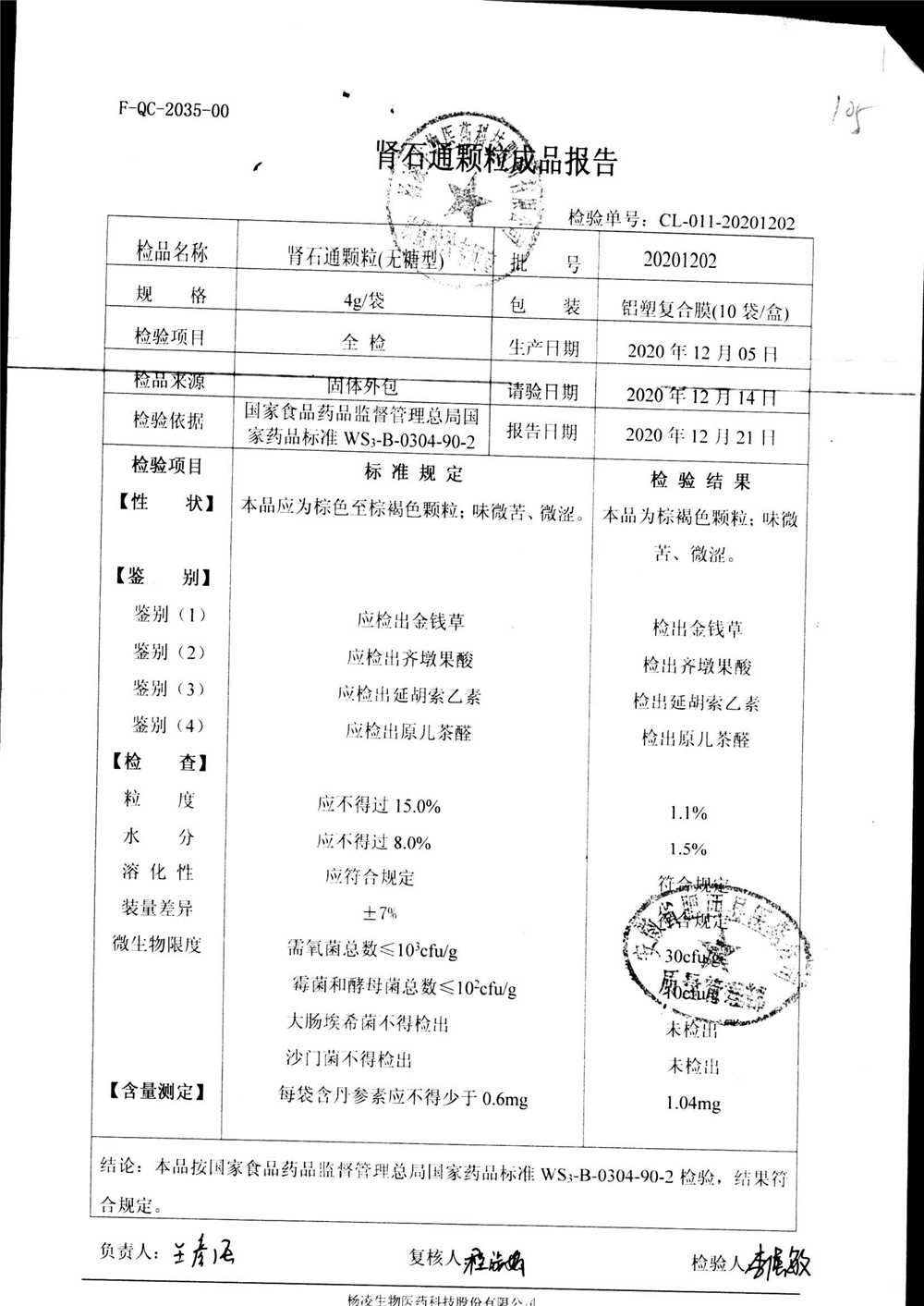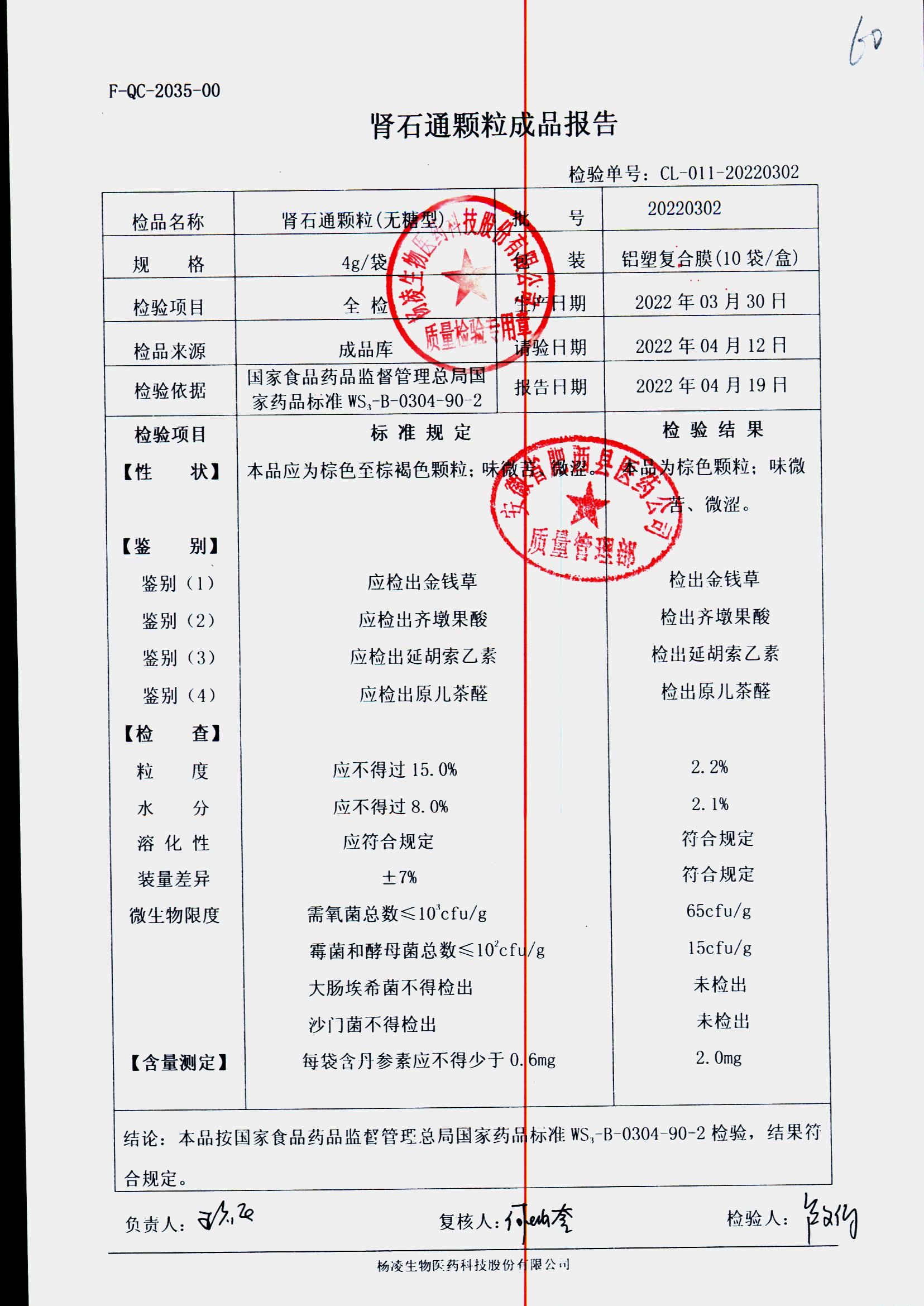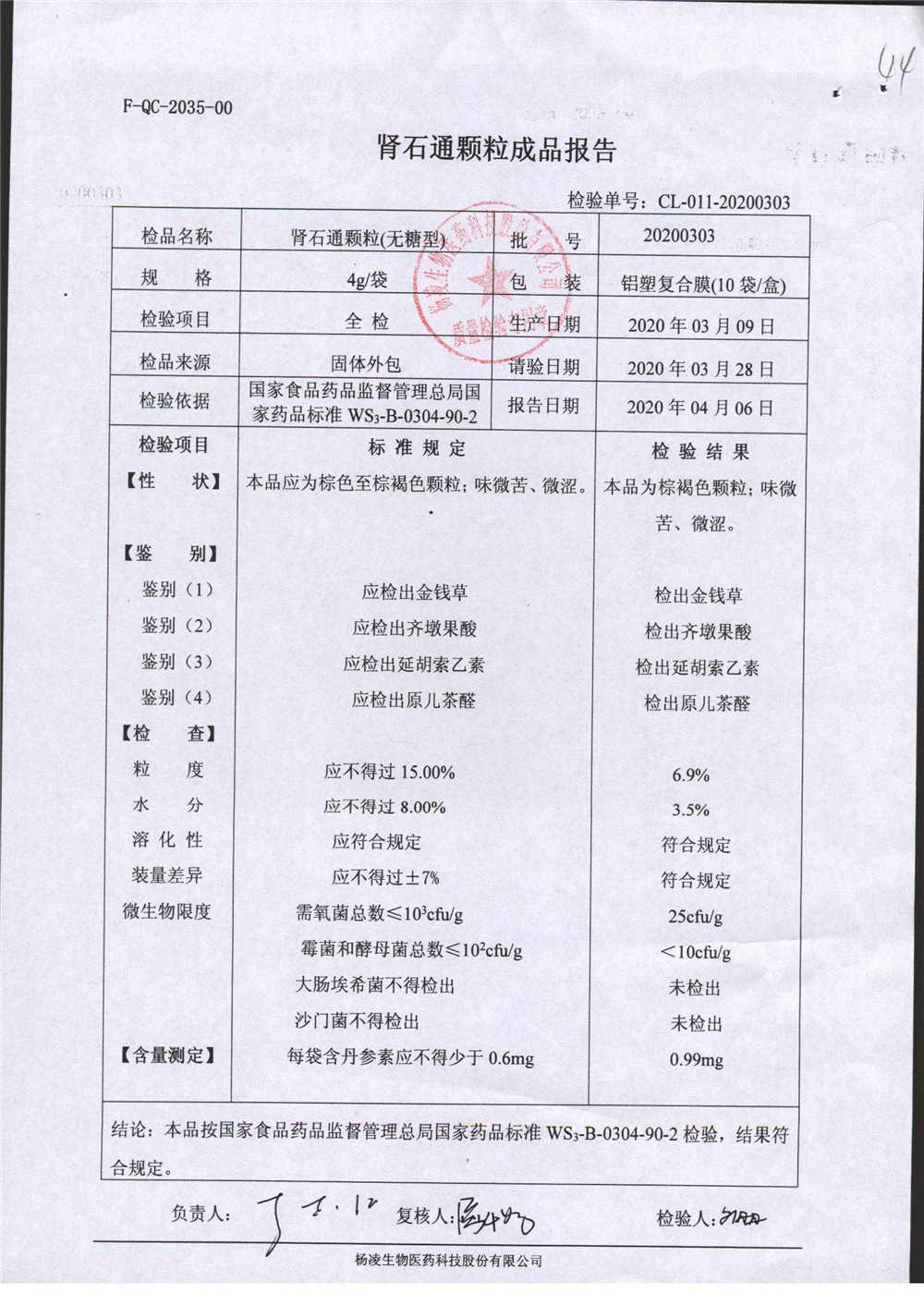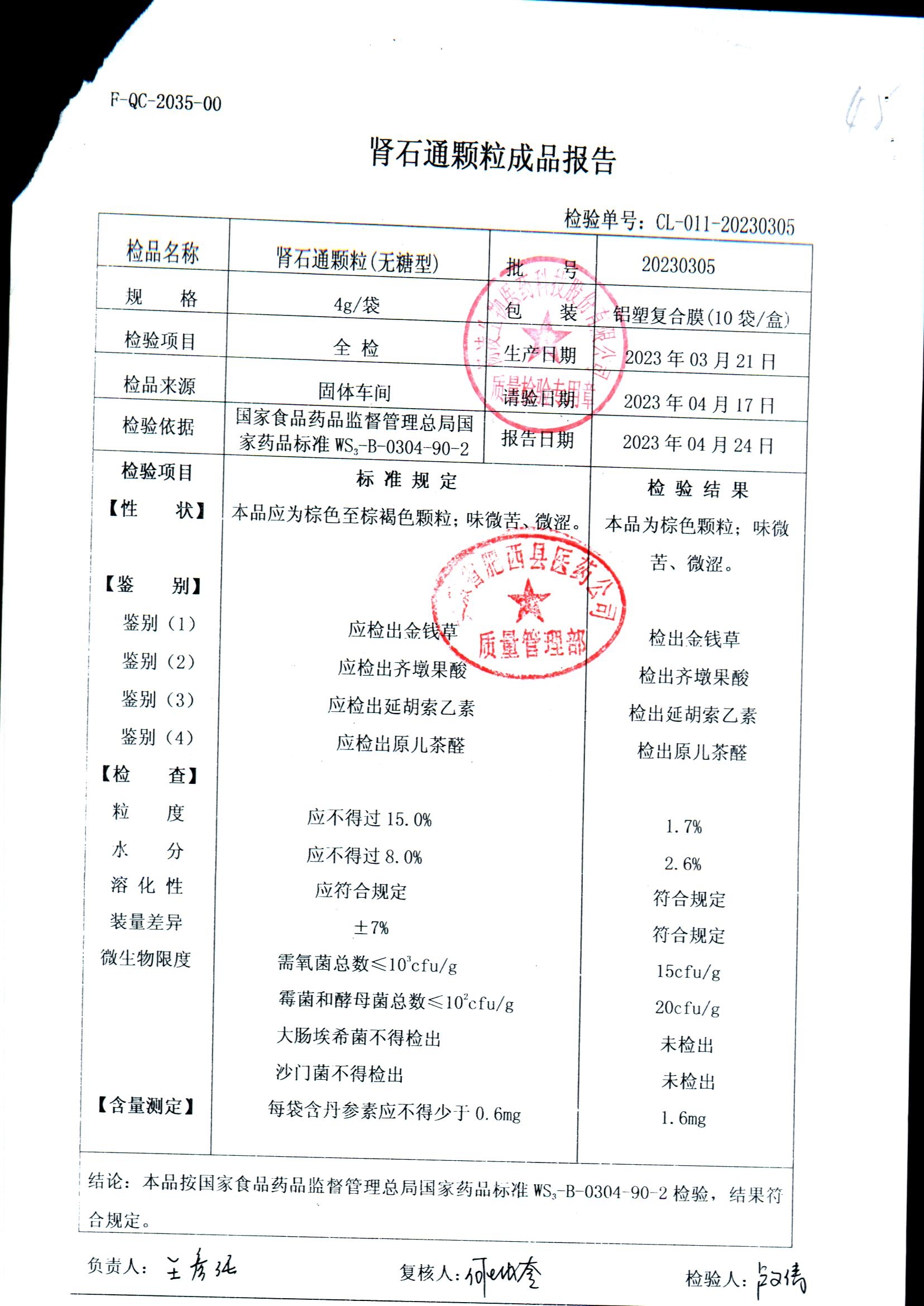 肾石通颗粒 | 4g*10袋 | 20210505 | 查看详情 |