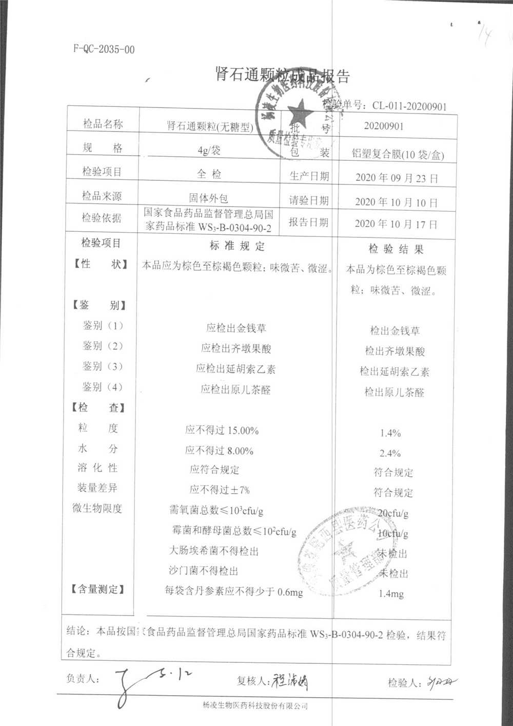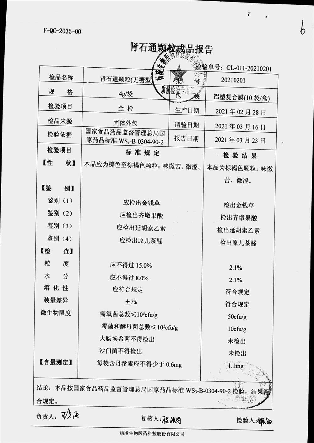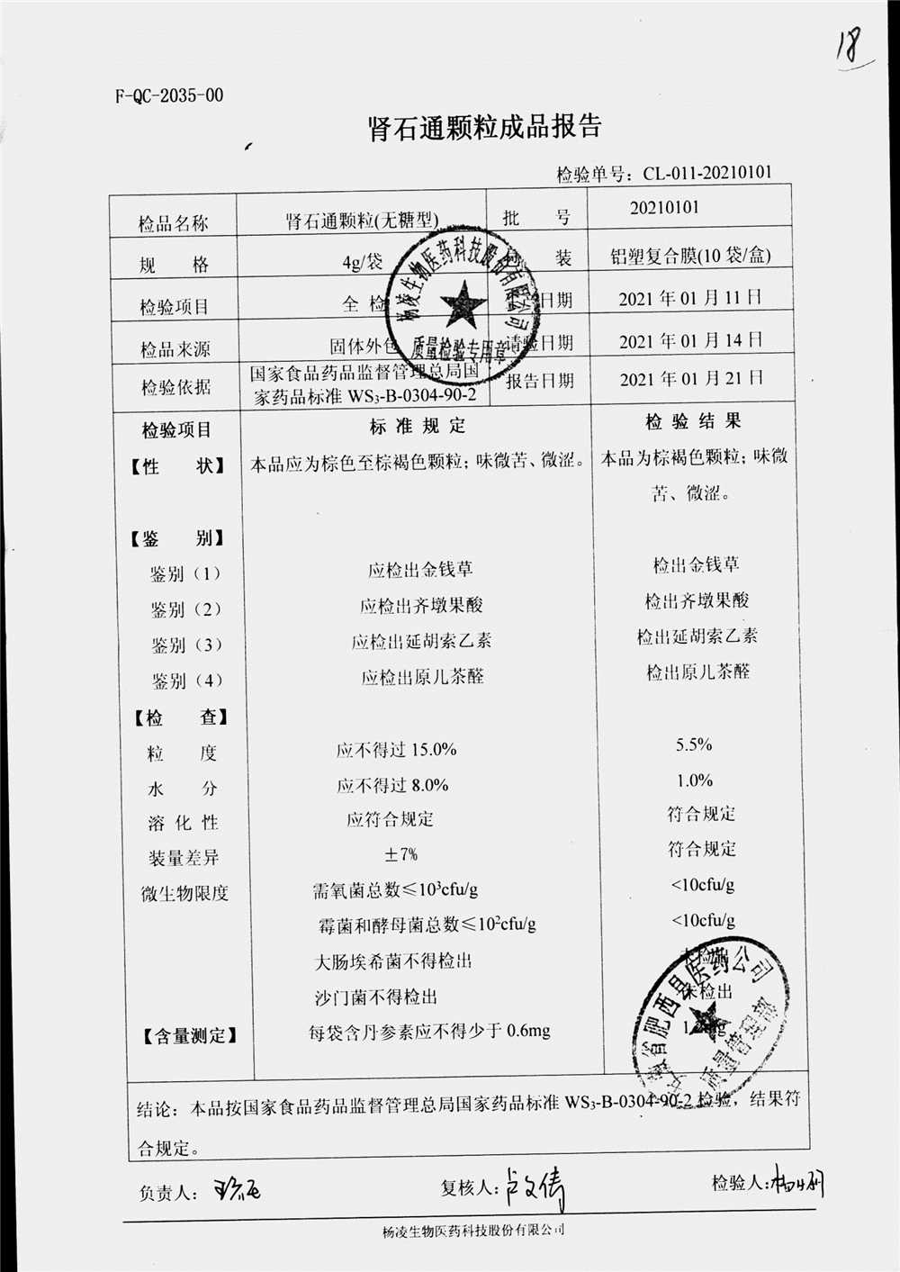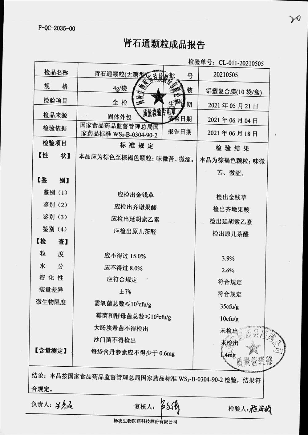 肾石通颗粒 | 4g*10袋 | 20210505 | 查看详情 |