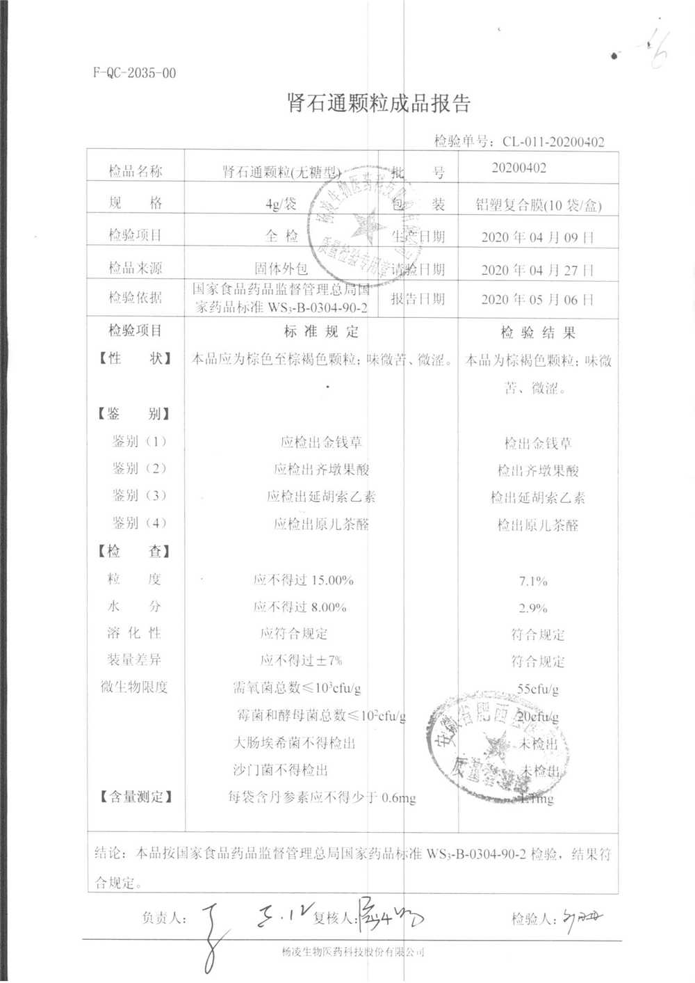 肾石通颗粒 | 4g*10袋 | 20200402 | 查看详情 |