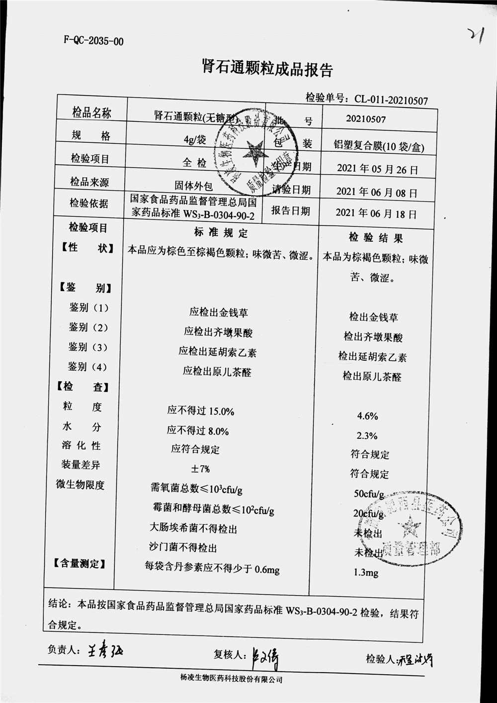 肾石通颗粒 | 4g*10袋 | 20210507 | 查看详情 |