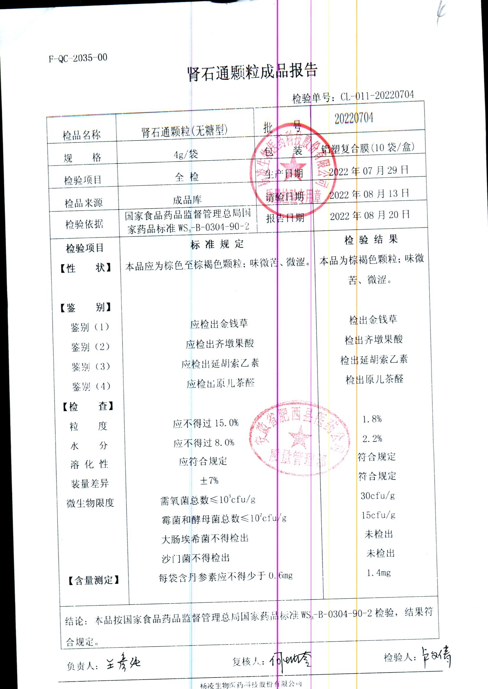肾石通颗粒 | 4g*10袋 | 20220704 | 查看详情 |