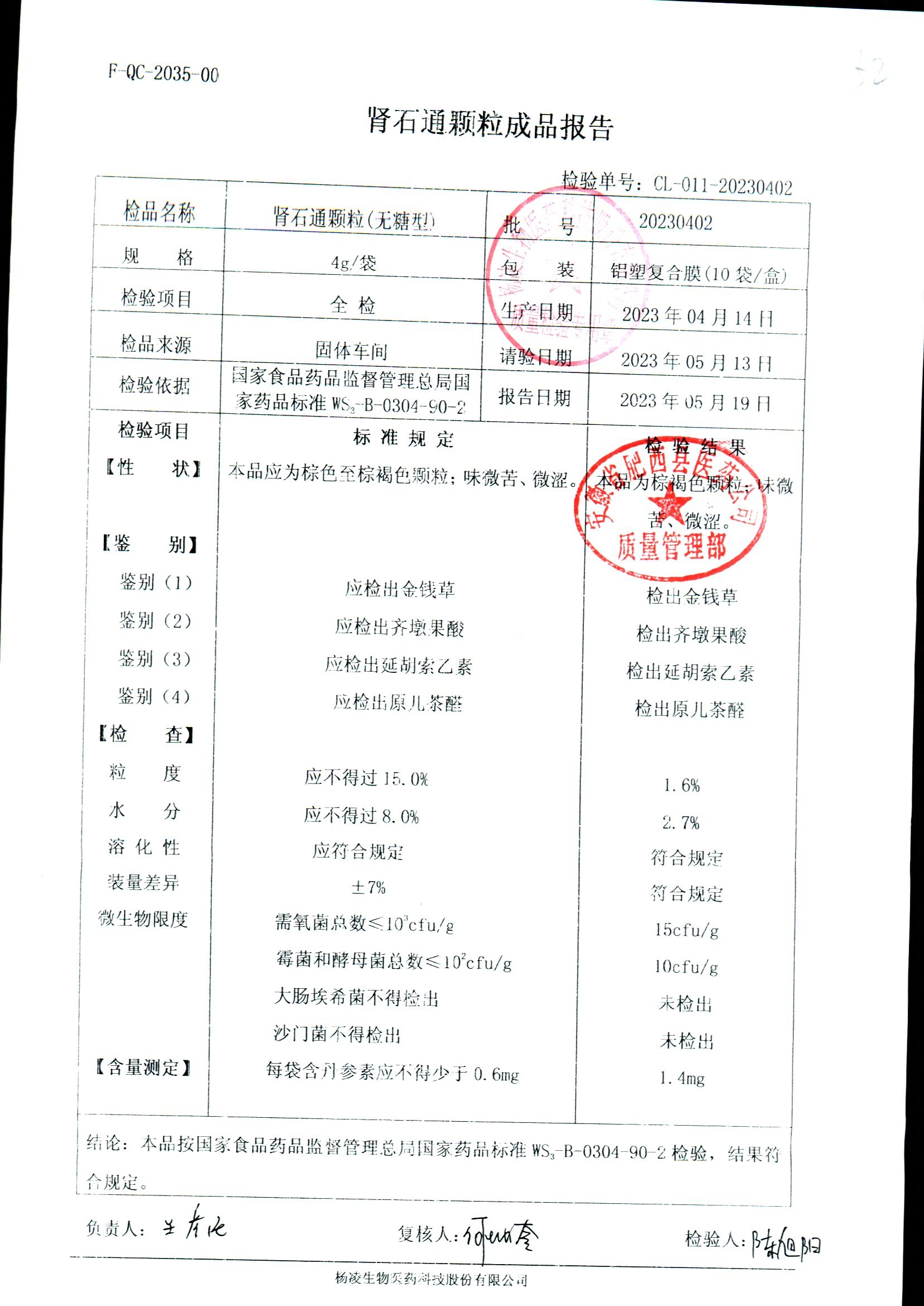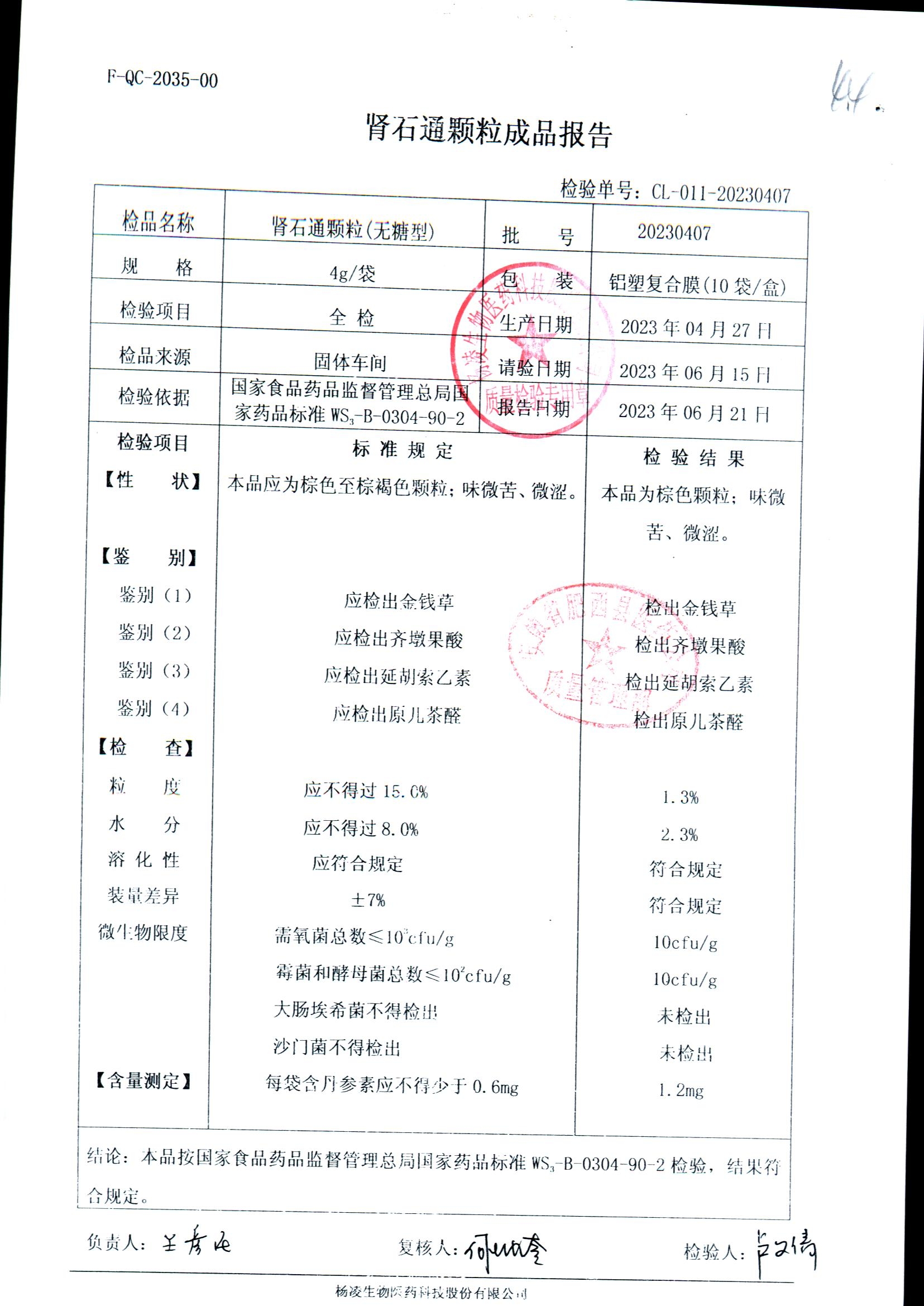 肾石通颗粒 | 4g*10袋 | 20230402 | 查看详情 |