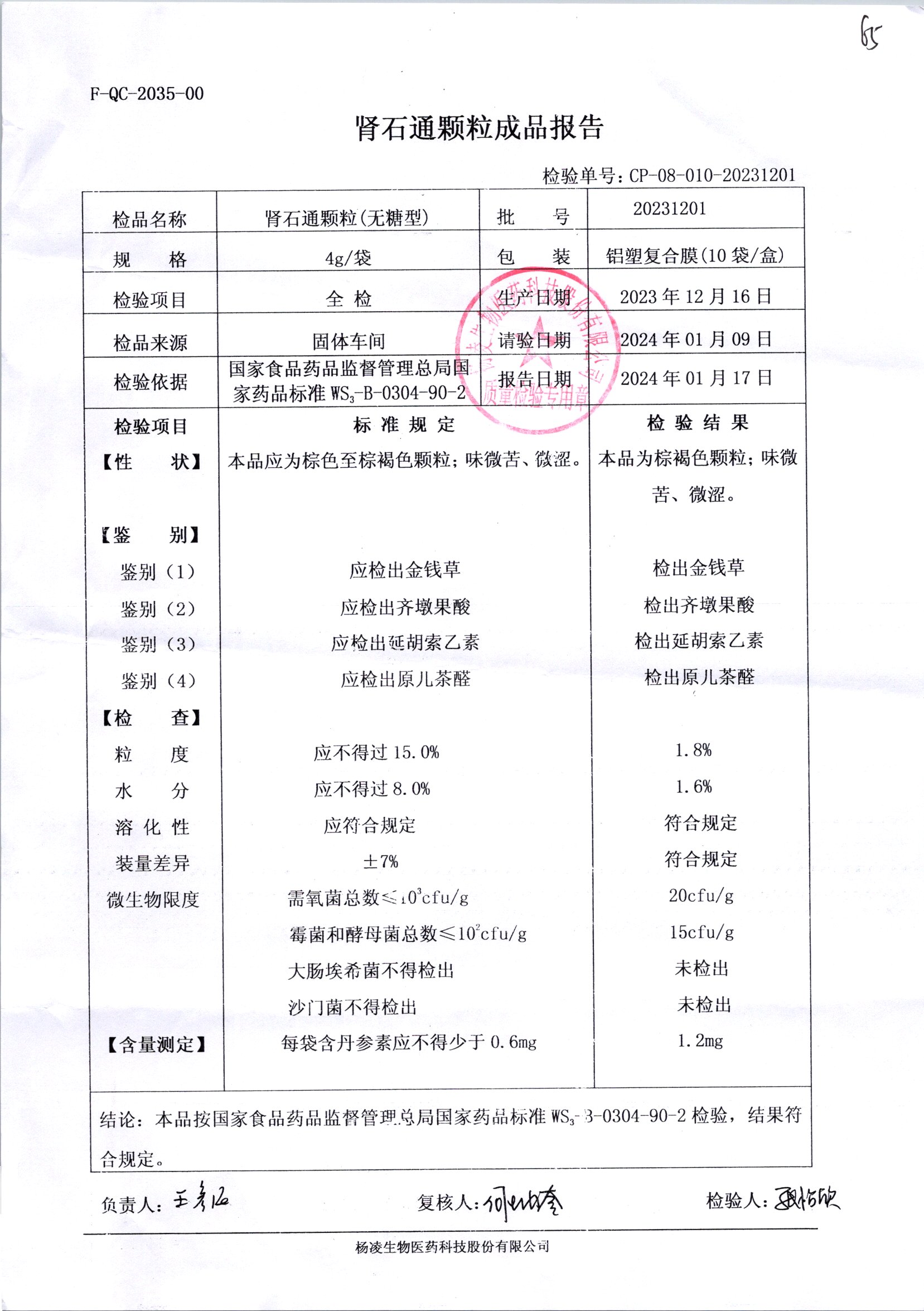 肾石通颗粒 | 4g*10袋 | 20231201 | 查看详情 |