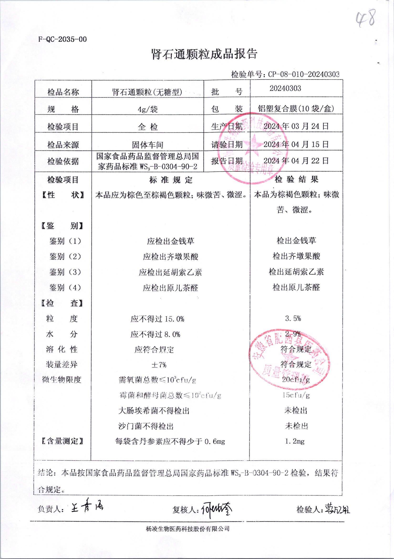 肾石通颗粒 | 4g*10袋 | 20240303 | 查看详情 |