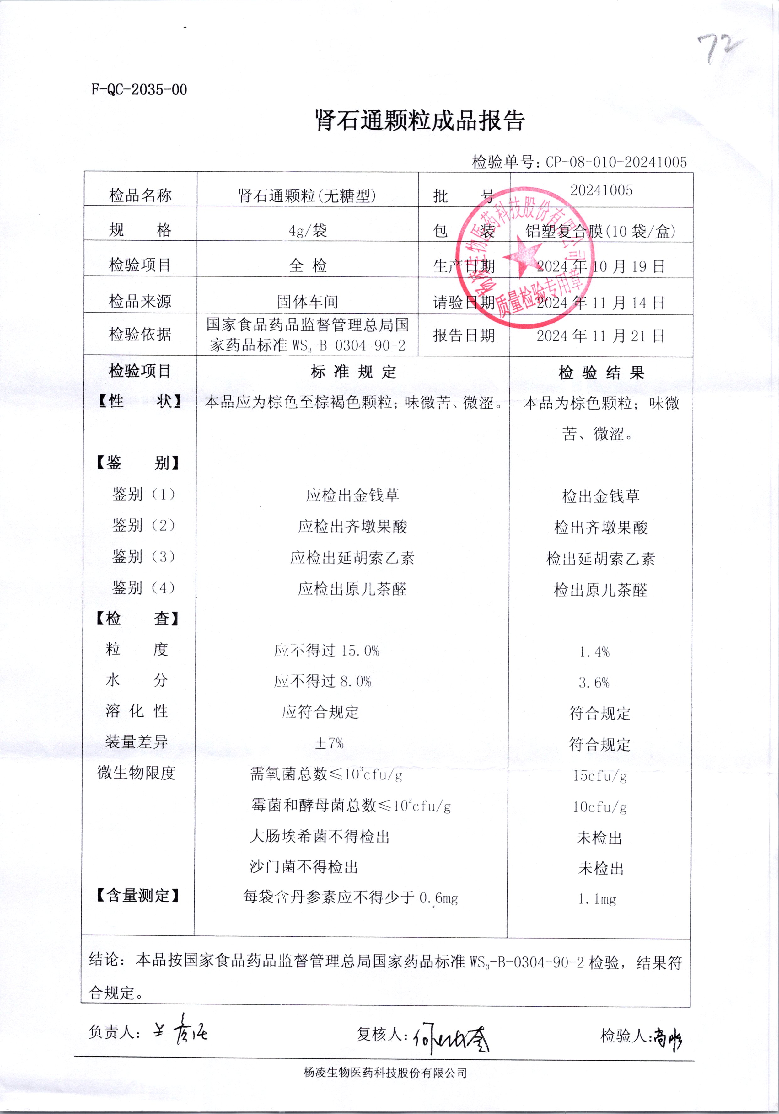 肾石通颗粒 | 4g*10袋 | 20241005 | 查看详情 |