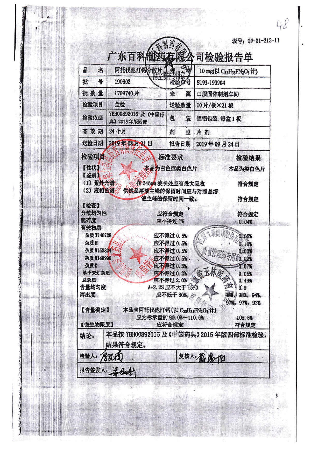 阿托伐他汀钙分散片 | 10mg*10片 | 190803 | 查看详情 |