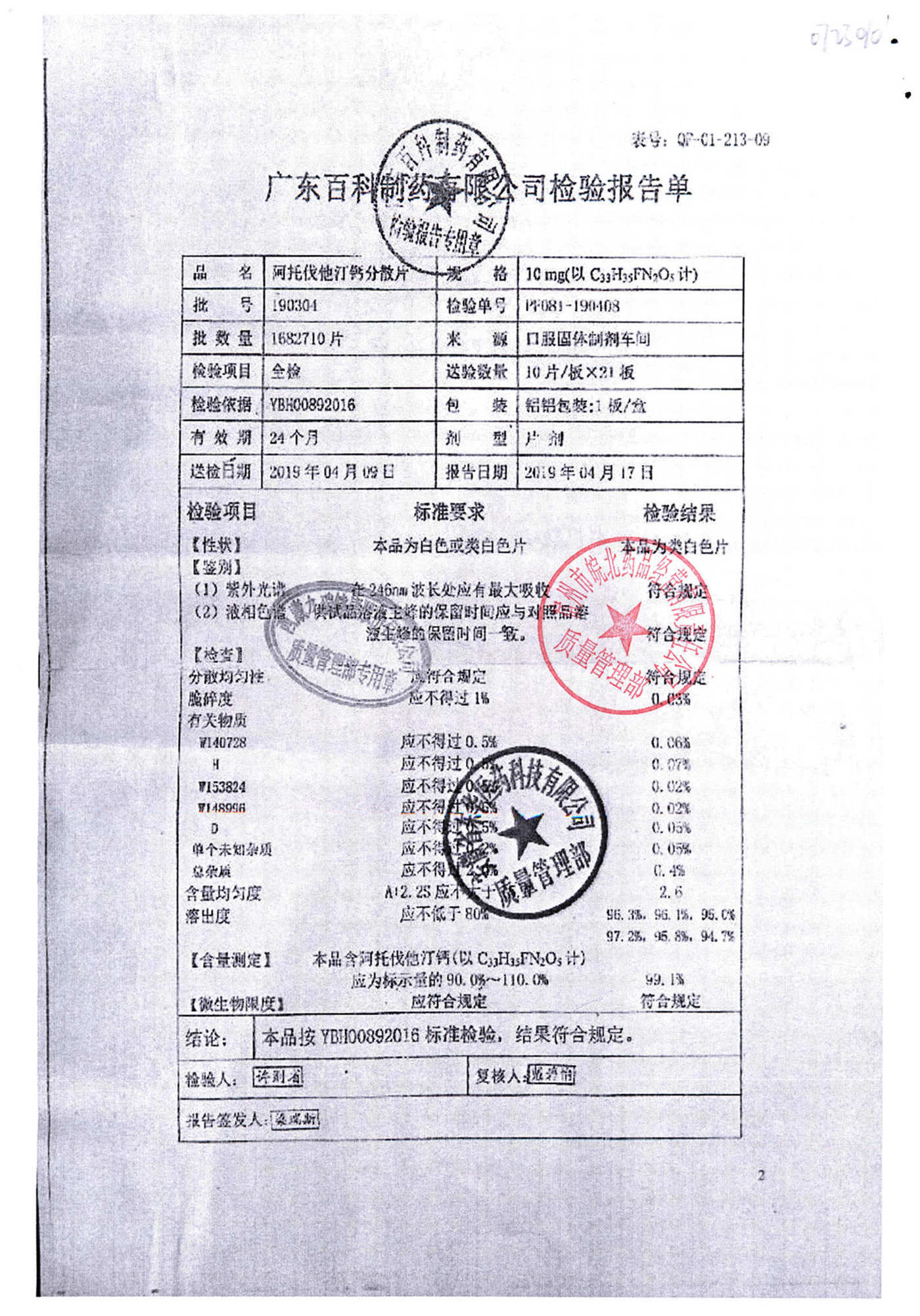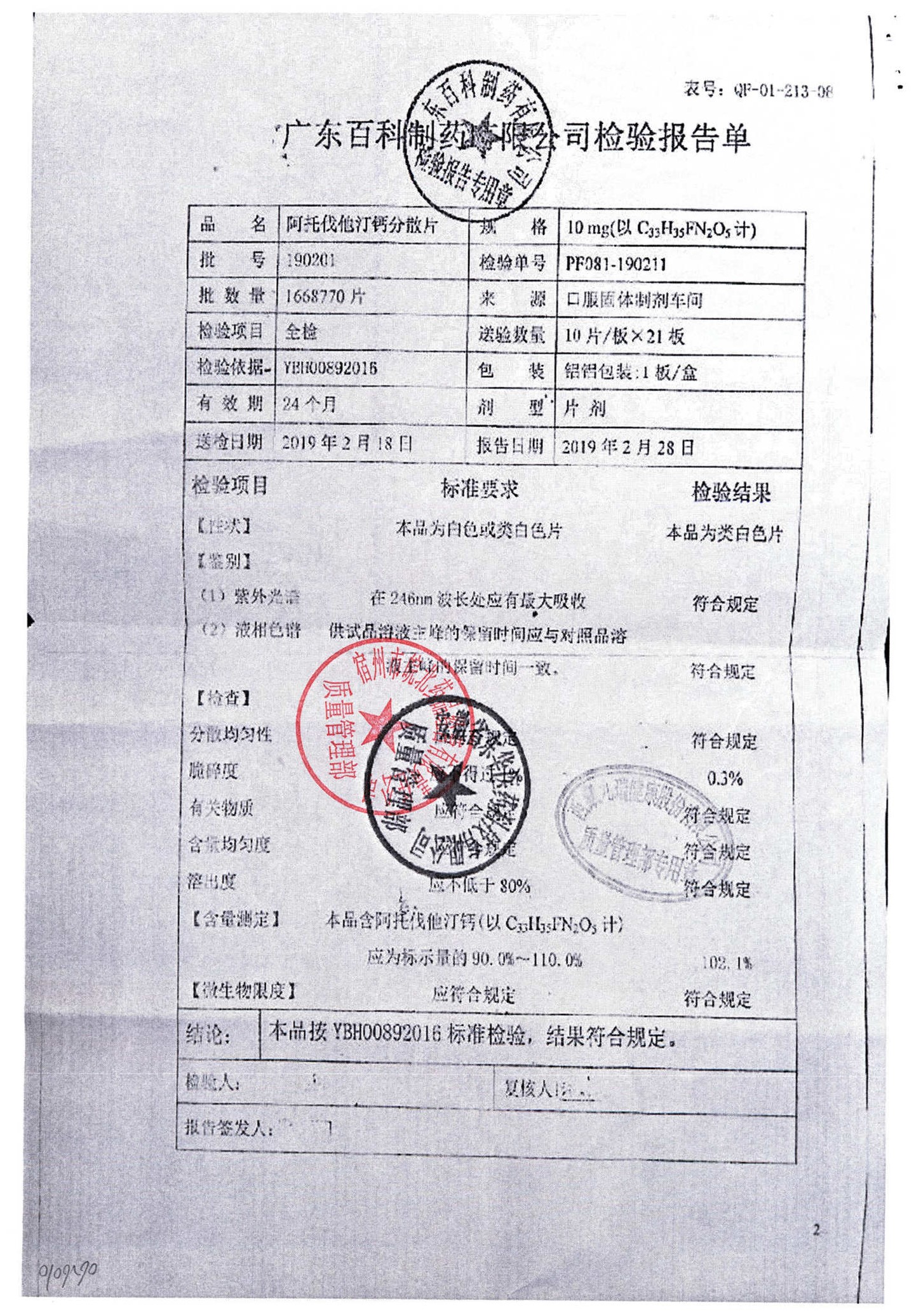 阿托伐他汀钙分散片 | 10mg*10片 | 190304 | 查看详情 |