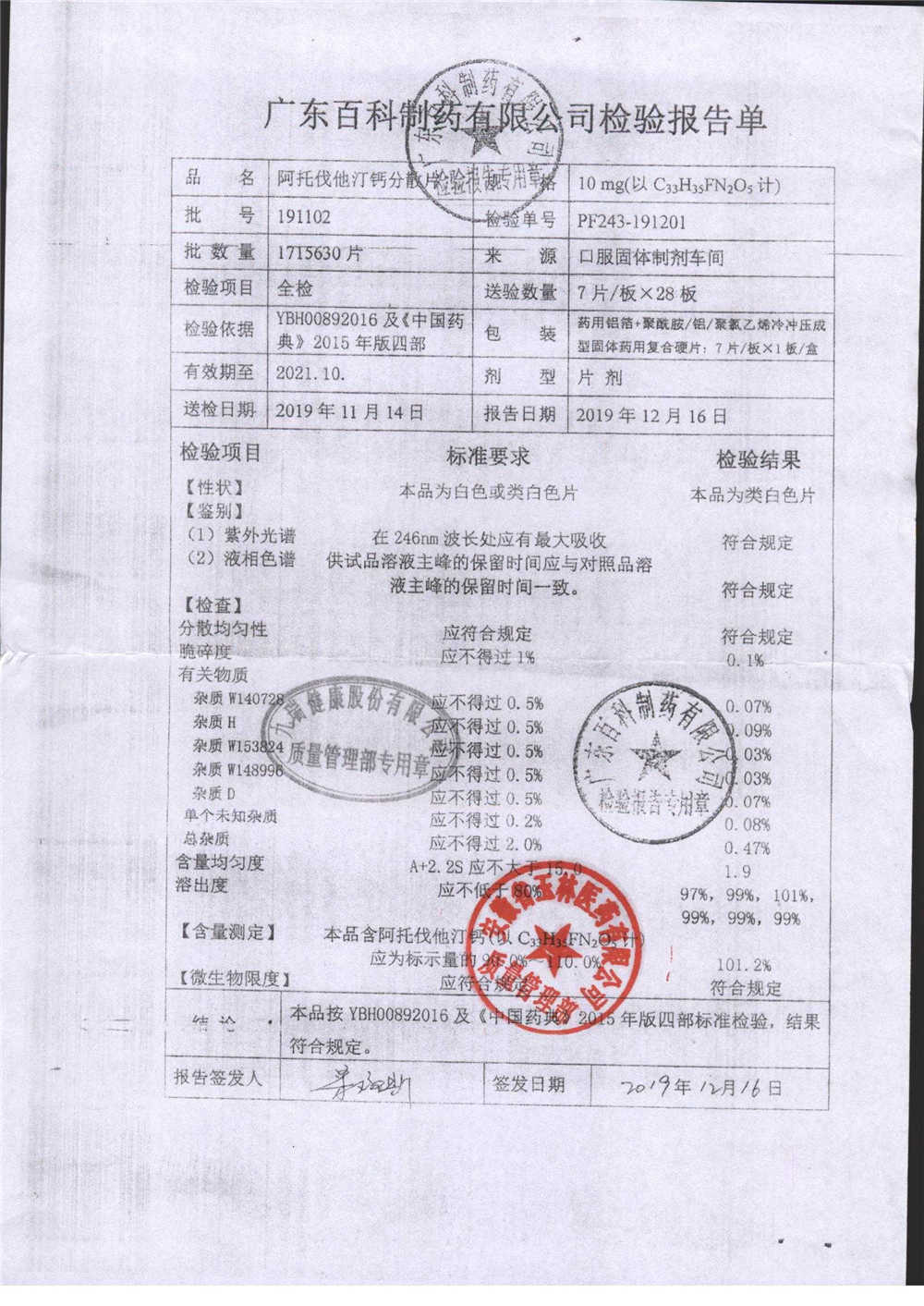 阿托伐他汀钙分散片 | 10mg*10片 | 191102 | 查看详情 |