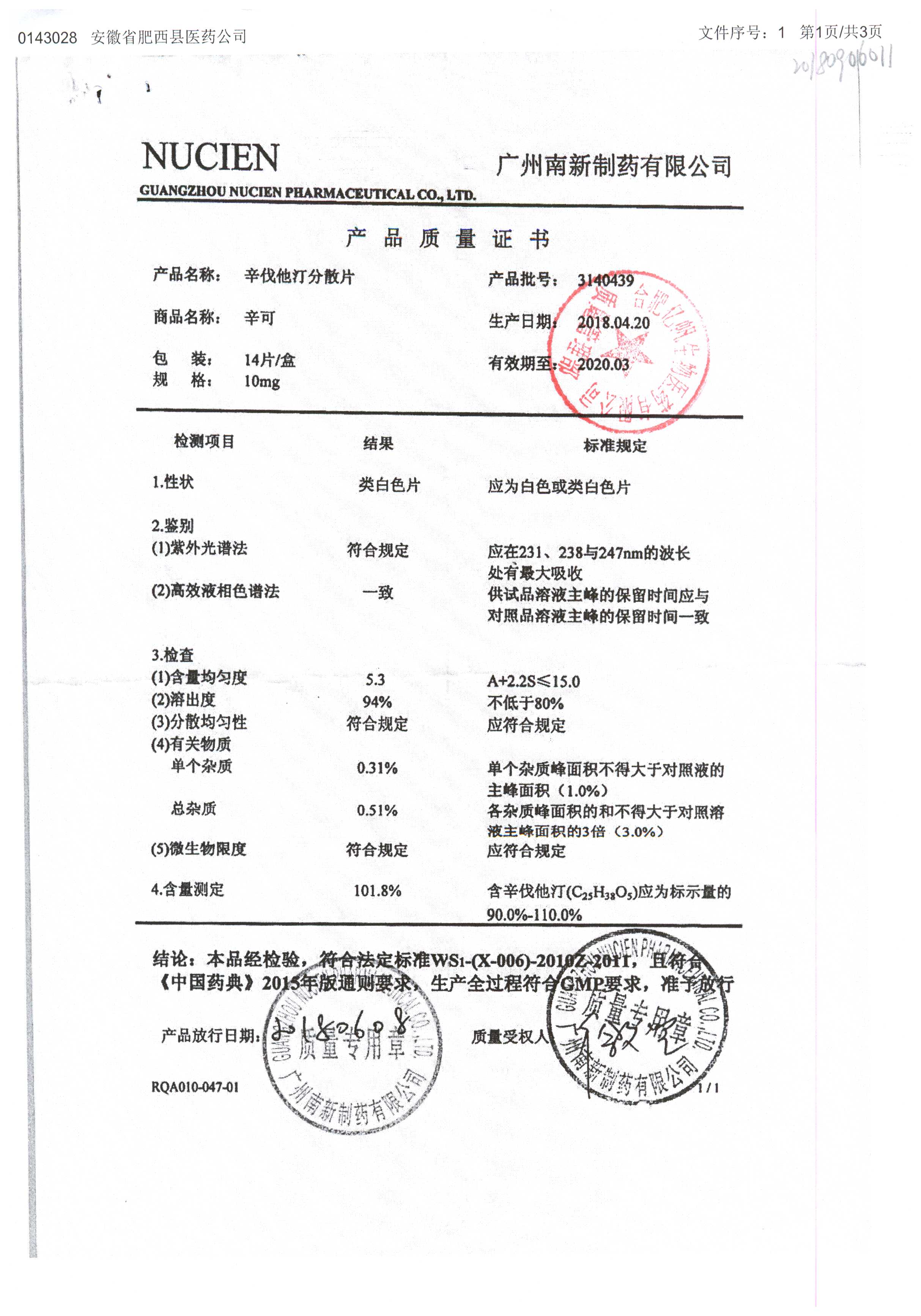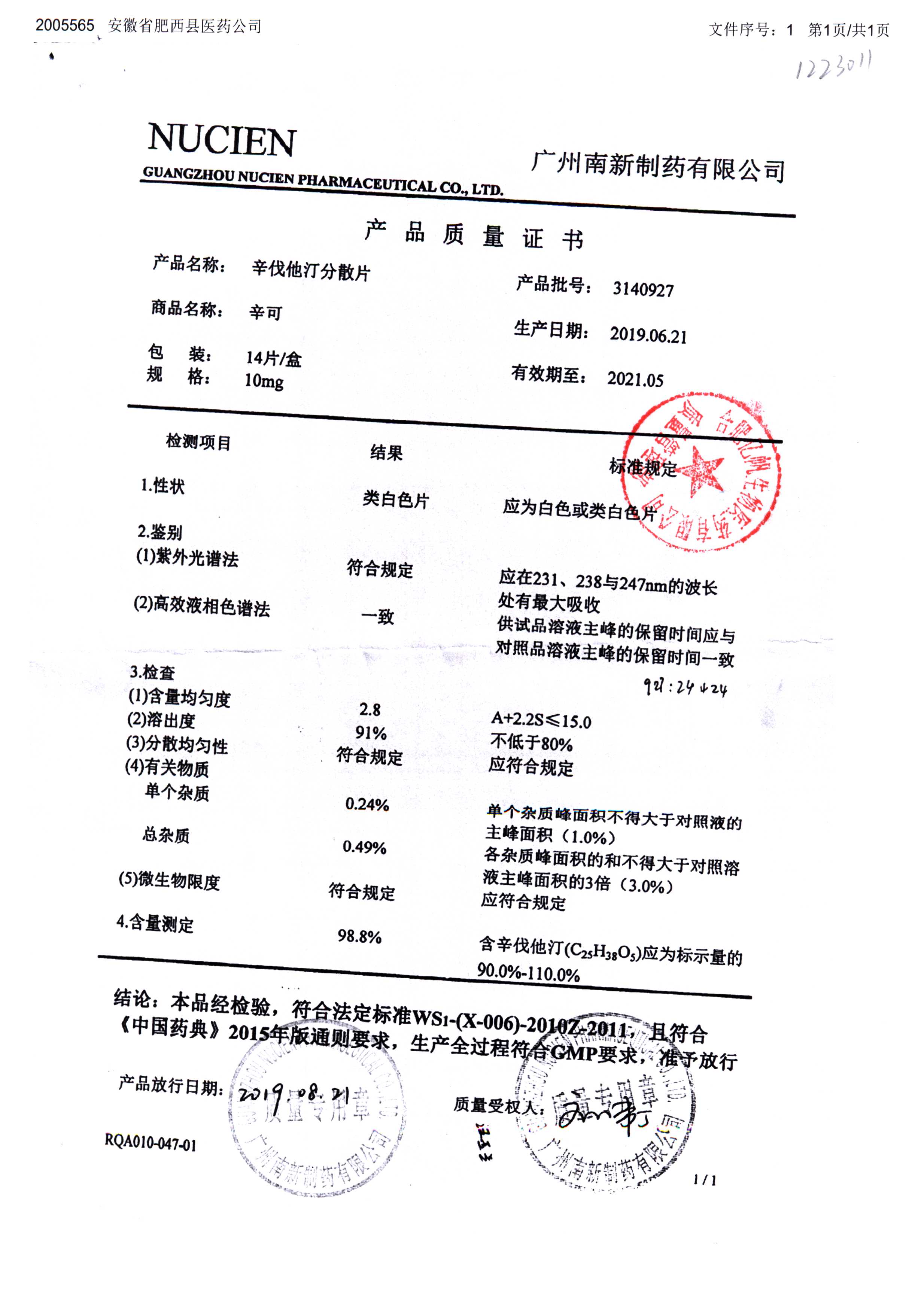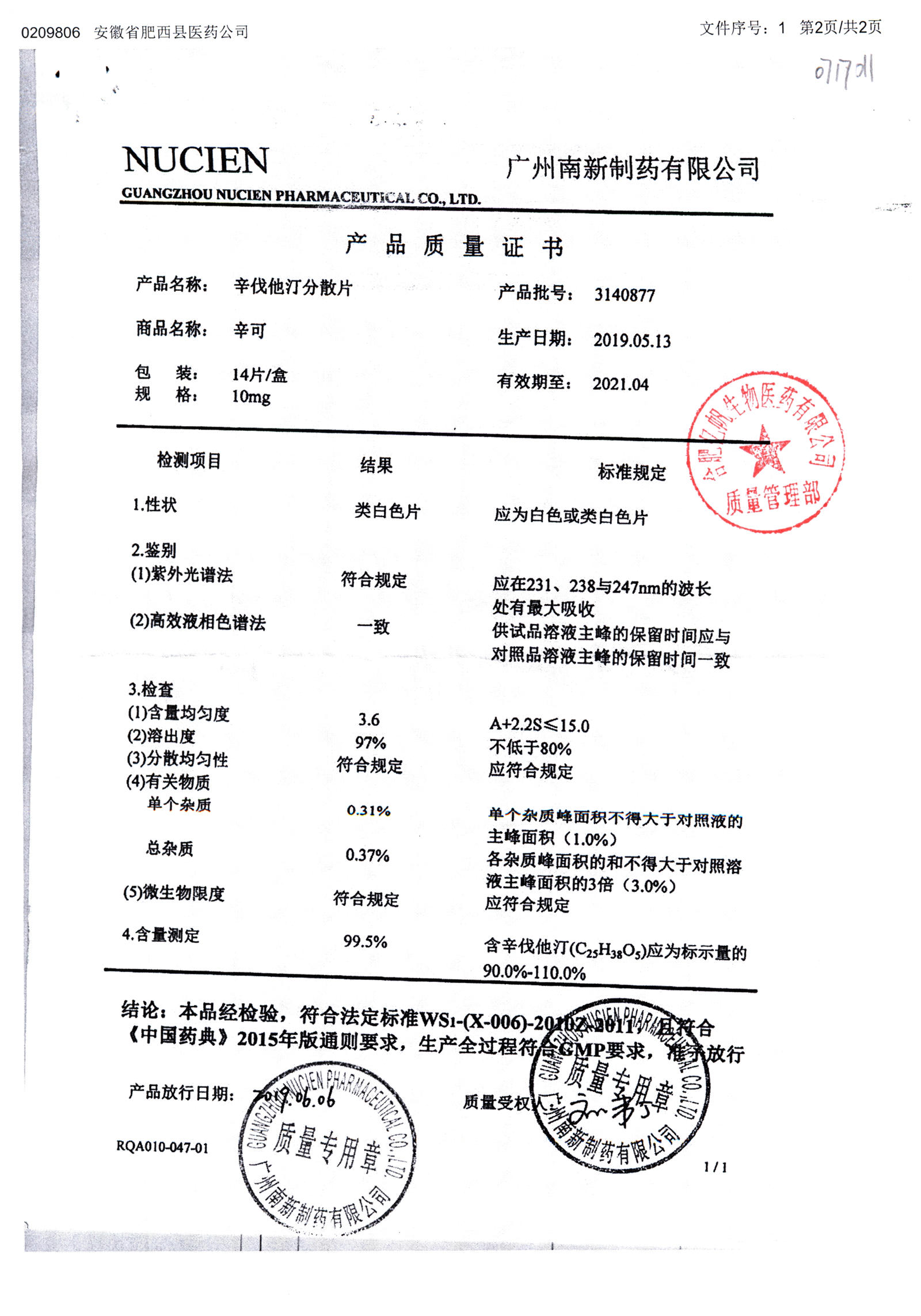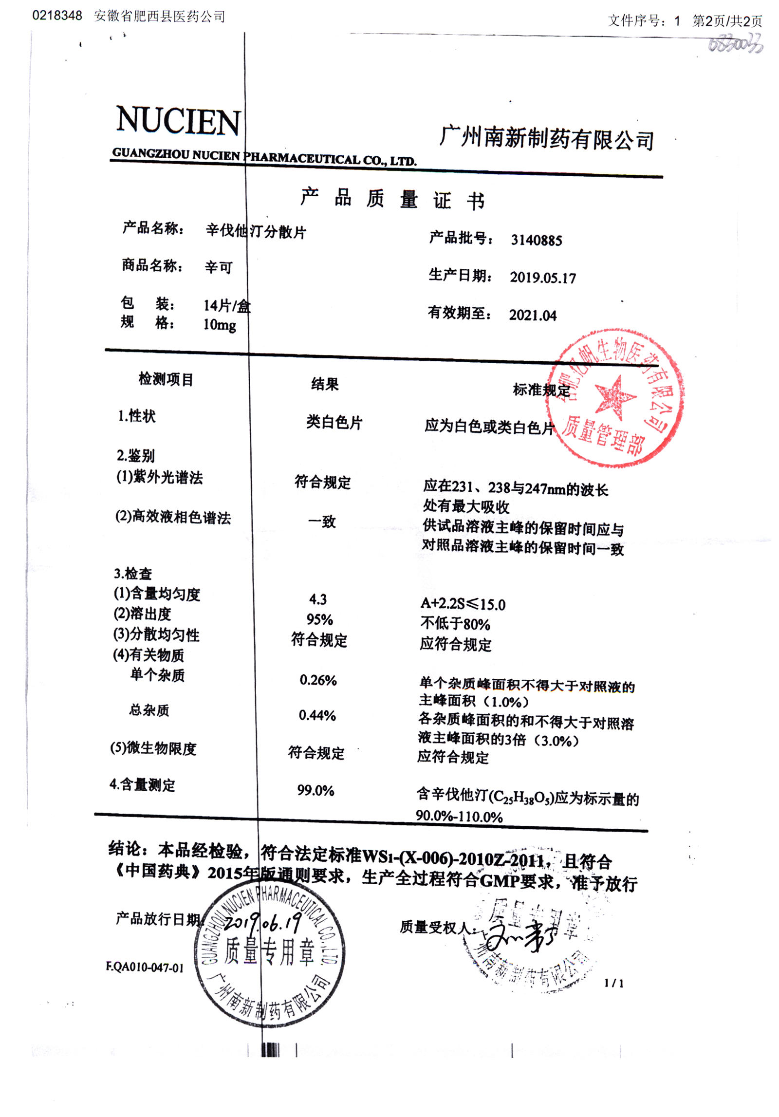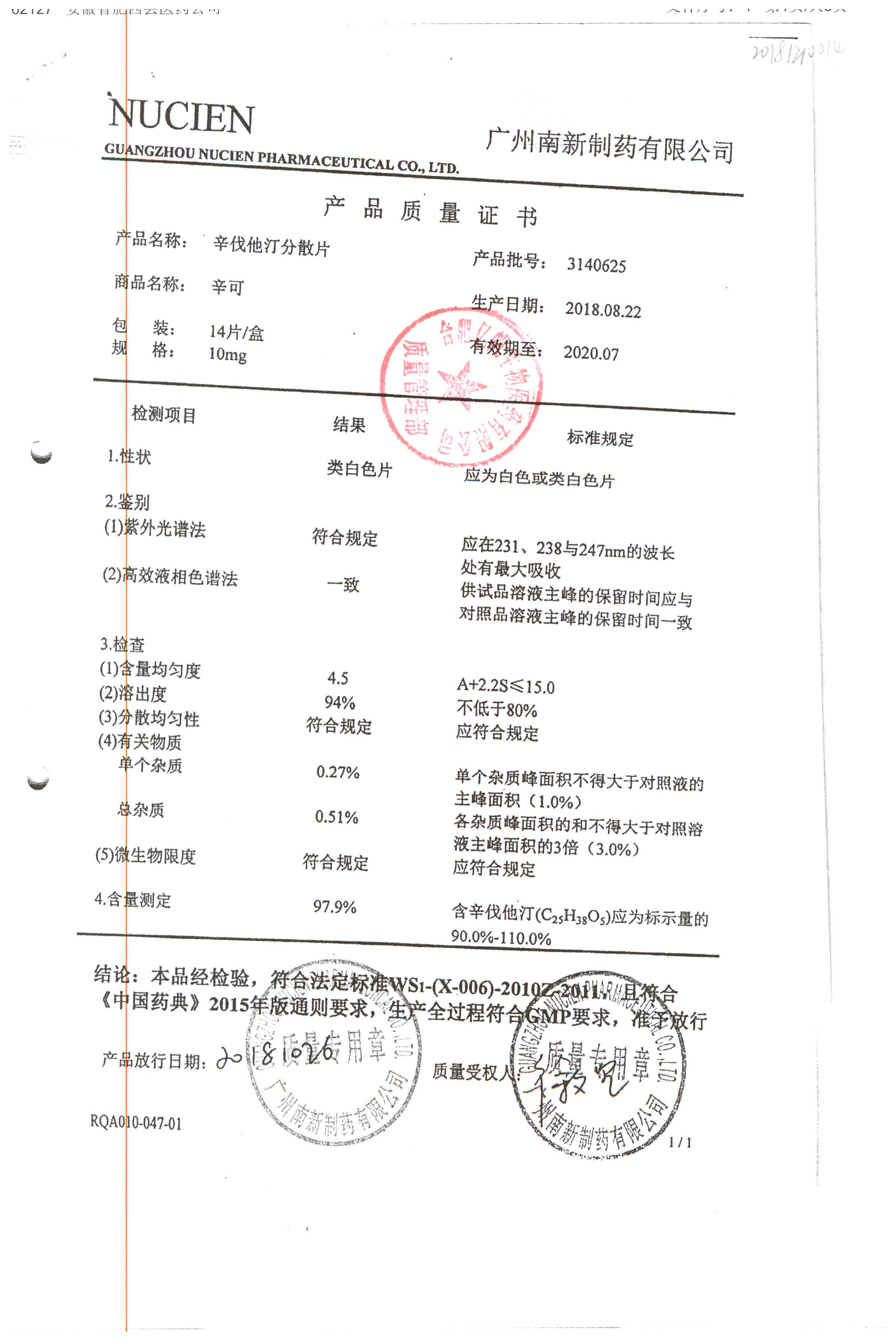 辛伐他汀分散片 | 10mg*14片 | 3140927 | 查看详情 |