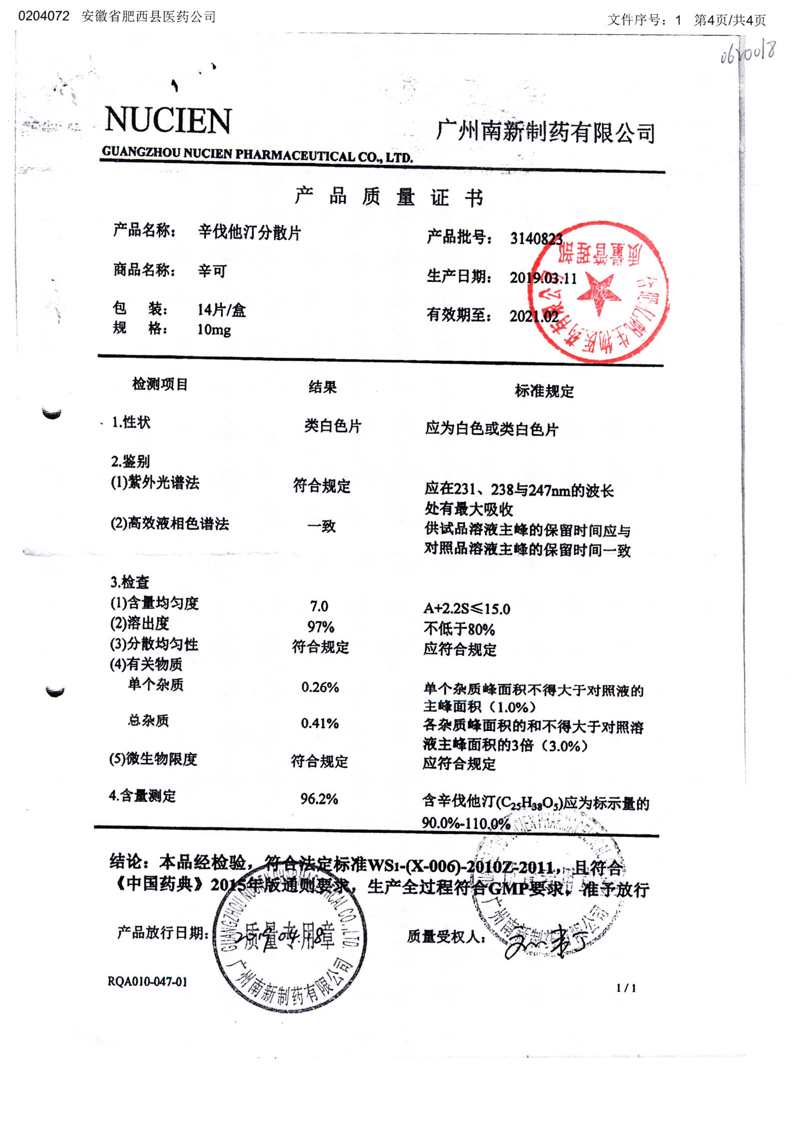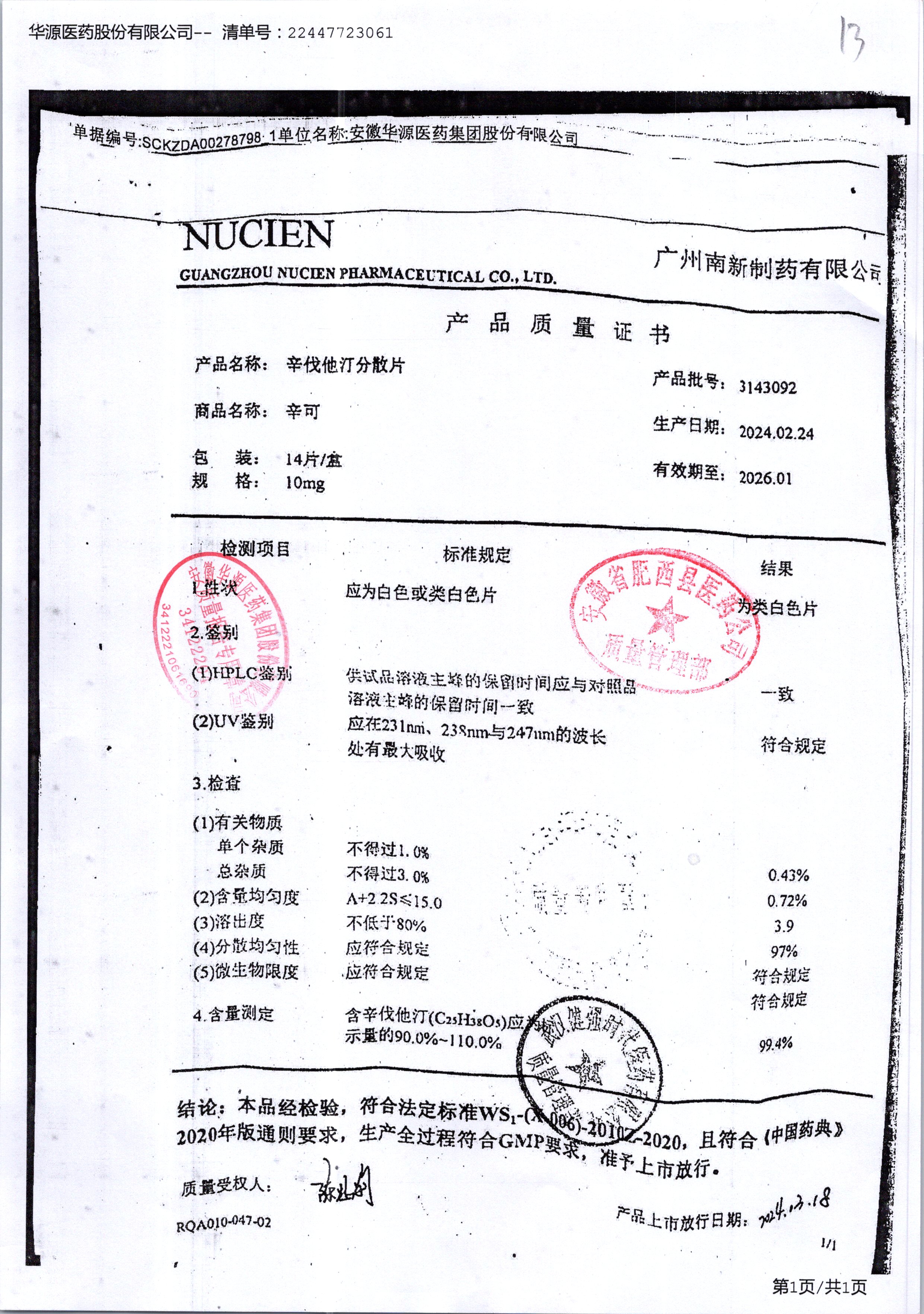 辛伐他汀分散片 | 10mg*14片 | 3140625 | 查看详情 |