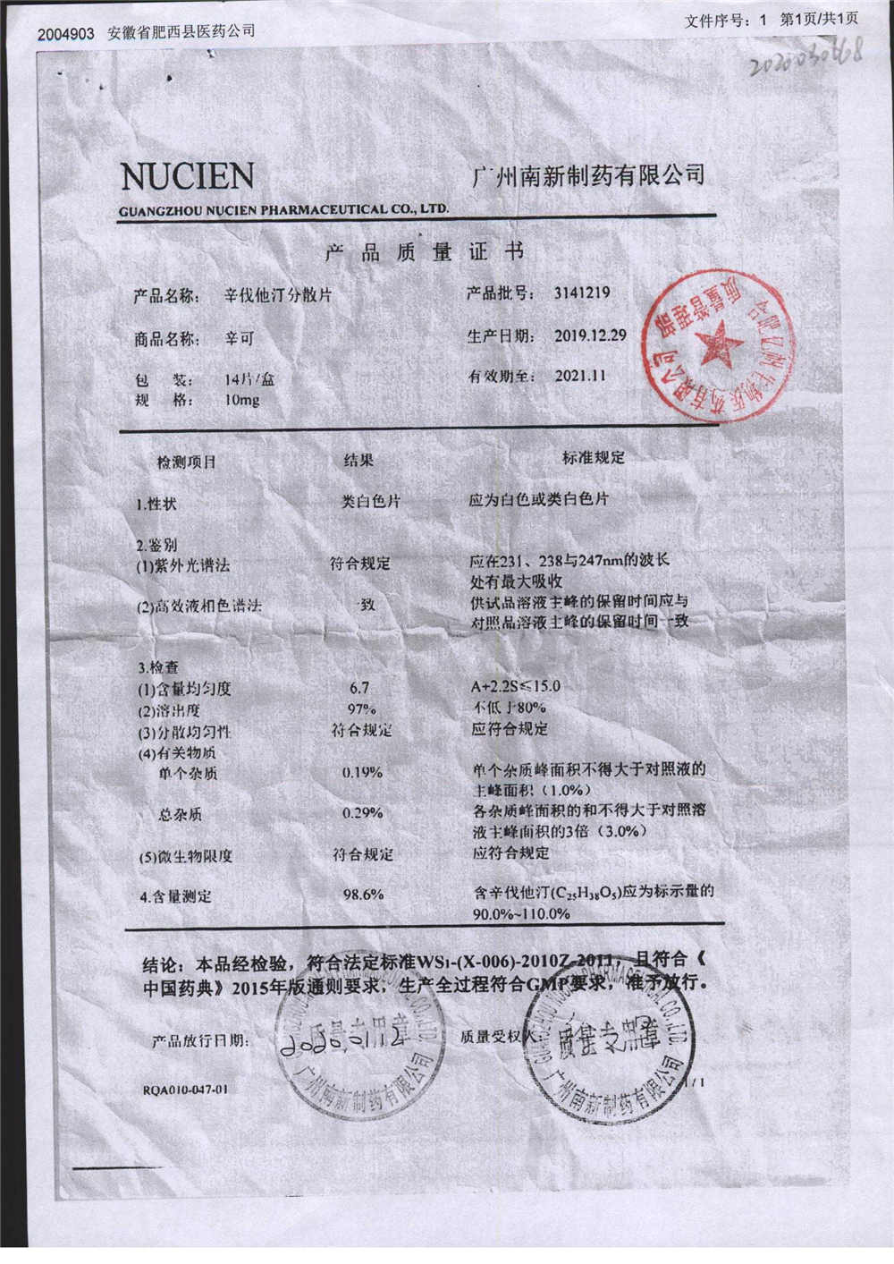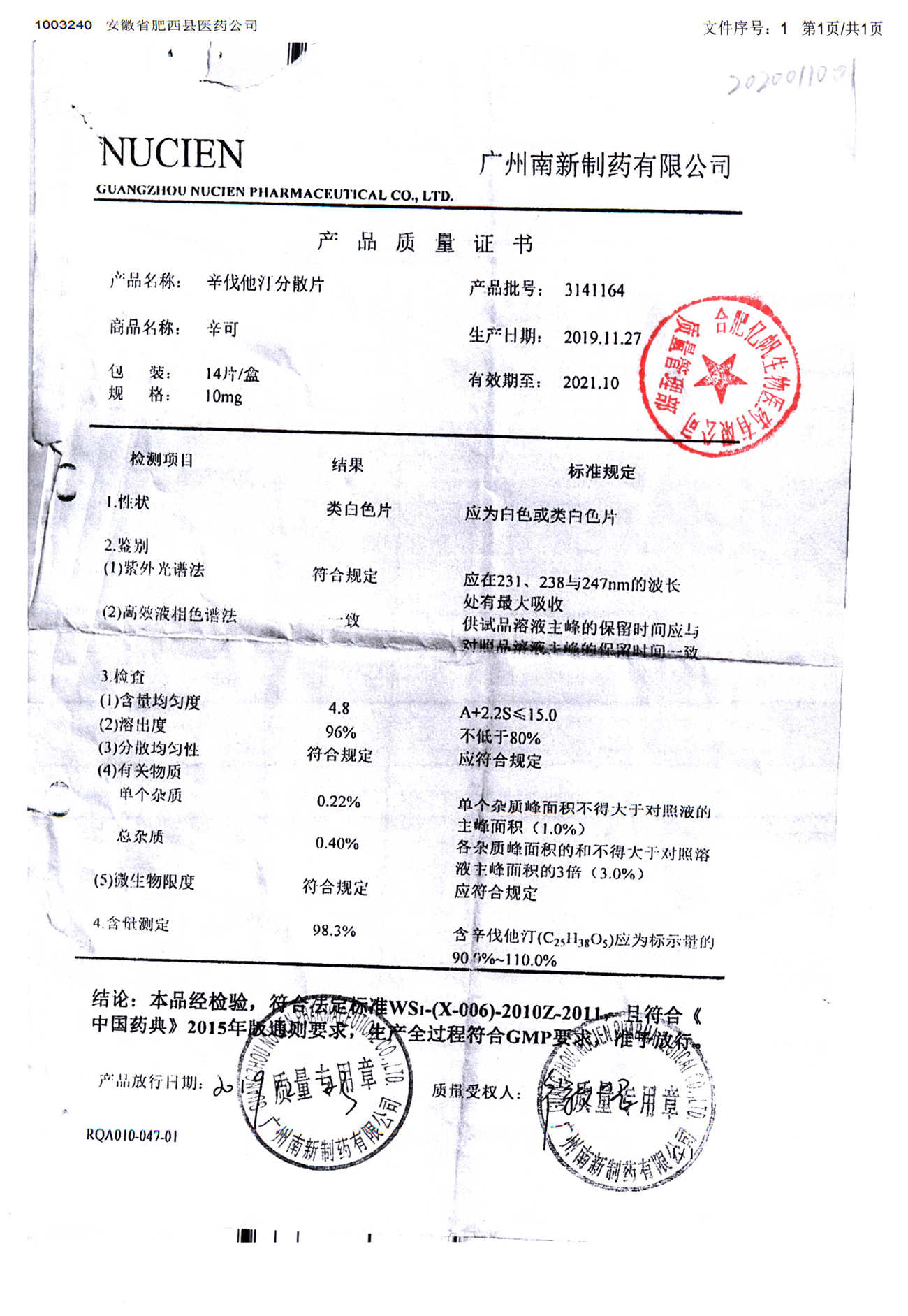 辛伐他汀分散片 | 10mg*14片 | 3140885 | 查看详情 |