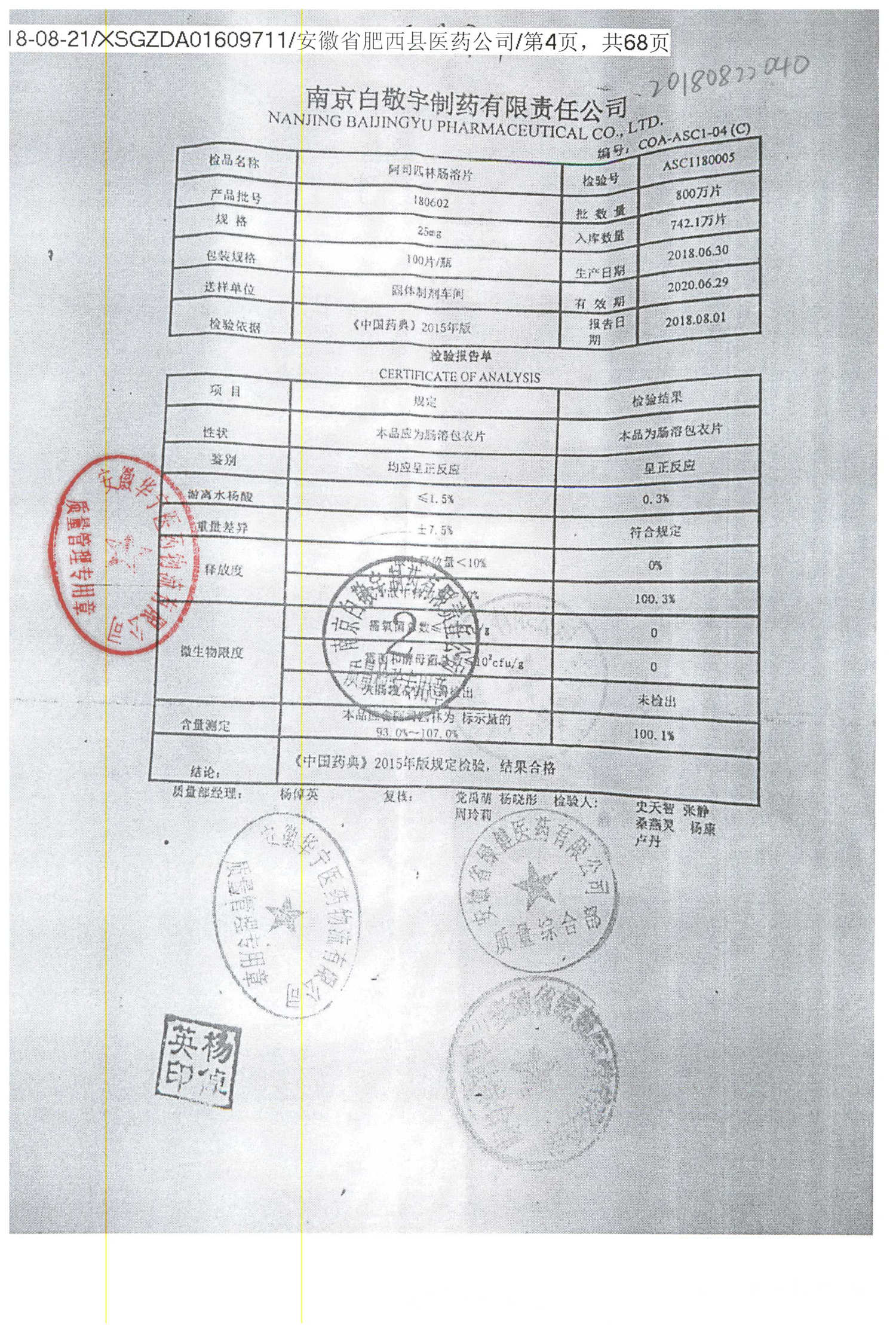 药检报告