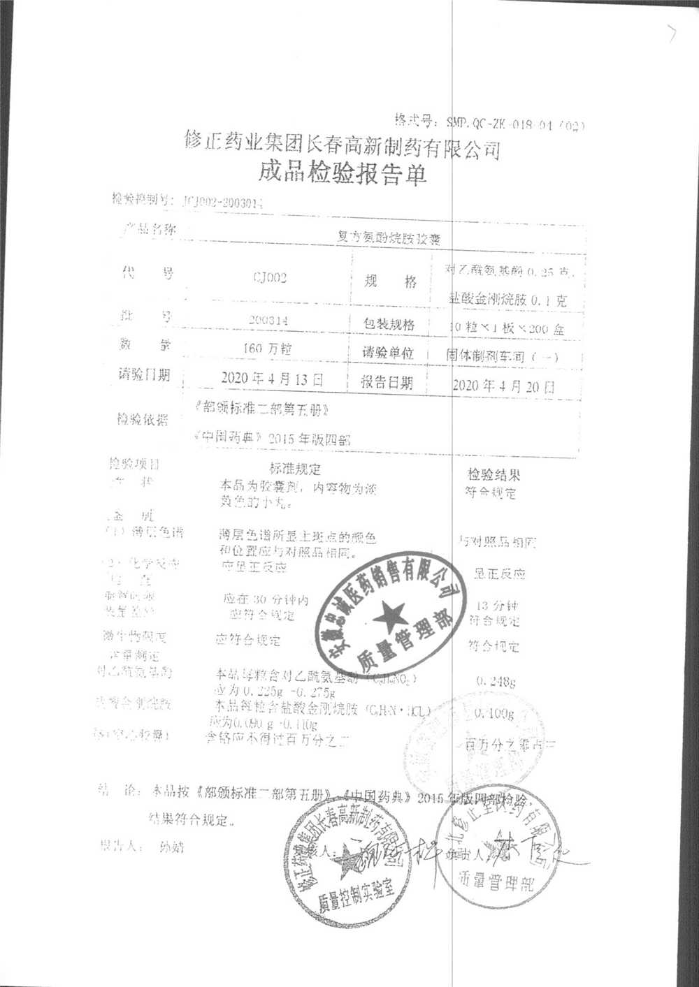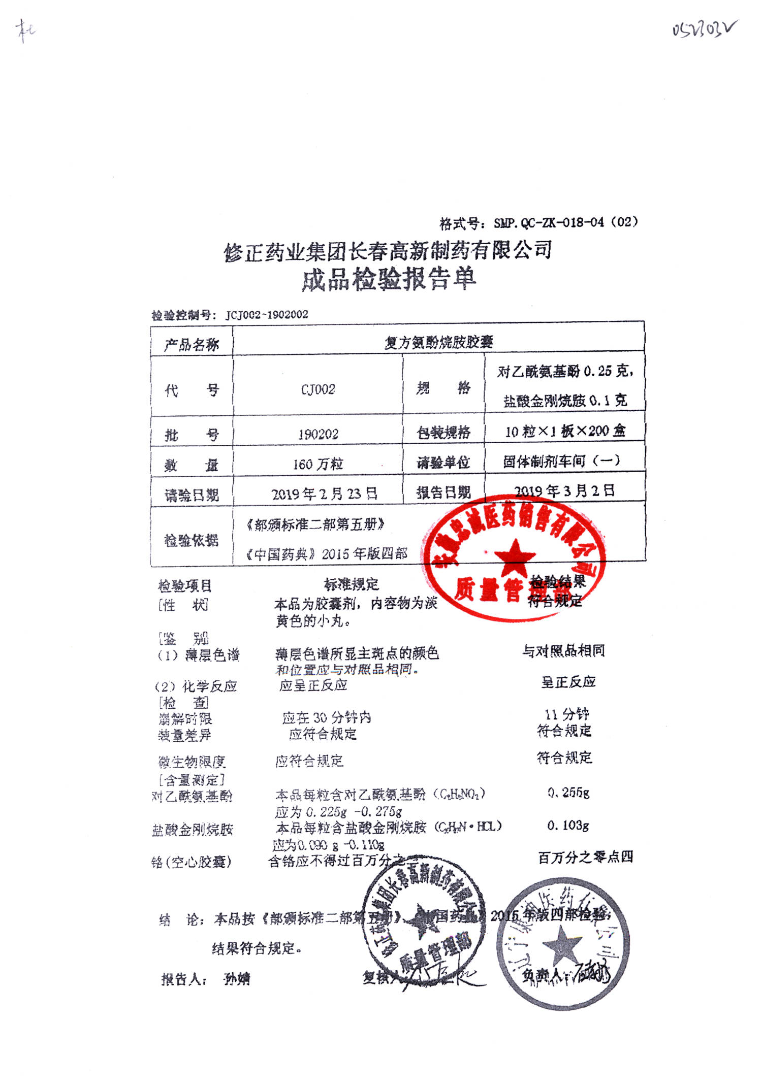 复方氨酚烷胺胶囊 | 10粒 | 190202 | 查看详情 |