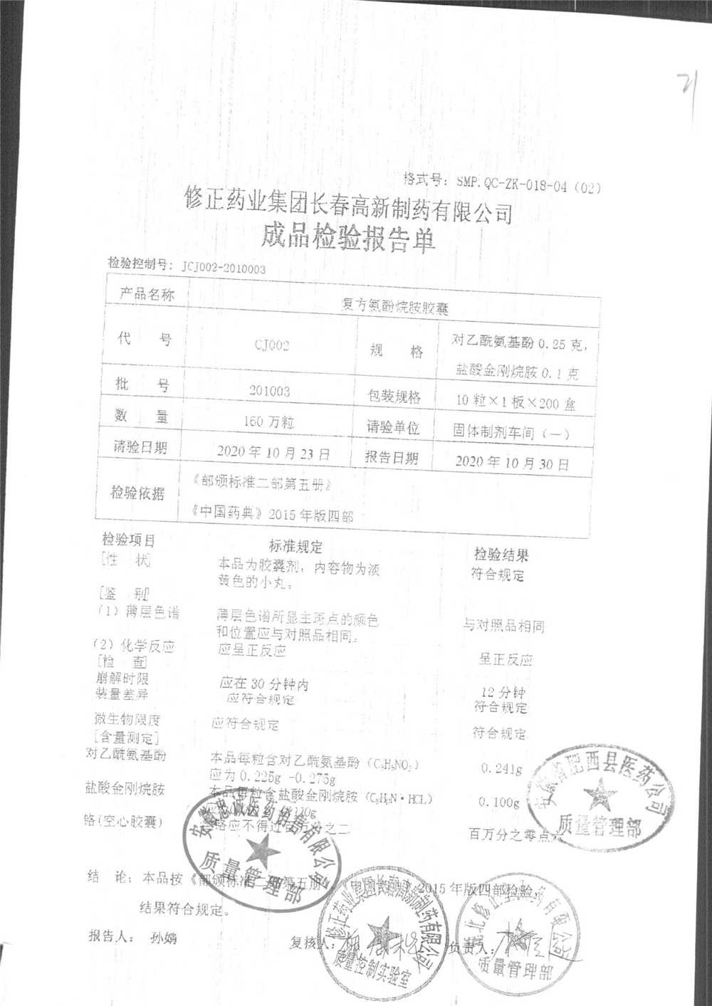 复方氨酚烷胺胶囊 | 10粒 | 201003 | 查看详情 |