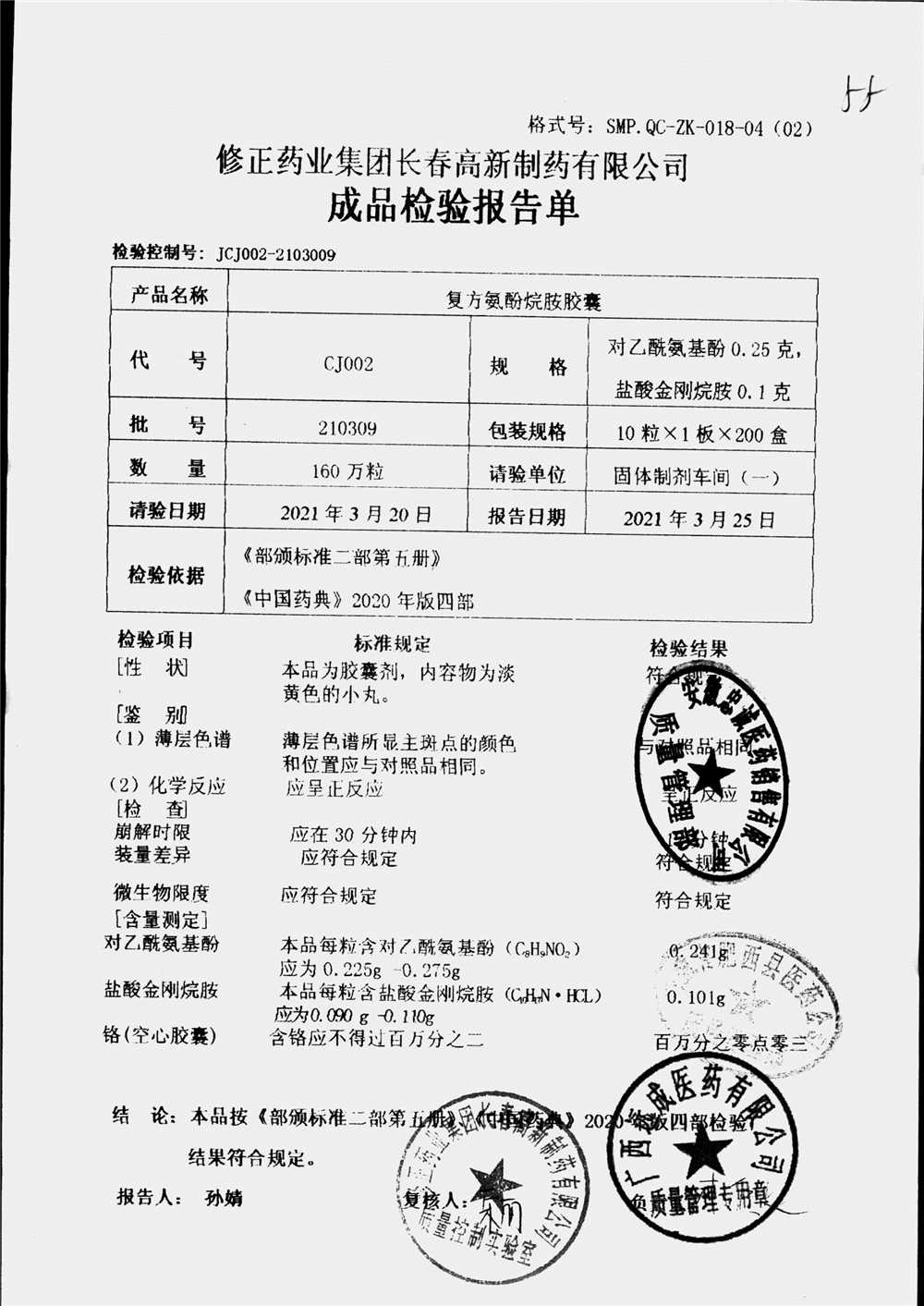 复方氨酚烷胺胶囊 | 10粒 | 210309 | 查看详情 |