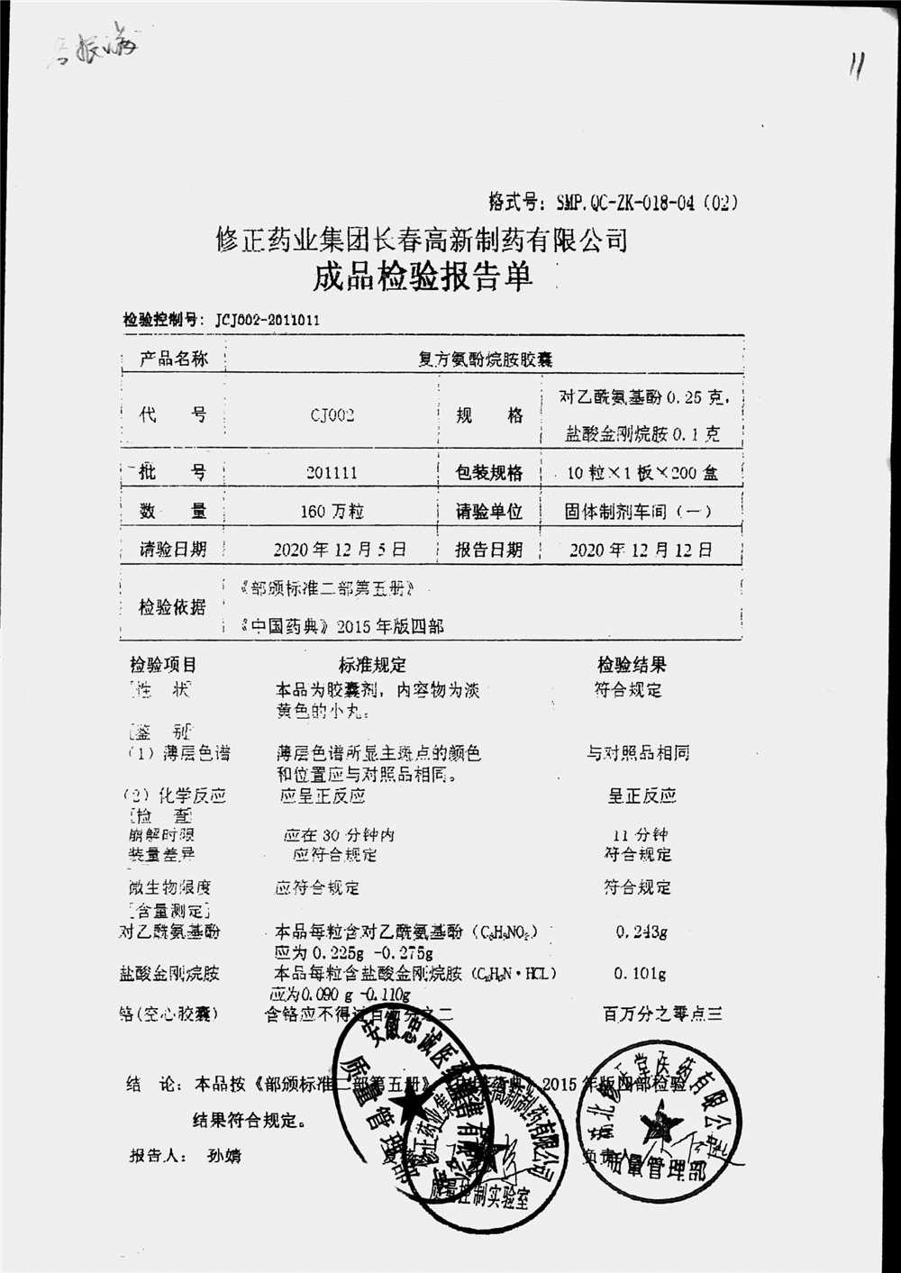复方氨酚烷胺胶囊 | 10粒 | 210107 | 查看详情 |