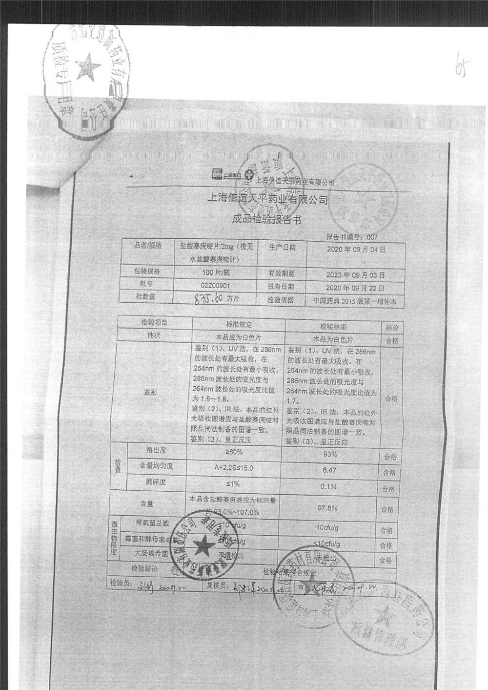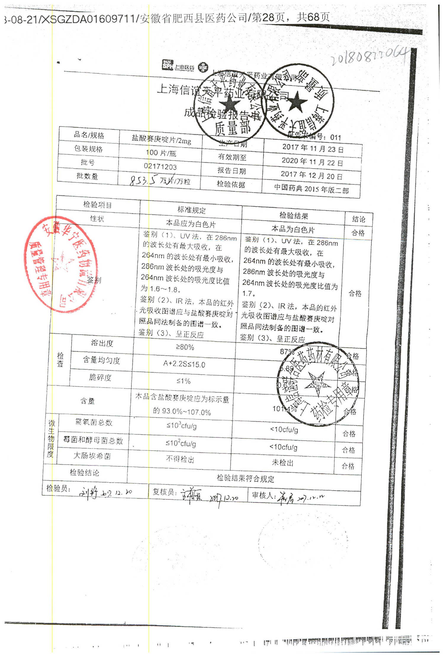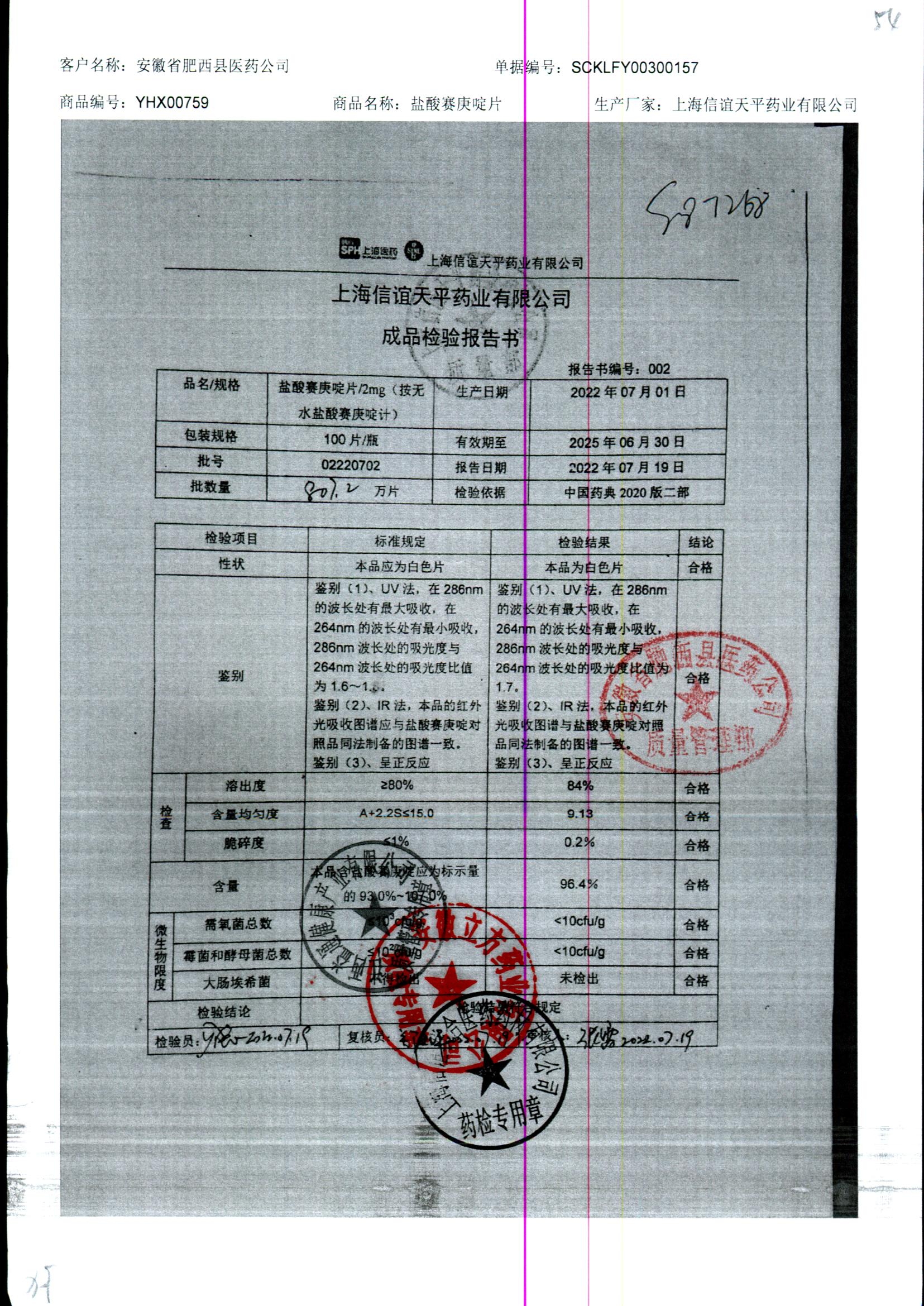 盐酸赛庚啶片 | 2mg*100片 | 02220702 | 查看详情 |