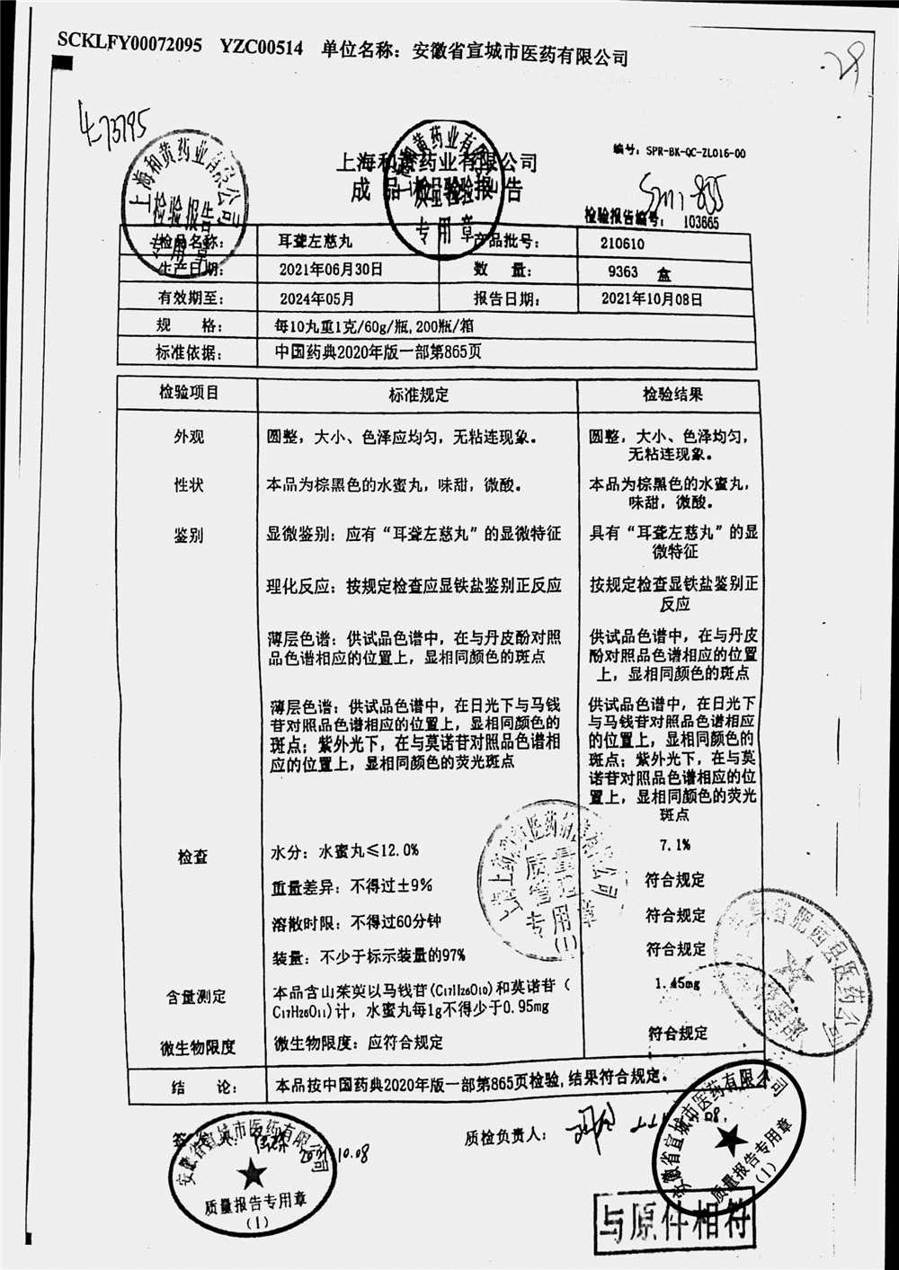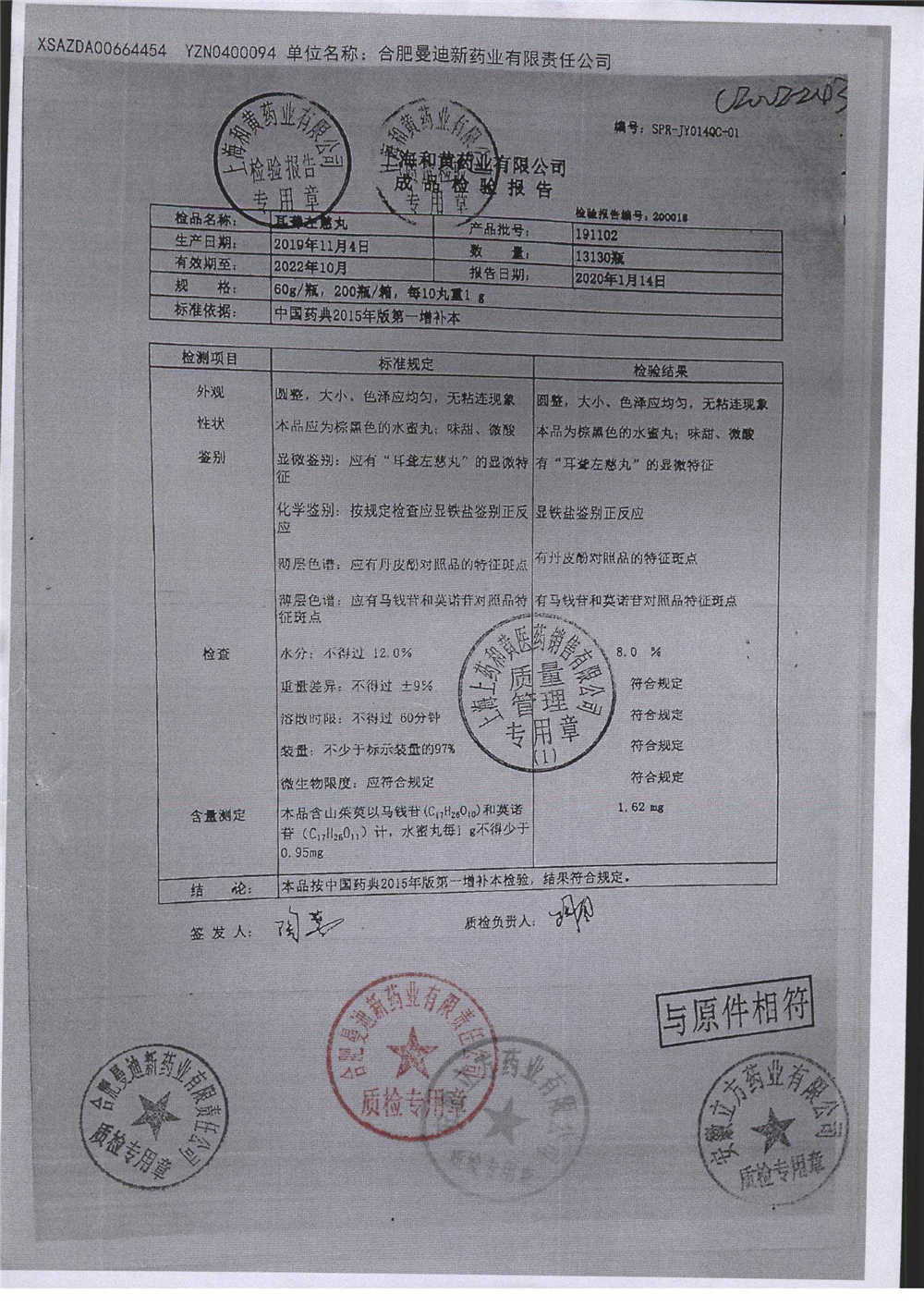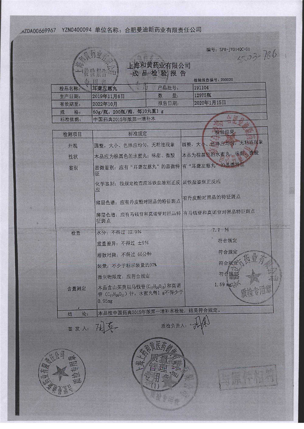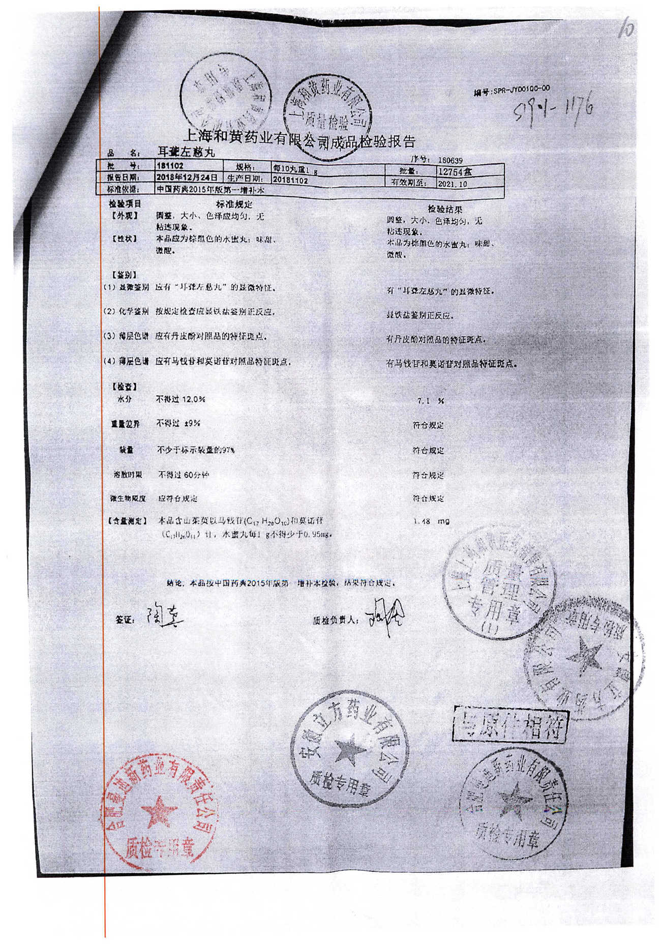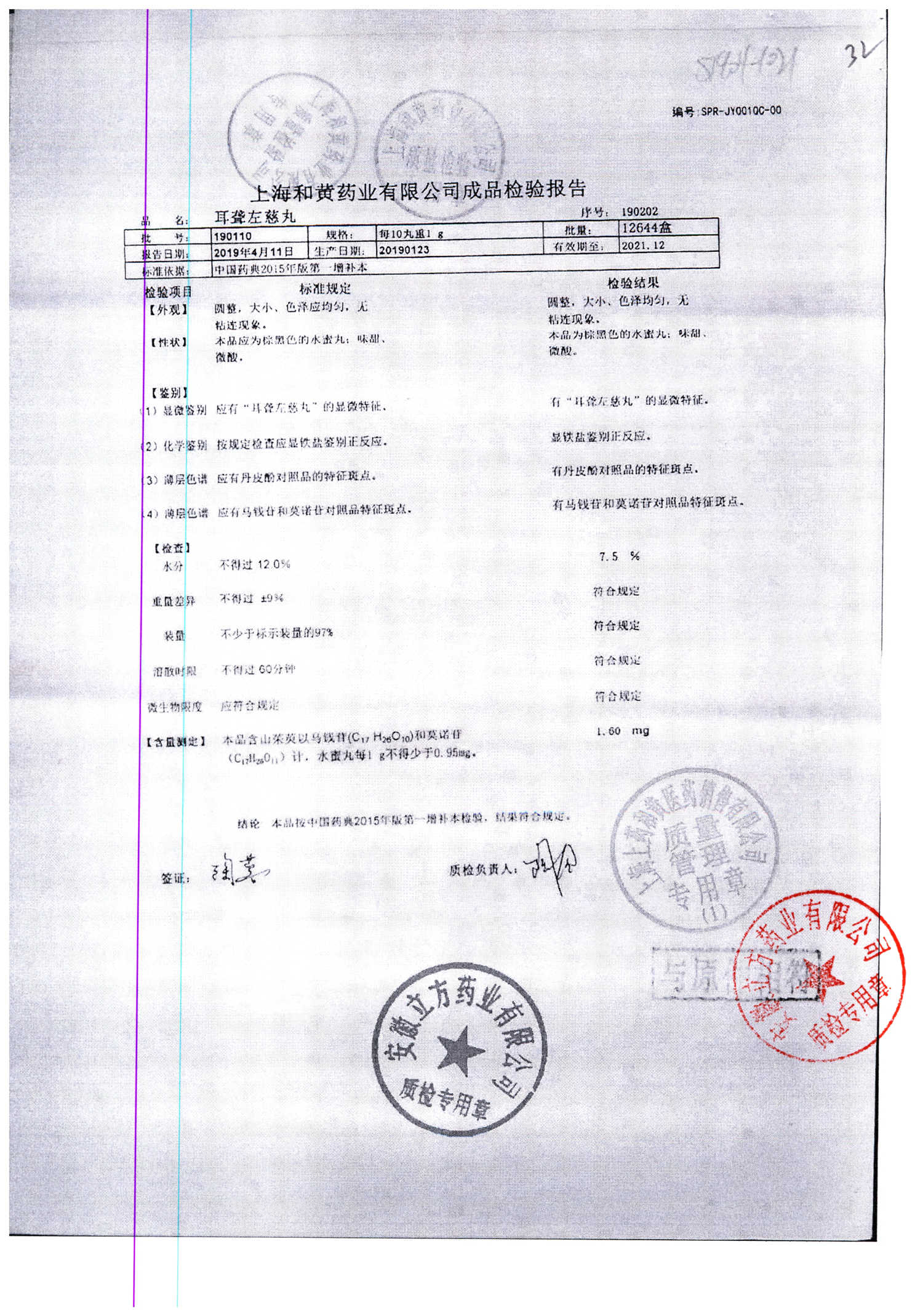 耳聋左慈丸 | 1g/10丸 | 200805 | 查看详情 |