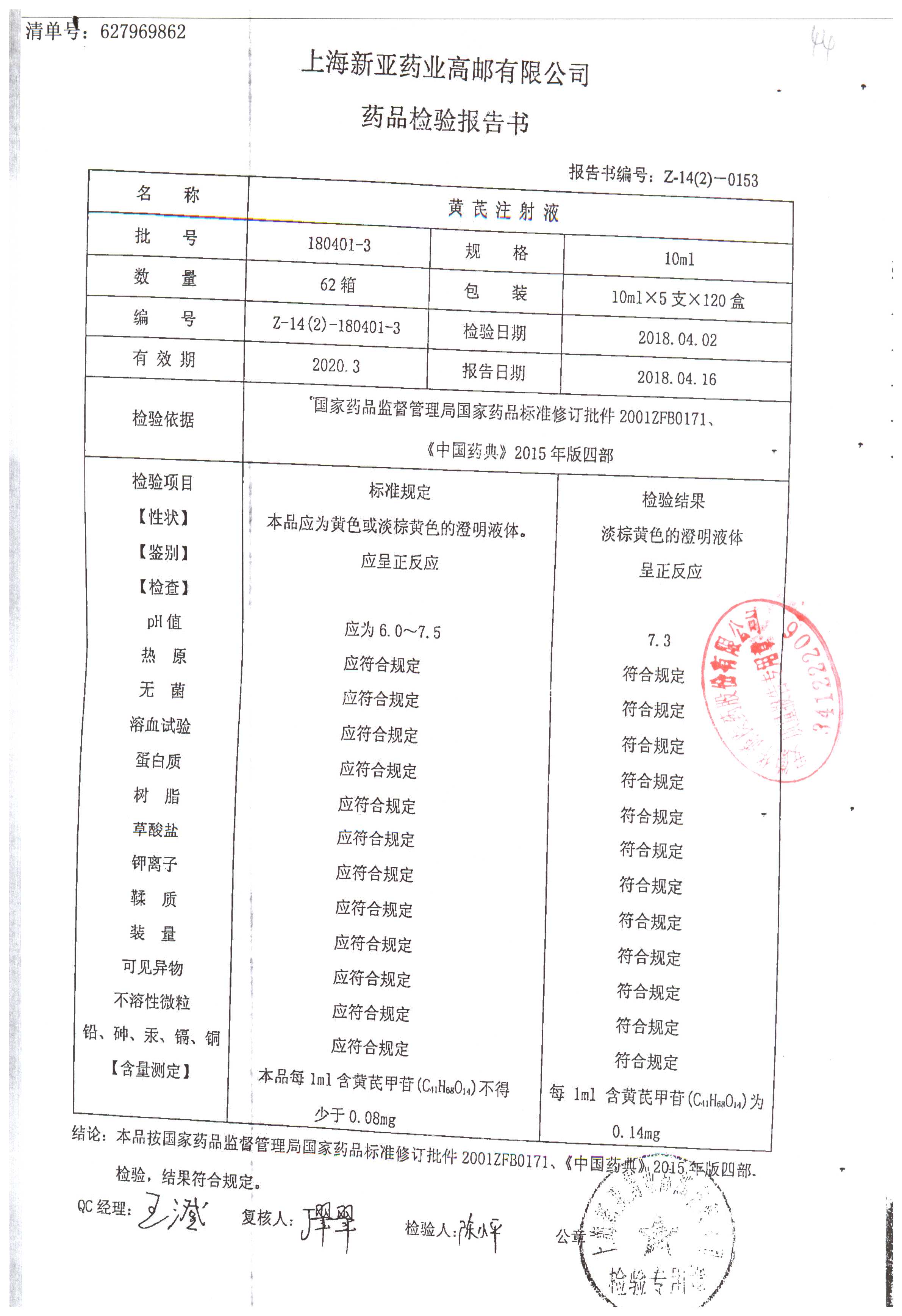 黄芪注射液 | 10ml | 180401-3 | 查看详情 |
