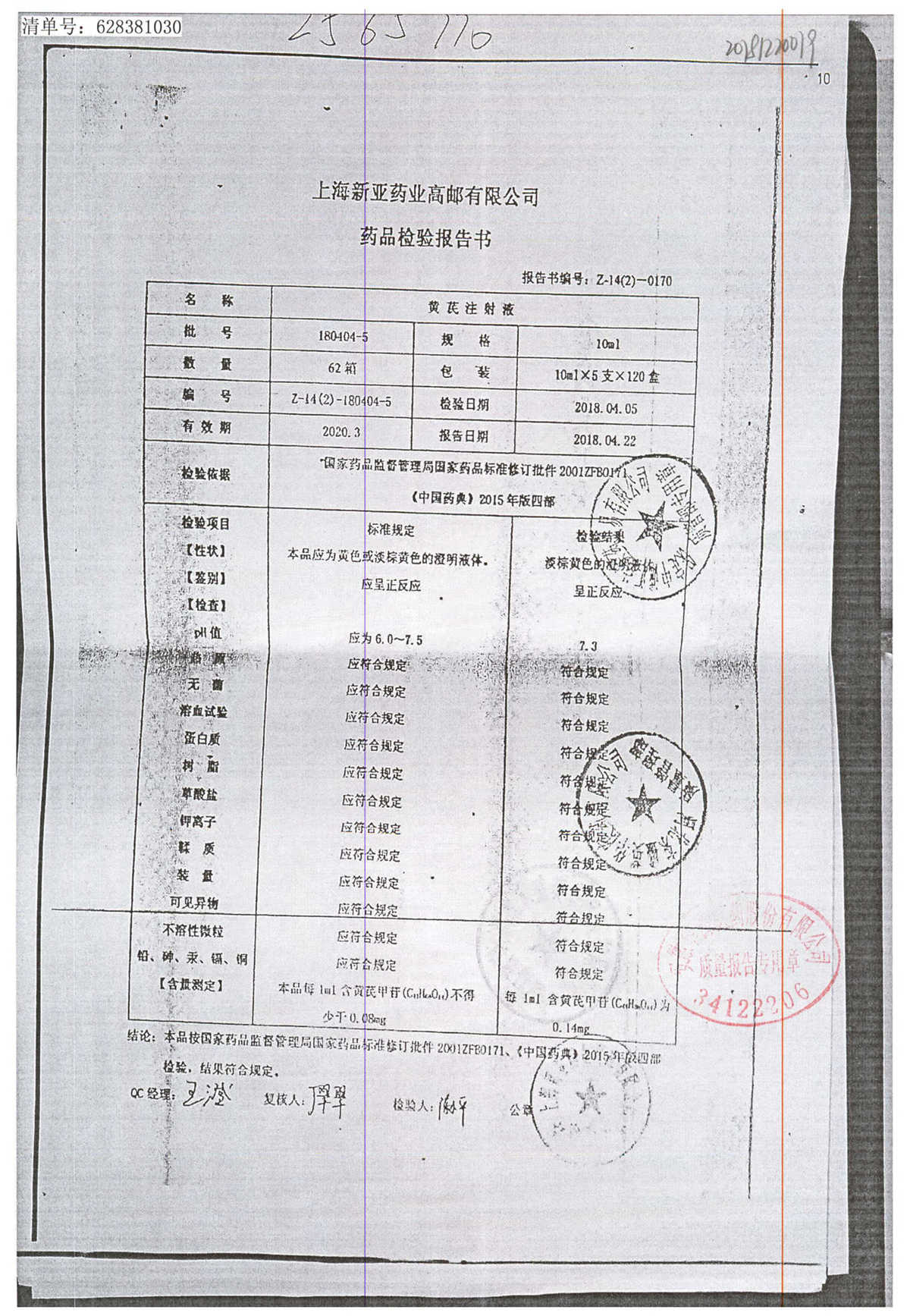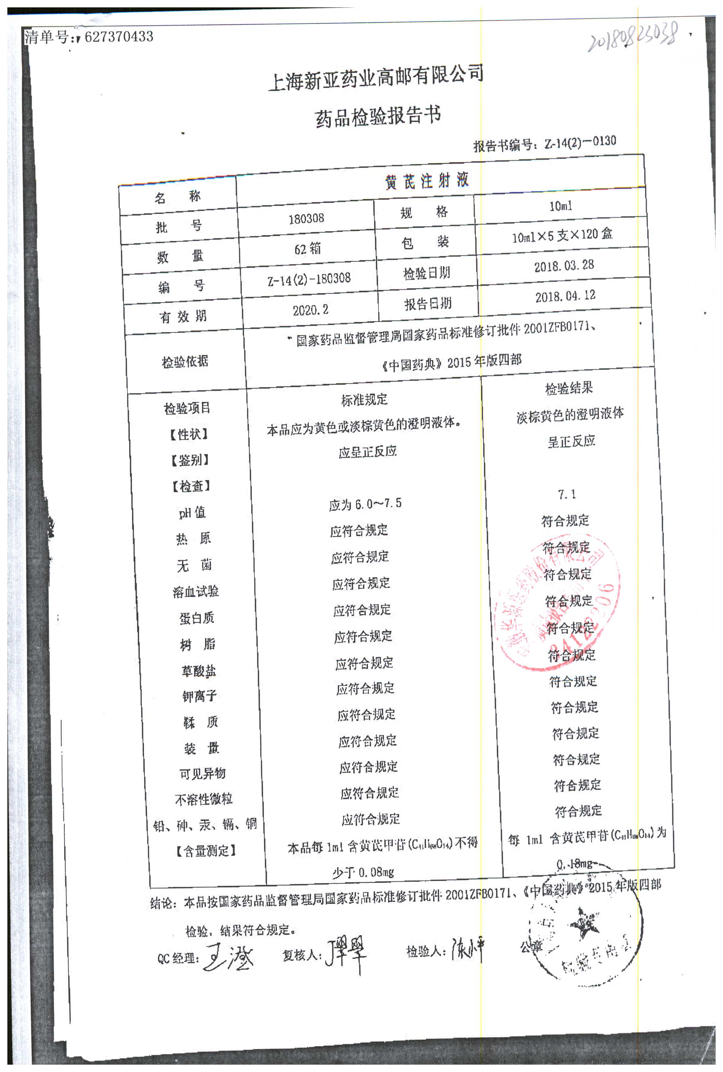 黄芪注射液 | 10ml | 180404-5 | 查看详情 |