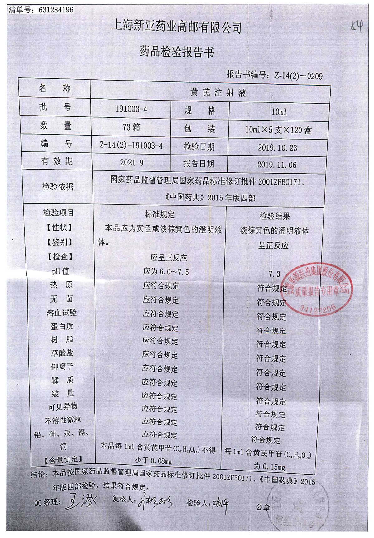 黄芪注射液 | 10ml | 191003-4 | 查看详情 |