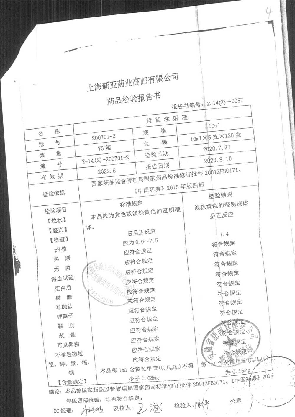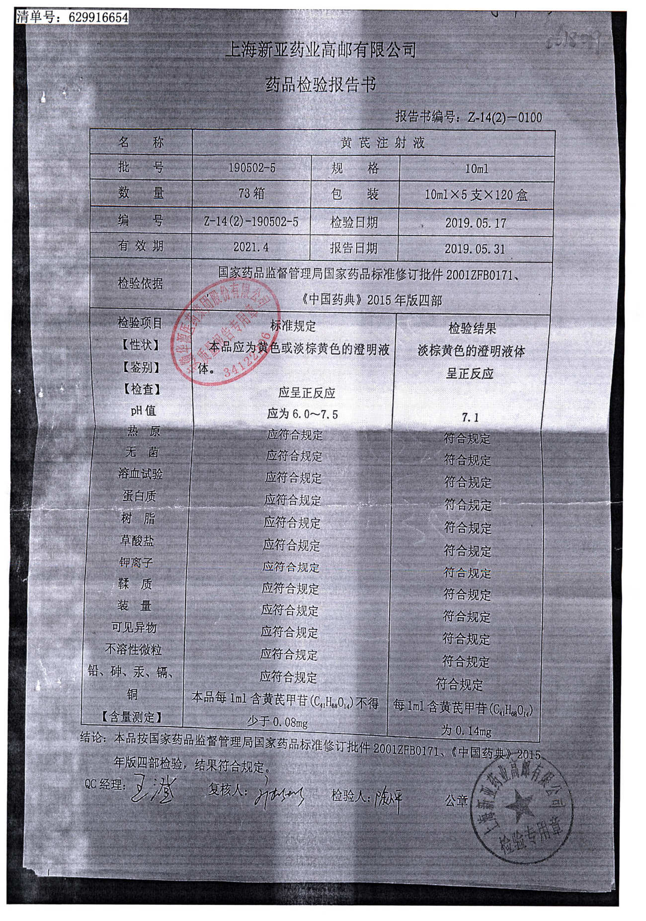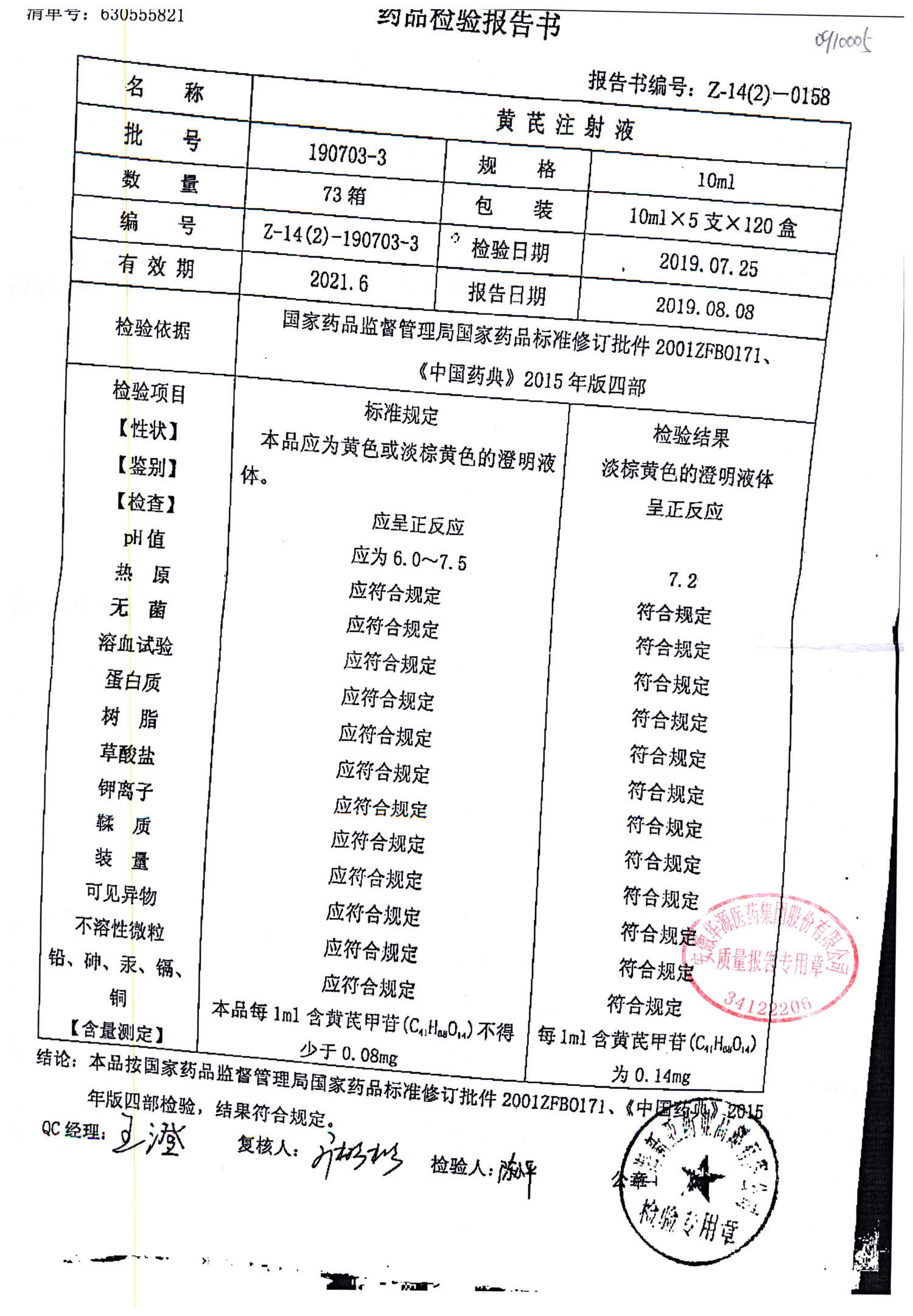 黄芪注射液 | 10ml | 190703-3 | 查看详情 |