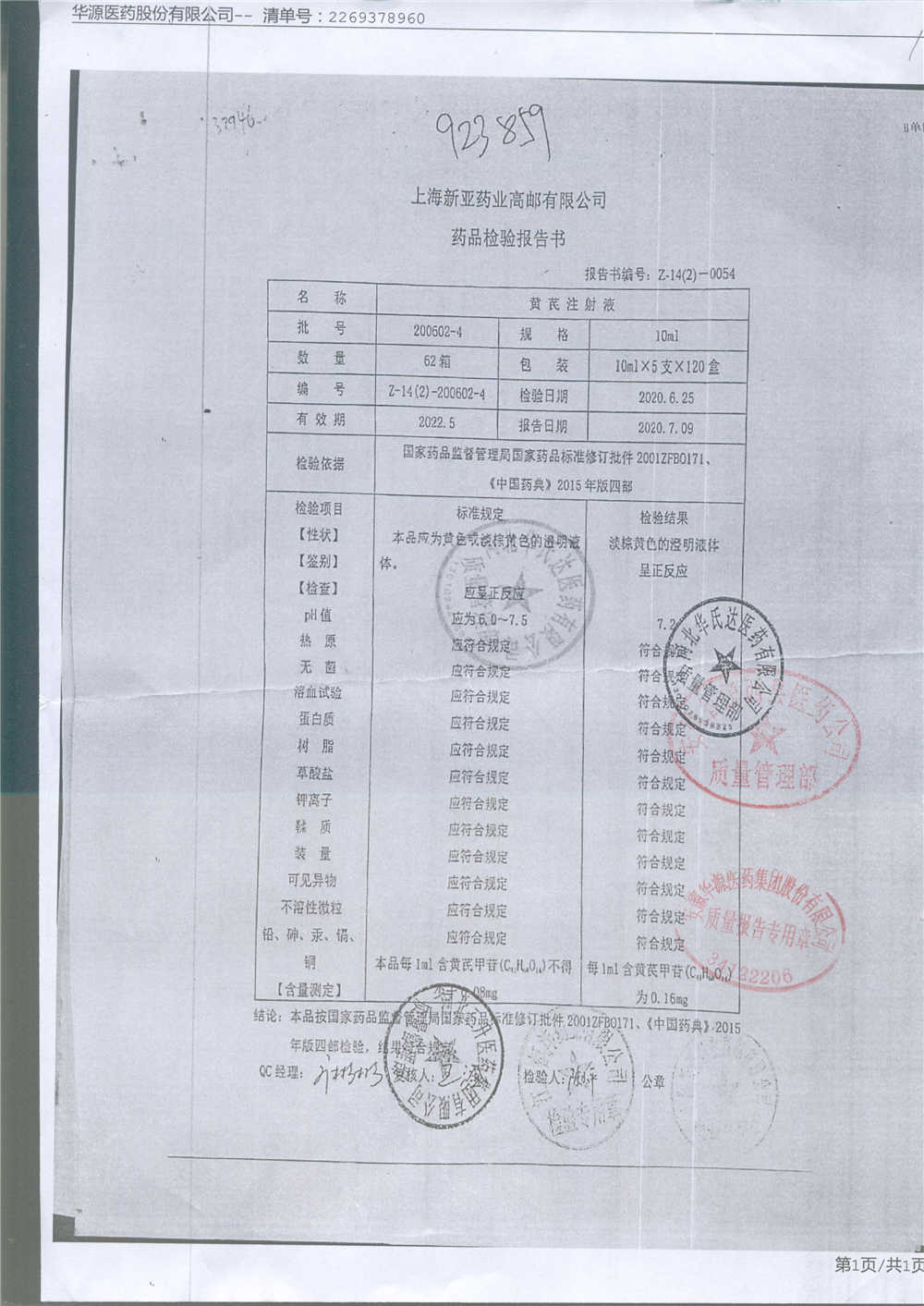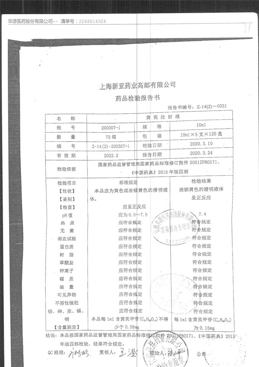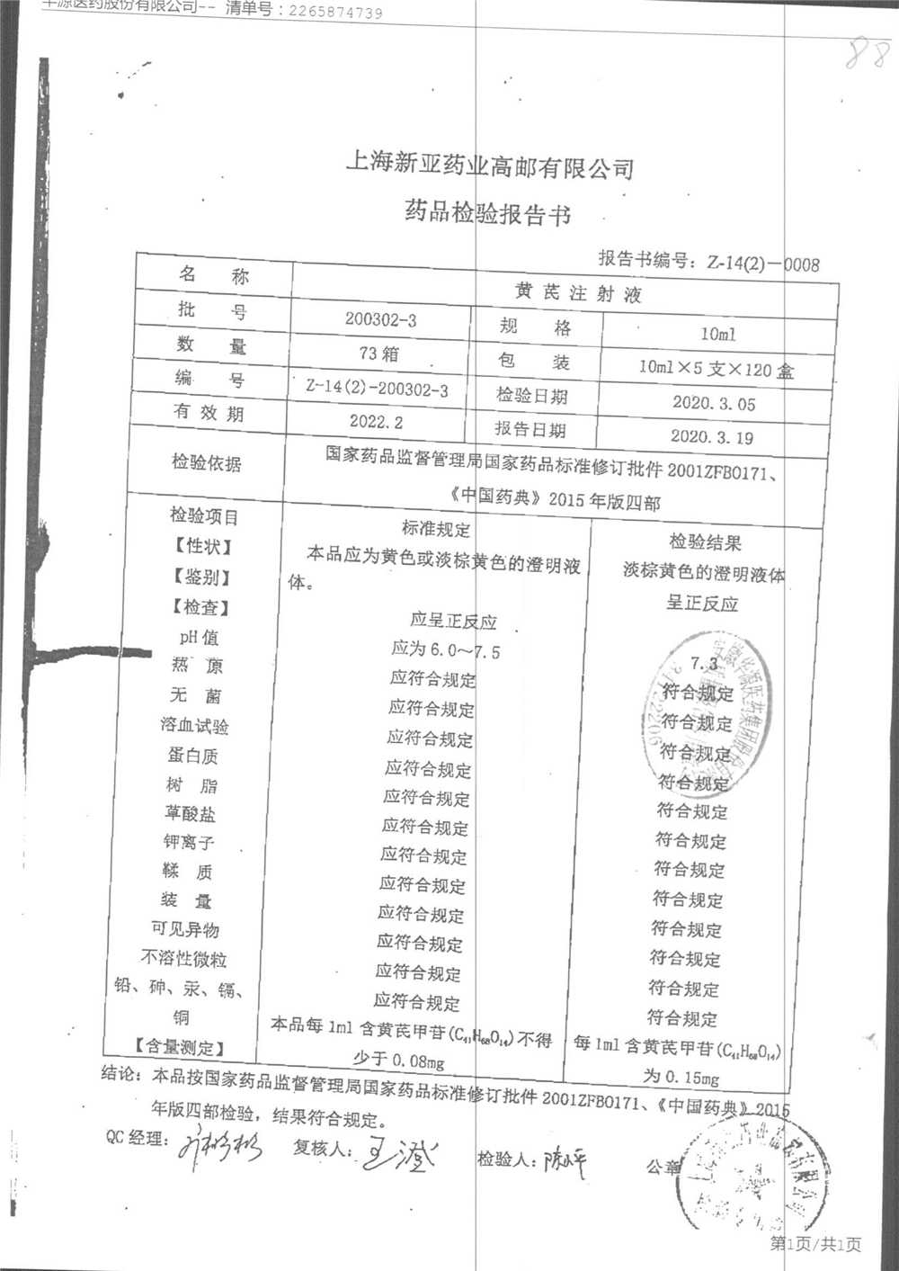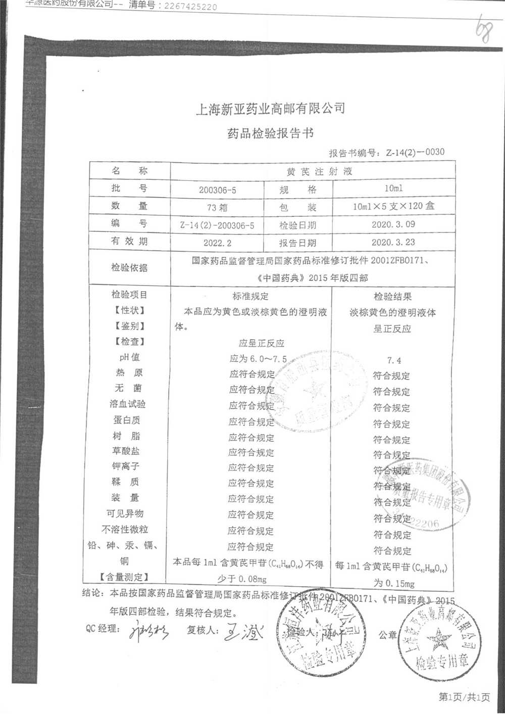 黄芪注射液 | 10ml | 190703-3 | 查看详情 |