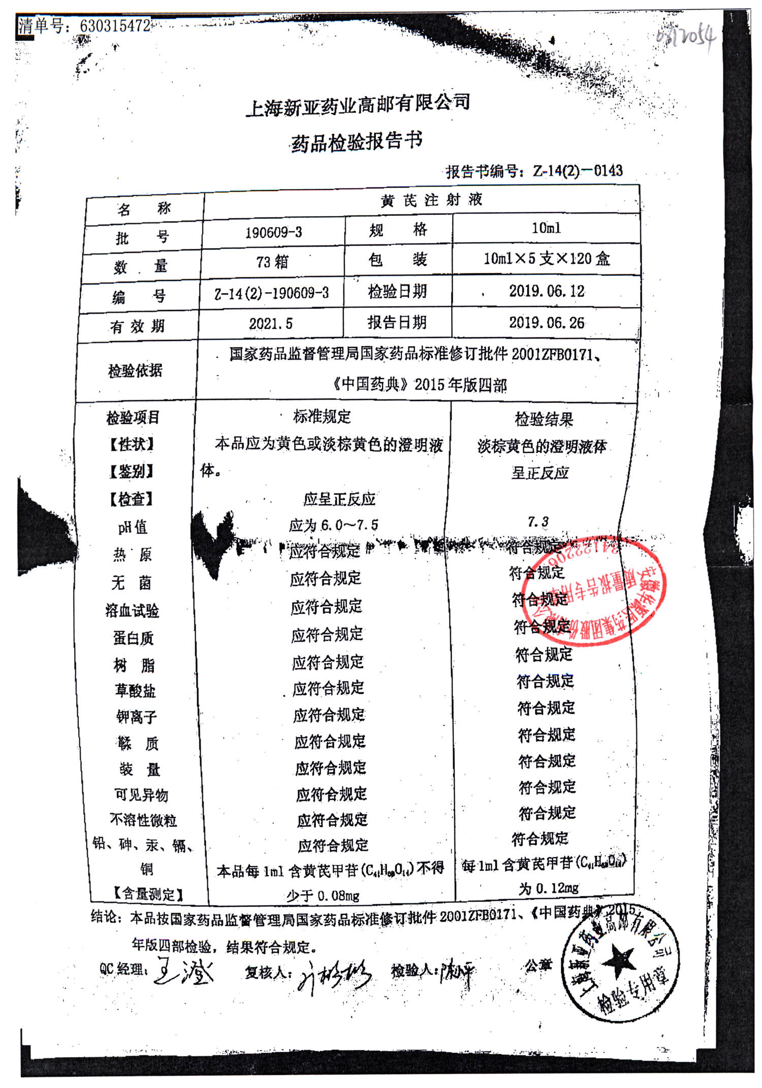黄芪注射液 | 10ml | 190609-3 | 查看详情 |