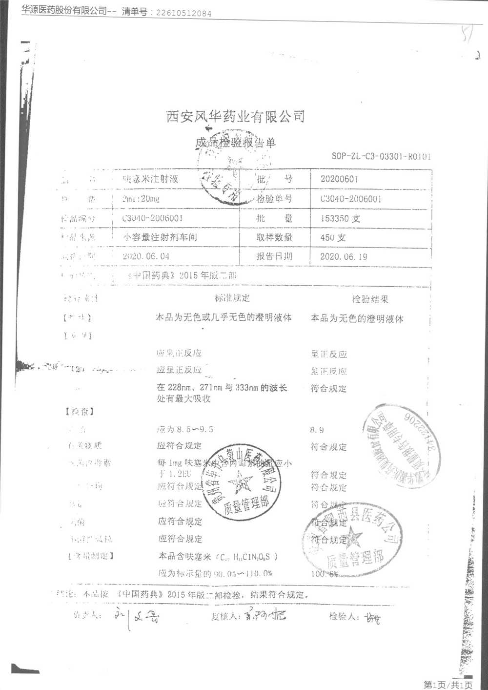 名称 | 规格 | 批号 | 药检报告 |