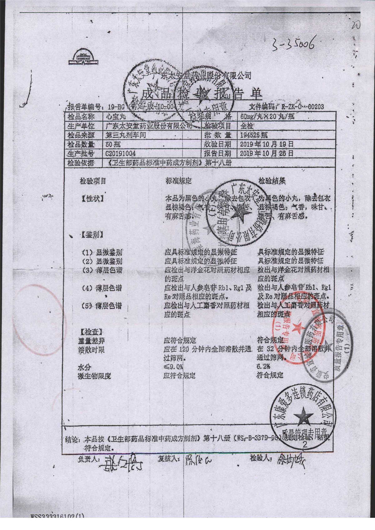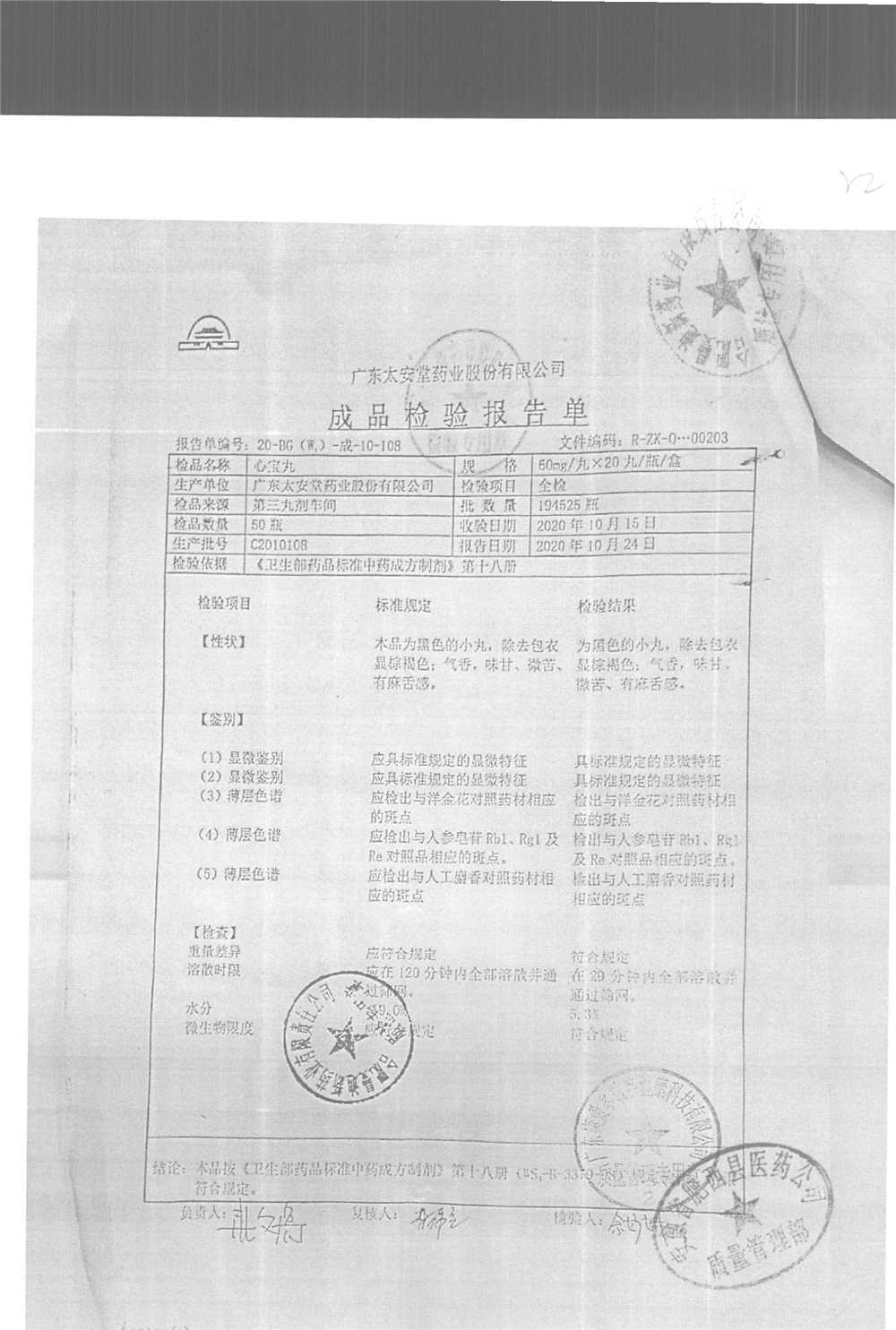 药检报告