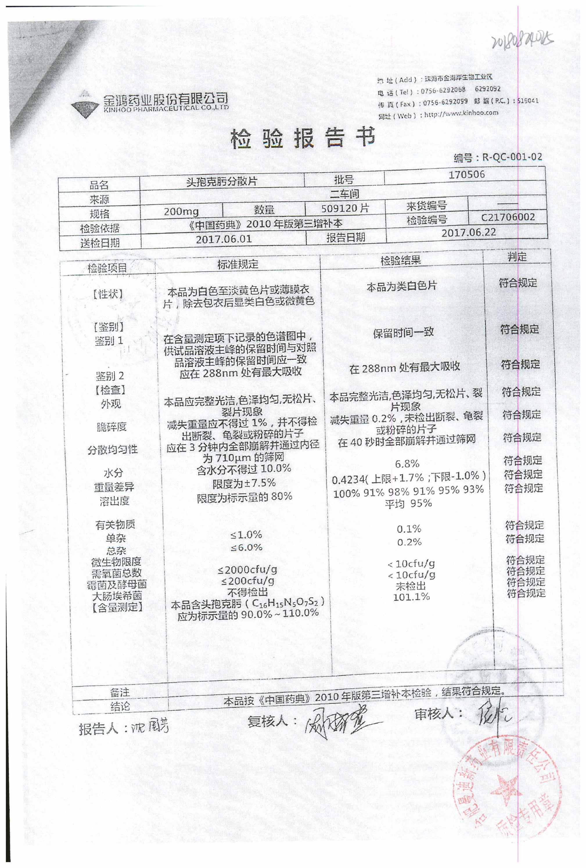 头孢克肟分散片 | 200mg | 170506 | 查看详情 |