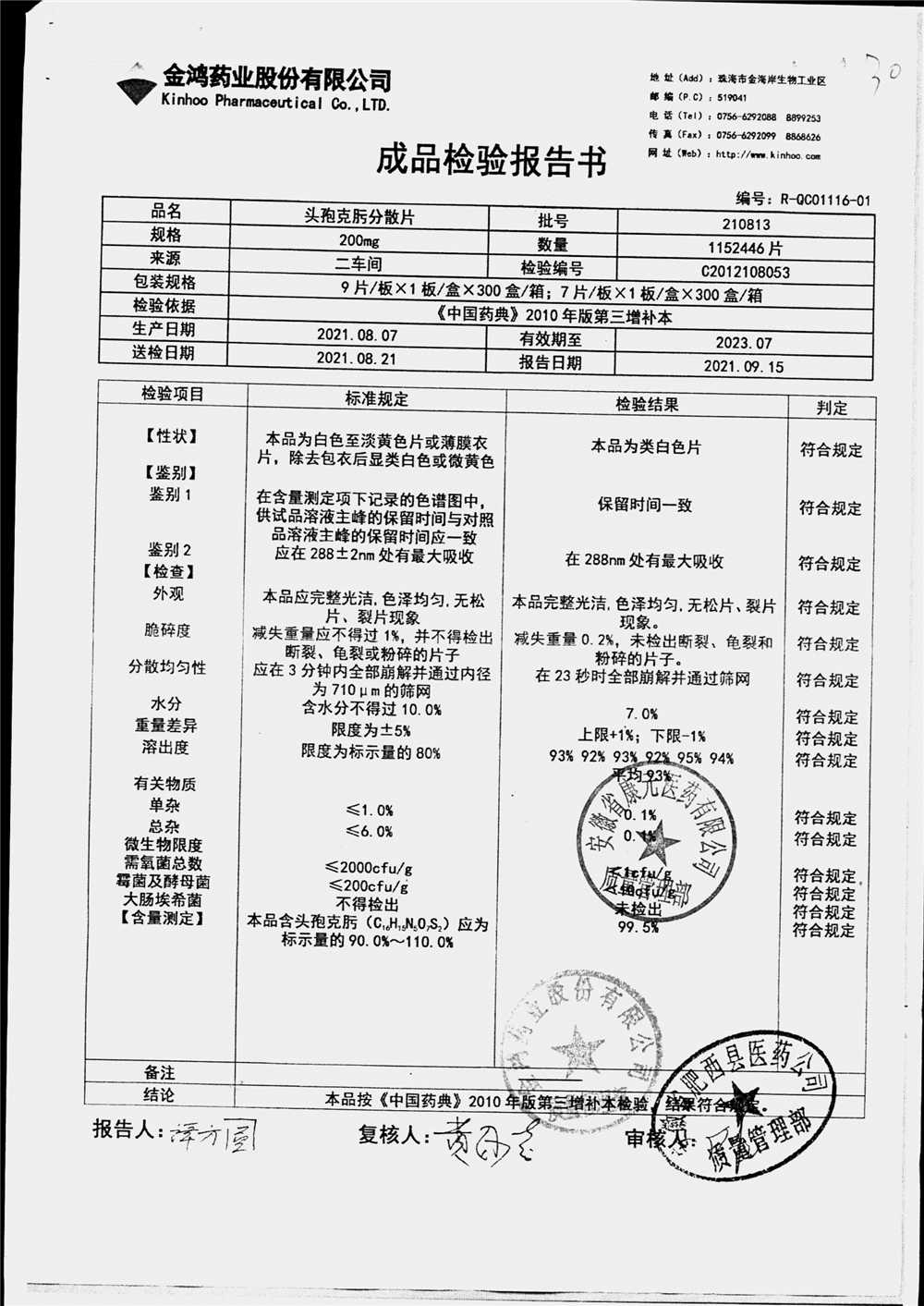 头孢克肟分散片 | 200mg | 210813 | 查看详情 |