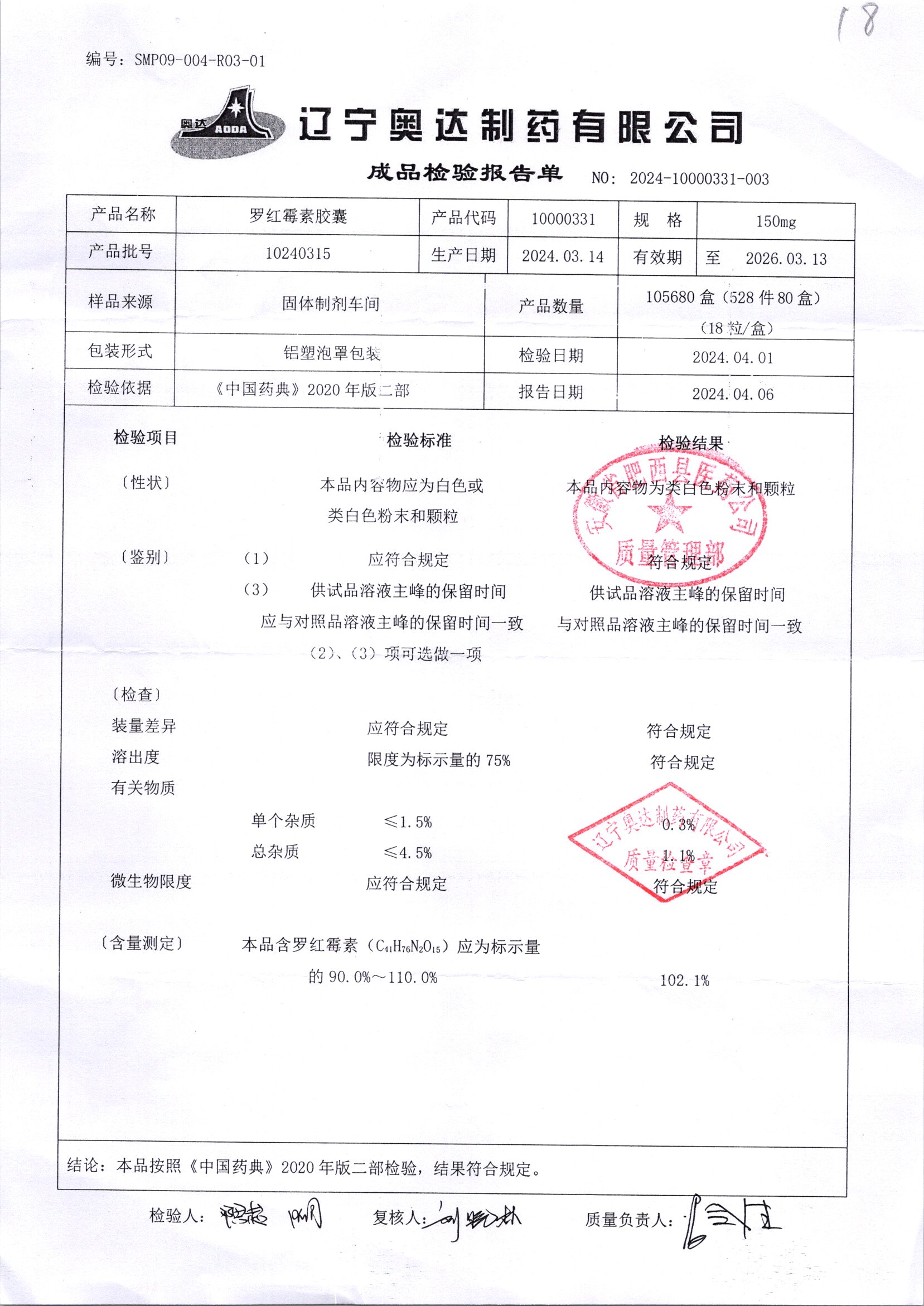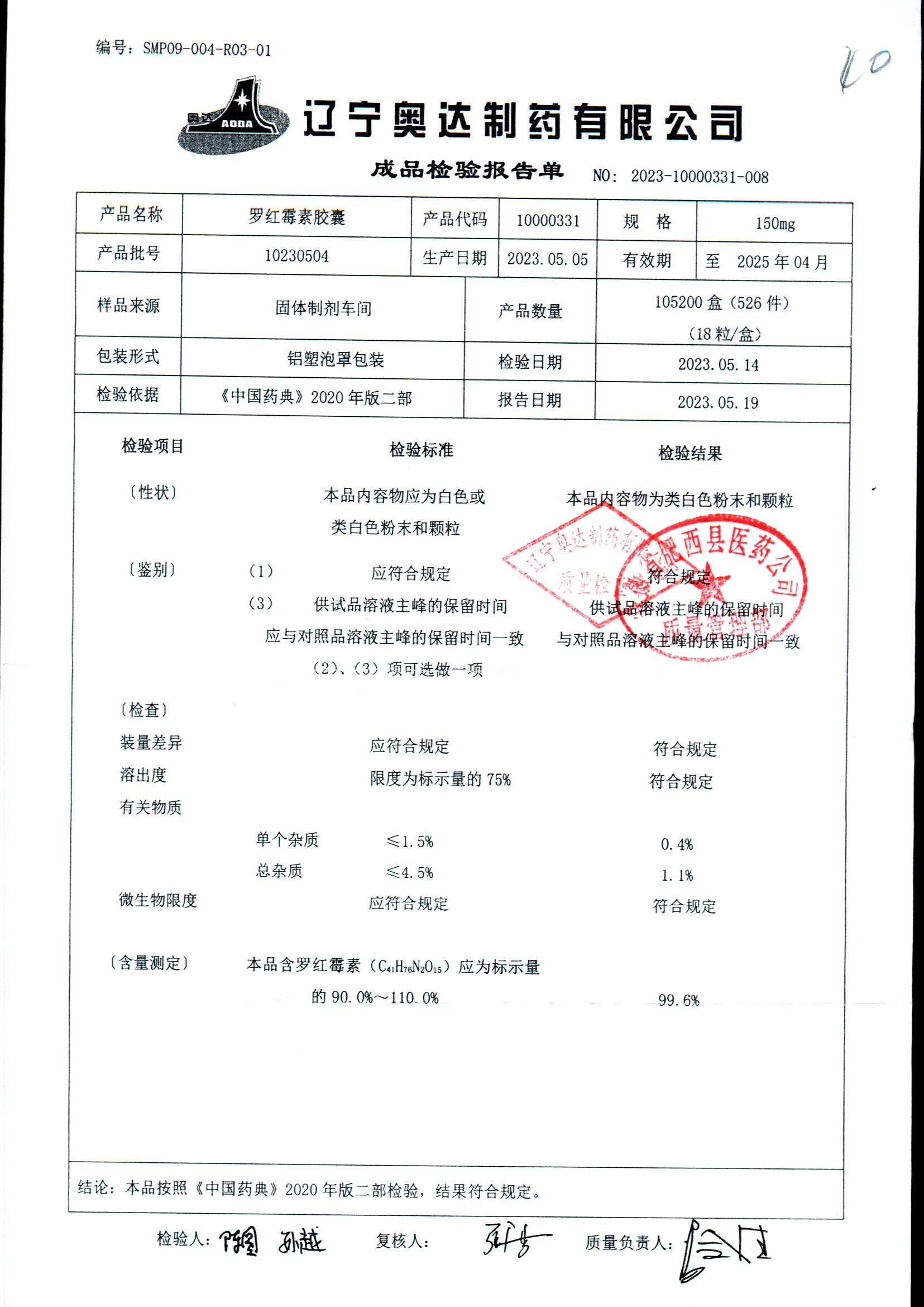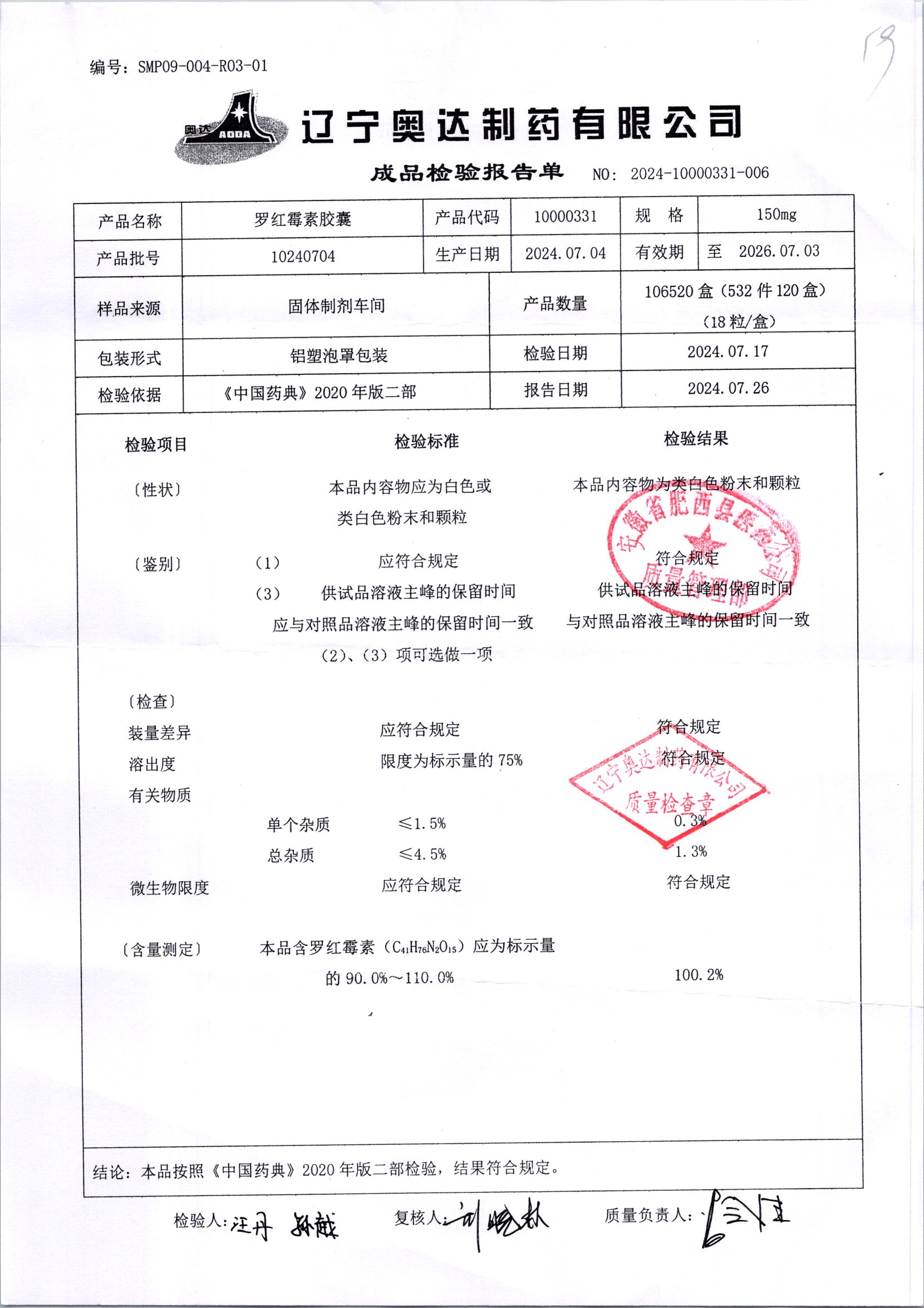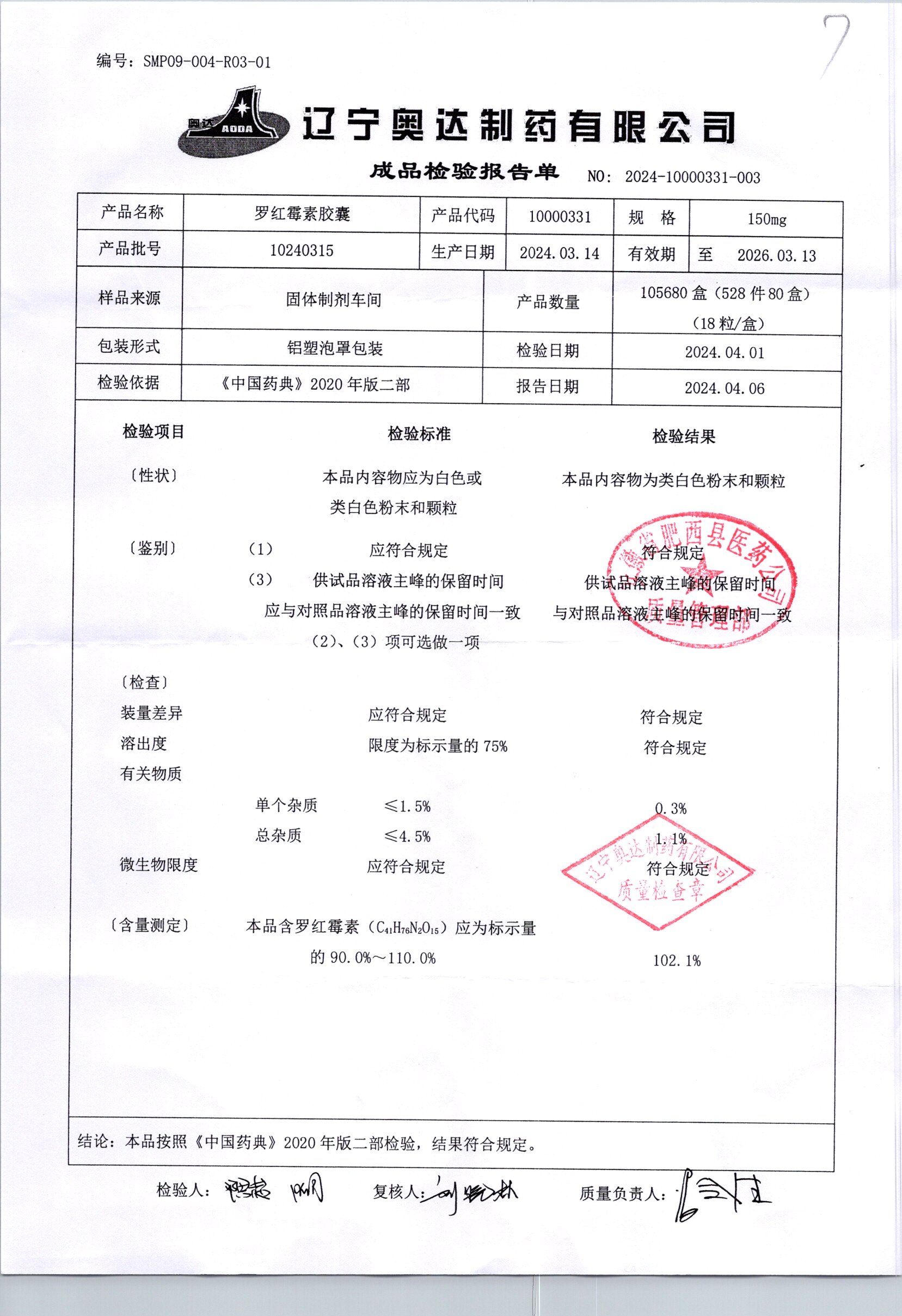 罗红霉素胶囊 | 150mg*18粒 | 10240704 | 查看详情 |